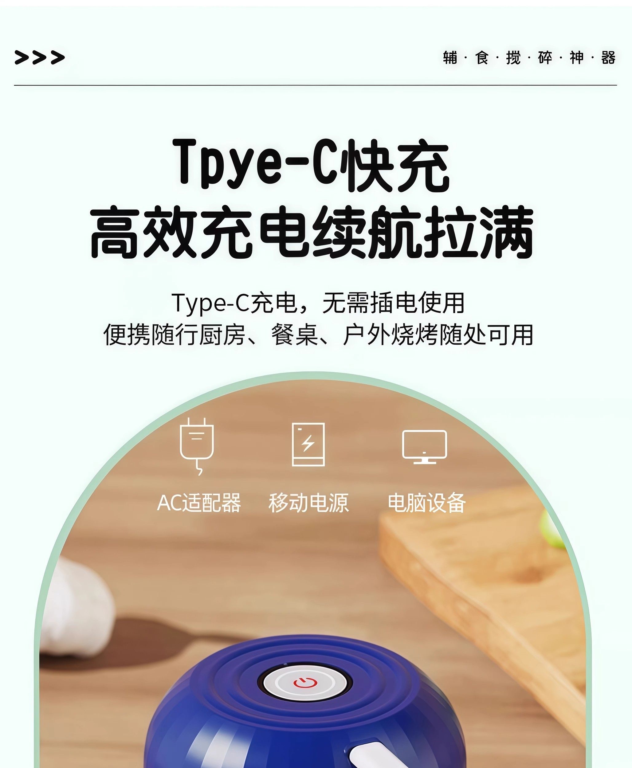 Electric Garlic Masher, Garlic Grinder, Ginger Paste Maker, Garlic and Onion Grinder, Chili Kitchen Small Wireless Meat Grinder