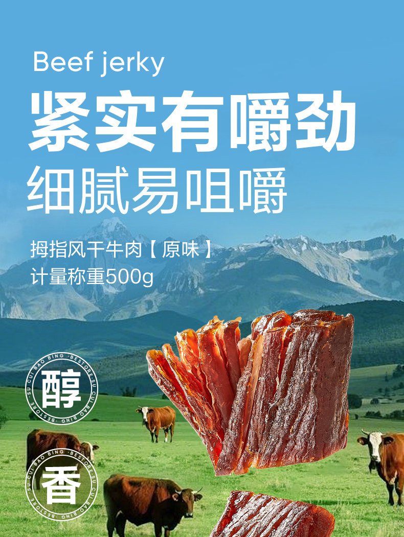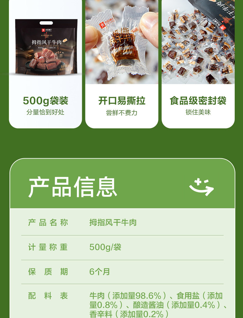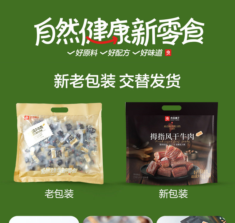 | Taste | [Pure Lean Meat, Less Fascia, Slightly Salted] Original Flavor 500g*1 Bag,【Lightly Salted, Simple Recipe】Air-Dried Beef Jerky 400g * 1 Bag,[Try It First] Thumb Beef Jerky 200g*1 Bag |