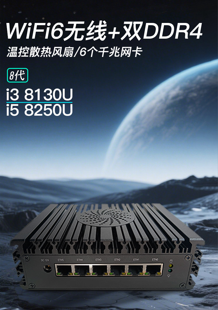 Feisuxun 6-Port 8Th Generation I3-8130/7100U/I5-8250 Gigabit Soft Router Wireless Wifi6 Enterprise Industrial Control Router X86 with Fan