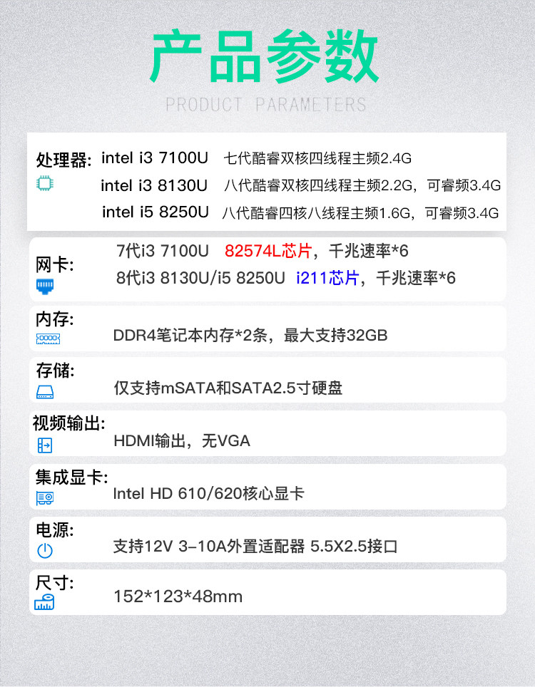 | Color Classification | 7Th Generation Six-Port I3 7100U-No Memory, No Disk, No Power Supply,7Th Generation Six-Port I3 7100U-No Memory, No Disk with Power Supply,7Th Generation Six-Port I3 7100U-4G Memory 32g Disk,7Th Generation Six-Port I3 7100U-8G Memory 64g Disk,7Th Generation Six-Port I3 7100U-16G Memory 128g Disk,7Th Generation Six-Port I3 7100U-32G Memory 256g Disk,7Th Generation Six-Port I3 7100U-No Memory, No Disk, No Power Supply + Wifi6,7Th Generation Six-Port I3 7100U-No Memory, No Disk, Power Supply + Wifi6,7Th Generation Six-Port I3 7100U-4G Memory 32g Disk + Wifi6,7Th Generation Six-Port I3 7100U-8G Memory 64g Disk + Wifi6,7Th Generation Six-Port I3 7100U-16G Memory 128g Disk + Wifi6,7Th Generation Six-Port I3 7100U-32G Memory 256g Disk + Wifi6,8Th Generation Six-Port I3 8130U-No Memory, No Disk, No Power Supply,8Th Generation Six-Port I3 8130U-No Memory, No Disk with Power Supply,8Th Generation Six-Port I3 8130U-4G Memory 32g Disk,8Th Generation Six-Port I3 8130U-8G Memory 64g Disk,8Th Generation Six-Port I3 8130U-16G Memory 128g Disk,8Th Generation Six-Port I3 8130U-32G Memory 256g Disk,8Th Generation Six-Port I3 8130U-No Memory, No Disk, No Power Supply + Wifi6,8Th Generation Six-Port I3 8130U-No Memory, No Disk, Power Supply + Wifi6,8Th Generation Six-Port I3 8130U-4G Memory 32g Disk + Wifi6,8Th Generation Six-Port I3 8130U-8G Memory 64g Disk + Wifi6,8Th Generation Six-Port I3 8130U-16G Memory 128g Disk + Wifi6,8Th Generation Six-Port I3 8130U-32G Memory 256g Disk + Wifi6,8Th Generation Six-Port I5 8250U-No Memory, No Disk, No Power Supply,8Th Generation Six-Port I5 8250U-No Memory, No Disk with Power Supply,8Th Generation Six-Port I5 8250U-4G Memory 32g Disk,8Th Generation Six-Port I5 8250U-8G Memory 64g Disk,8Th Generation Six-Port I5 8250U-16G Memory 128g Disk,8Th Generation Six-Port I5 8250U-32G Memory 256g Disk,8Th Generation Six-Port I5 8250U-No Memory, No Disk, No Power Supply + Wifi6,8Th Generation Six-Port I5 8250U-No Memory, No Disk, Power Supply + Wifi6,8Th Generation Six-Port I5 8250U-4G Memory 32g Disk + Wifi6,8Th Generation Six-Port I5 8250U-8G Memory 64g Disk + Wifi6,8Th Generation Six-Port I5 8250U-16G Memory 128g Disk + Wifi6,8Th Generation Six-Port I5 8250U-32G Memory 256g Disk + Wifi6 |