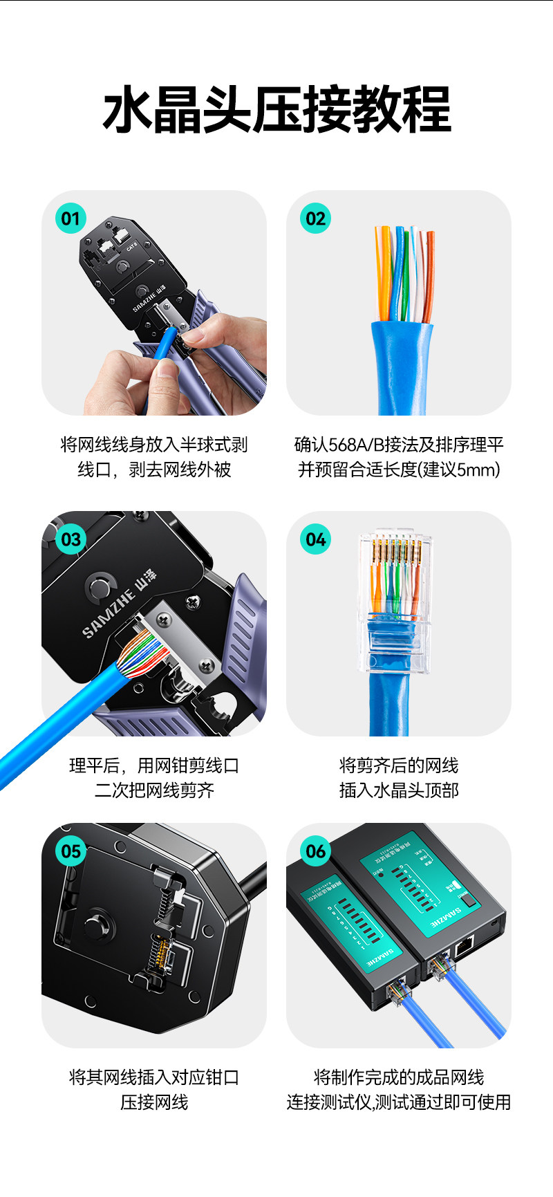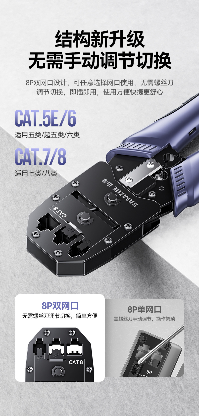 Shanze Network Cable Pliers Professional-Grade Crystal Head Crimping Pliers Set for Home Use, Suitable for Category 5E, 6, 7 Network Cables
