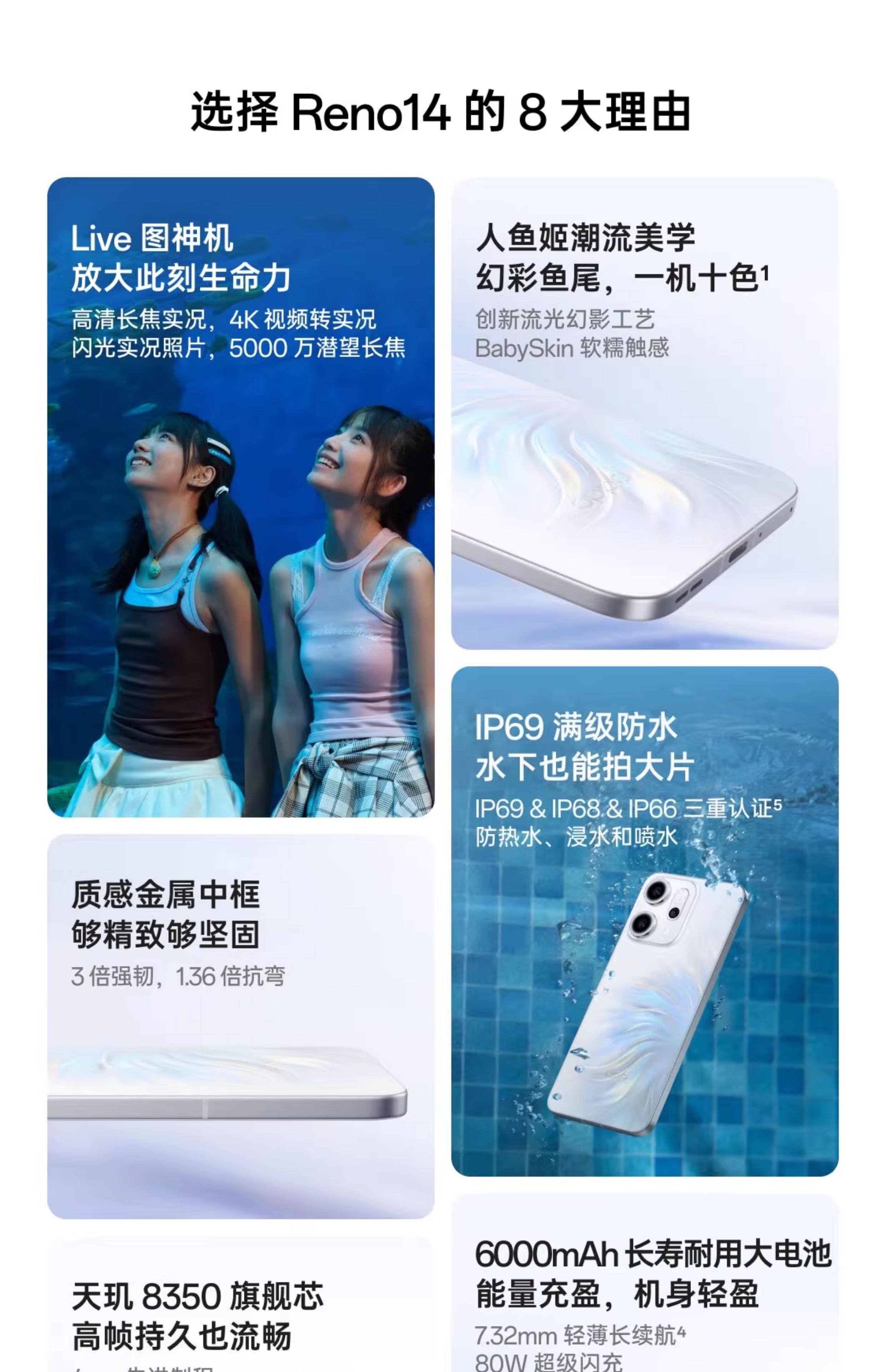[Shipping from China Unicom in This Province] Oppo Reno14 High-Definition Telephoto Live Broadcast Photos Mermaid Ji Trendyy Color Matching Full-Level Waterproof Ai Mobile Phone Official Flagship Store Unicom Business Hall