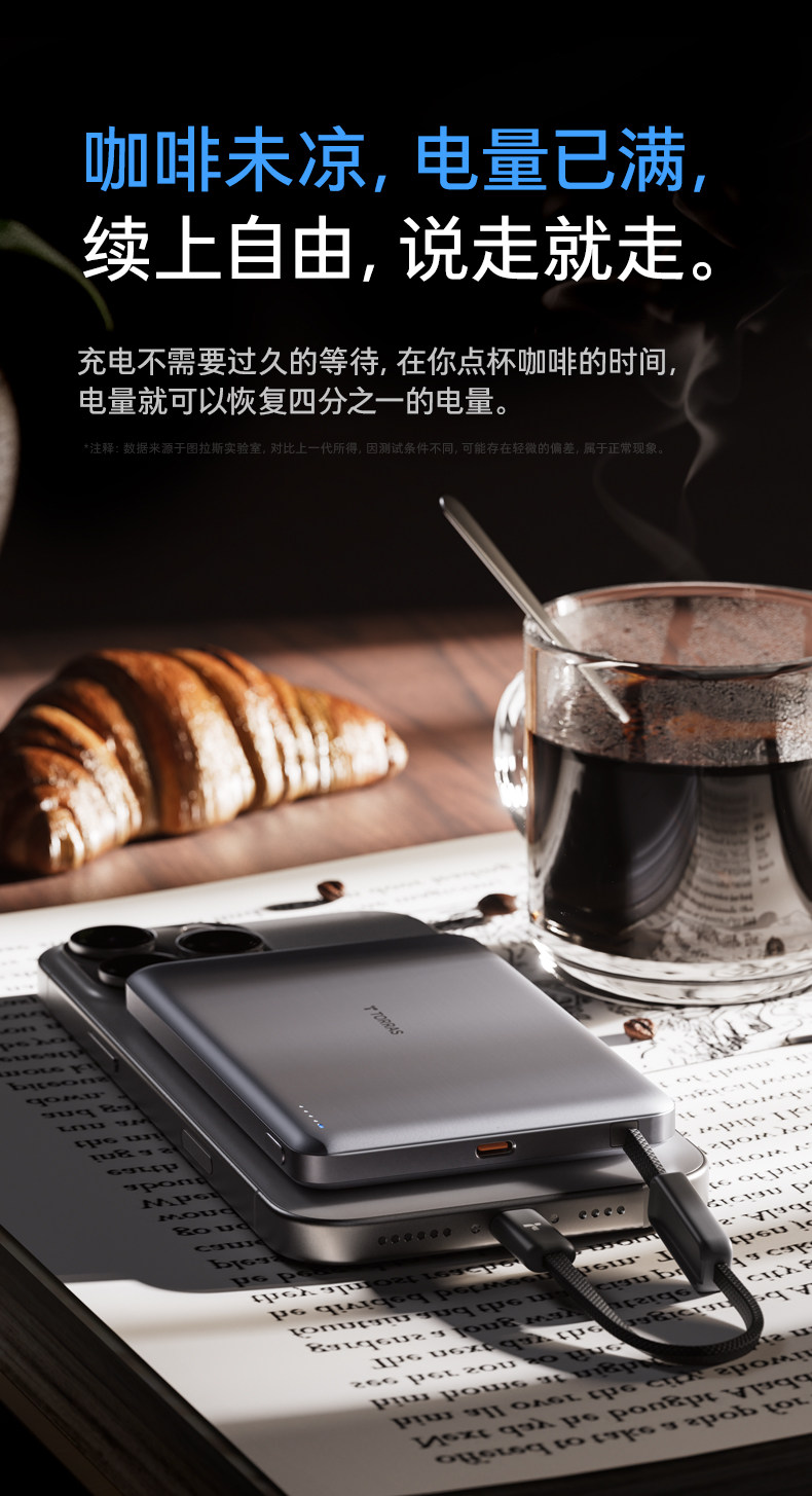 Turas 2026 New Model Magnetic Little Cloud Power Bank with Built-In Cable, 3C Certified, Suitable for Airplanes, Compatible with Apple 17Pro, Ultra-Thin, Large Capacity, Fast Charging, Official Magsafe, Xiaomi