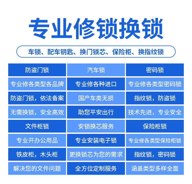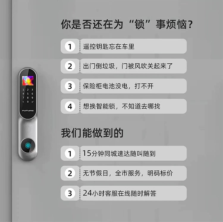 Locksmiths in the Same City Provide Door-To-Door Lock Repair and Replacement of Lock Cylinders, Smart Door Lock Installation for Bedrooms, Fingerprint Lock and Mechanical Lock Repair Services