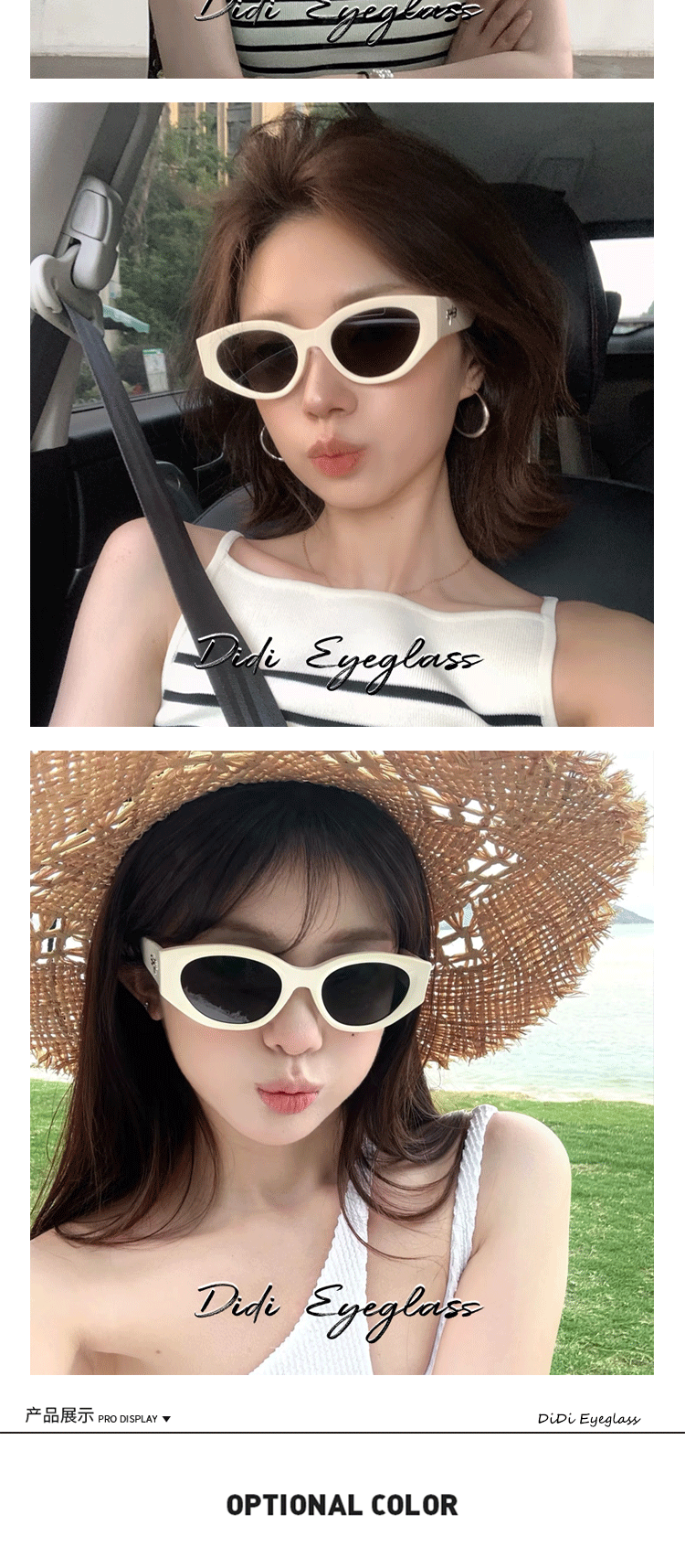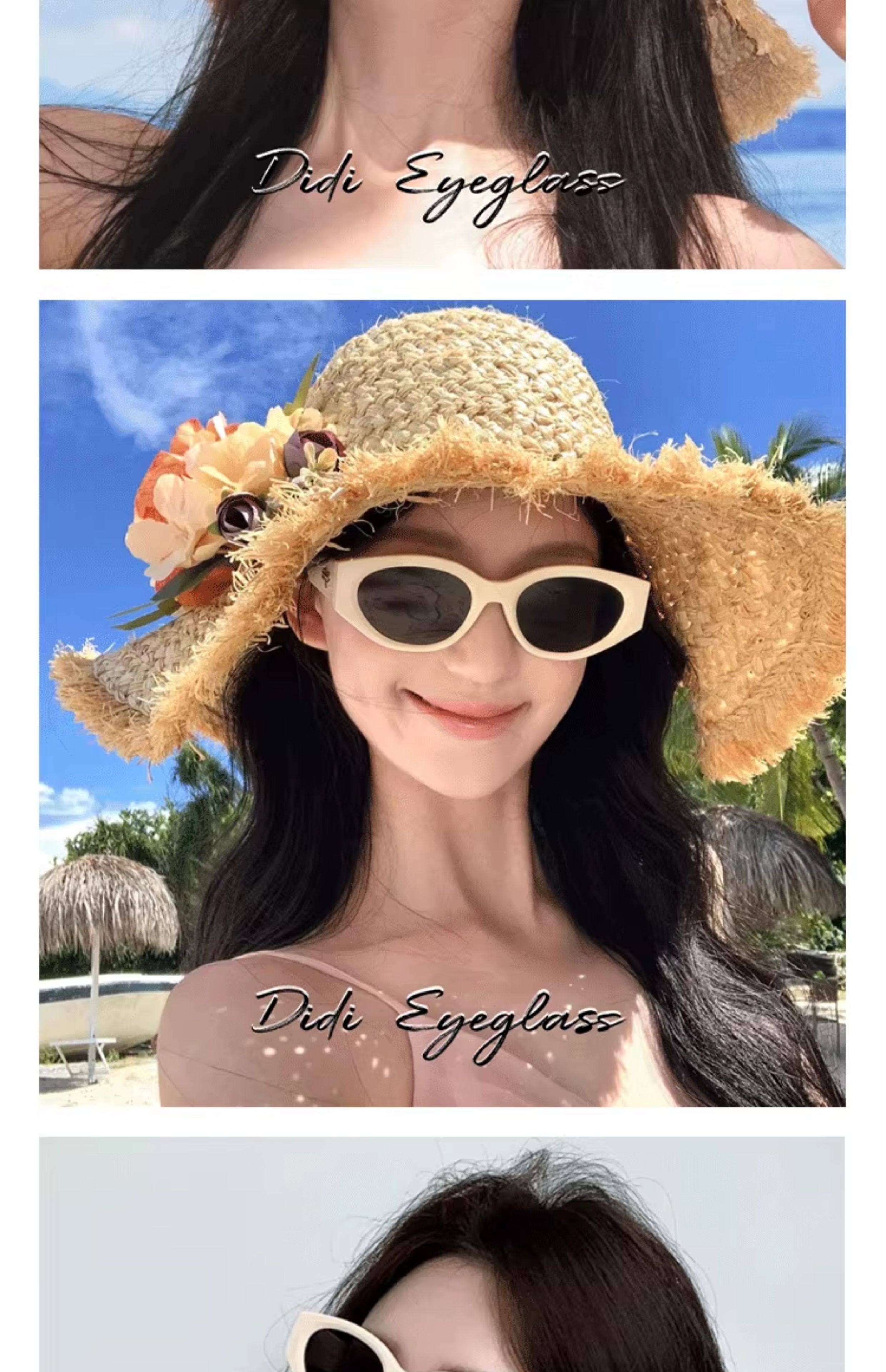 2025 New Cat-Eye White Sunglasses for Women, High-End Style, Slimming for Square and Round Faces, Sun Protection for Beach Vacations