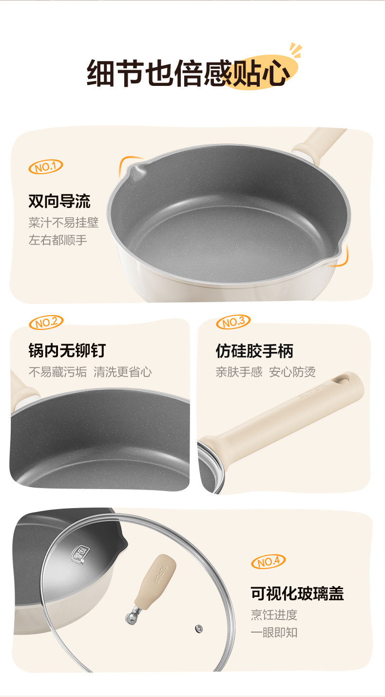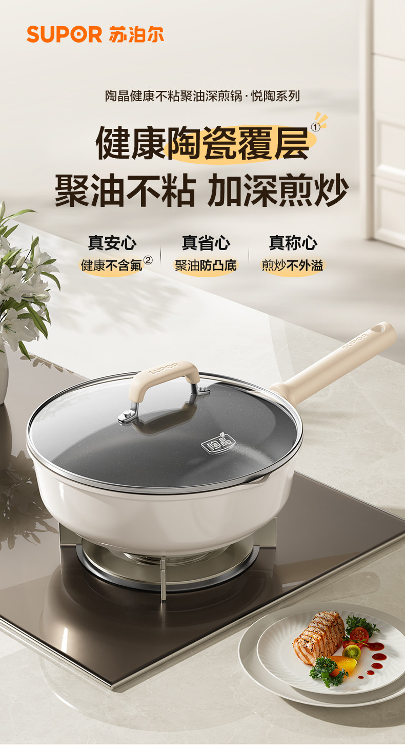 Supor Ceramic Frying Pan for Home Use, Non-Stick Deep Frying Pan, Suitable for Induction Cooker and Gas Stove, Non-Stick Frying Pan
