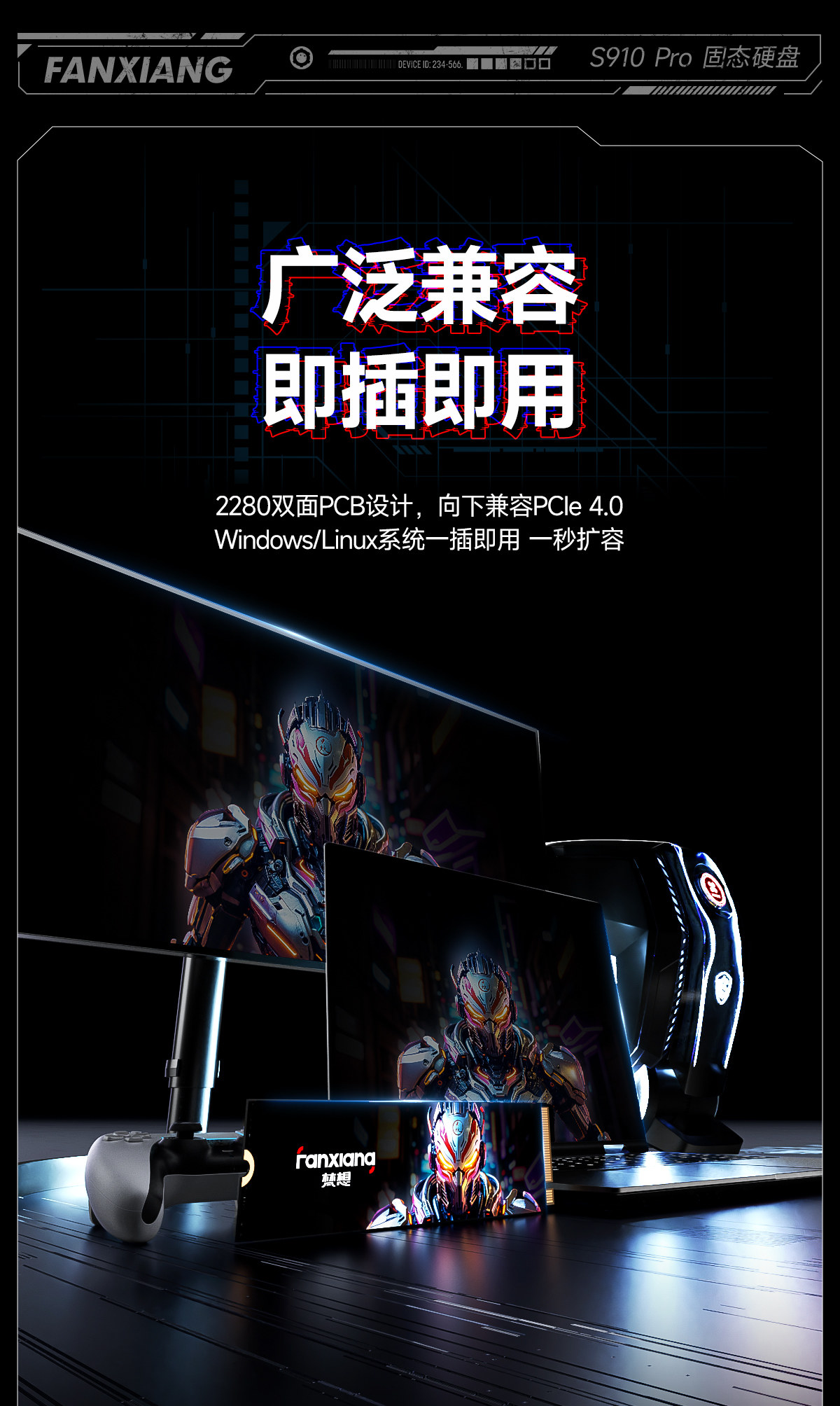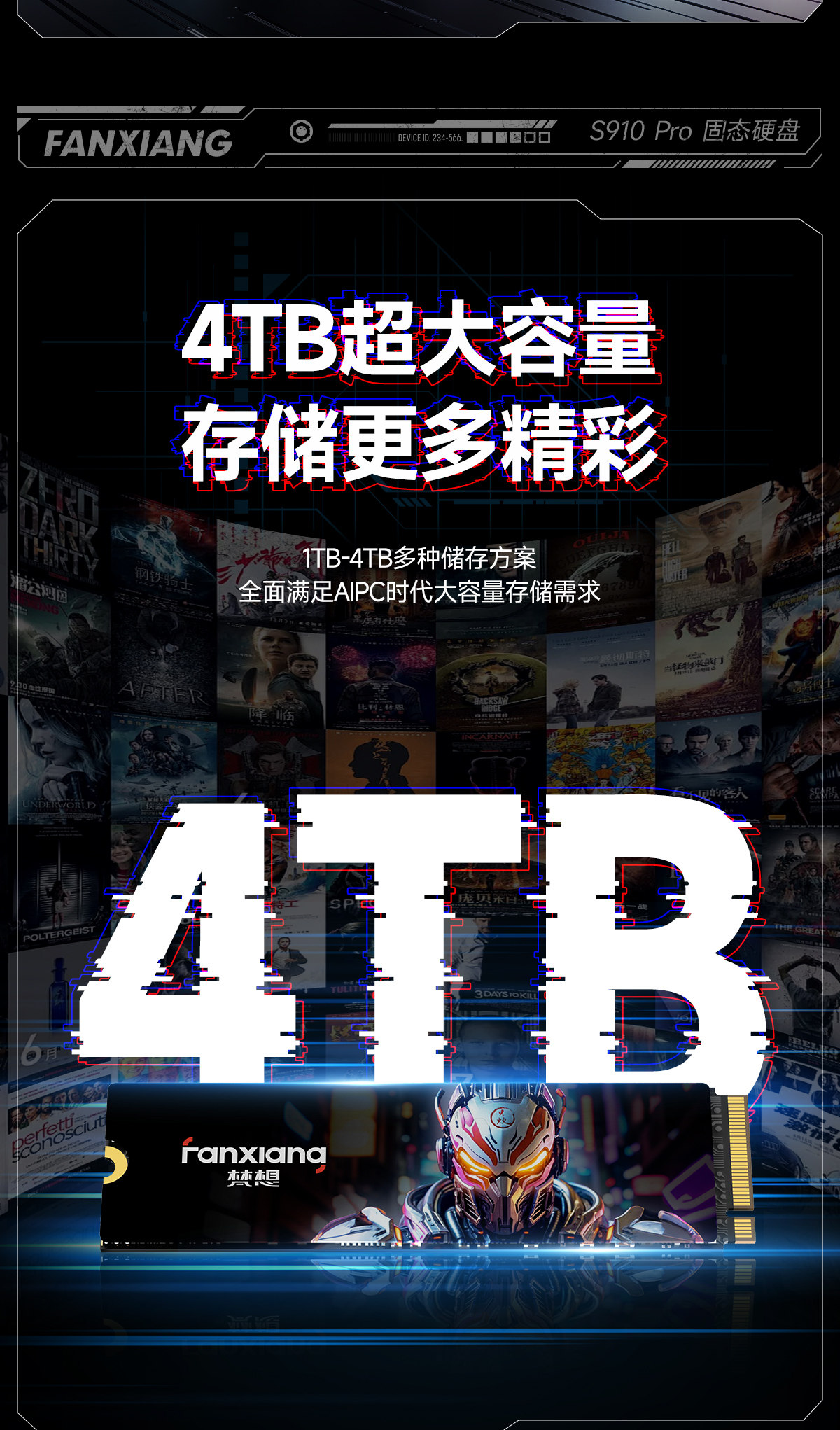Fanxiang S910Pro High-Speed Ssd Solid-State Drive 2T4T Desktop Computer M2 Solid-State Drive Pcie5.0