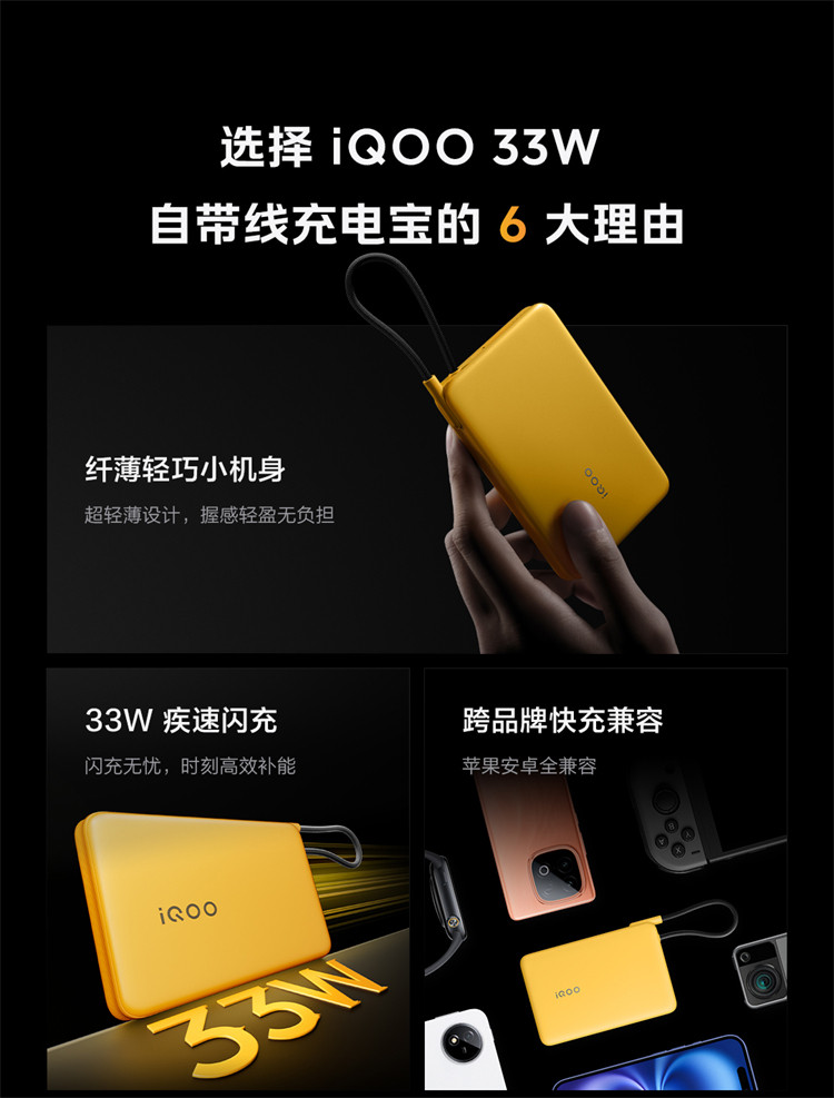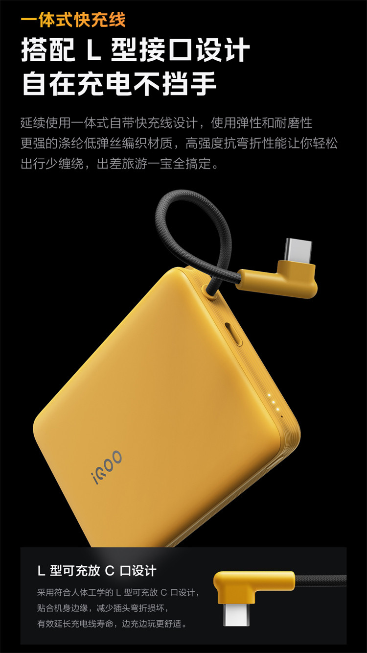 Vivo Iqoo Original Power Bank 33W Flash Charging 10000Mah Fast Charging Power Bank Genuine Portable Power Bank with Built-In Cable Official Flagship Can Be Taken on Airplanes Power Bank