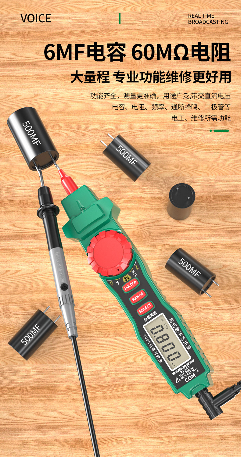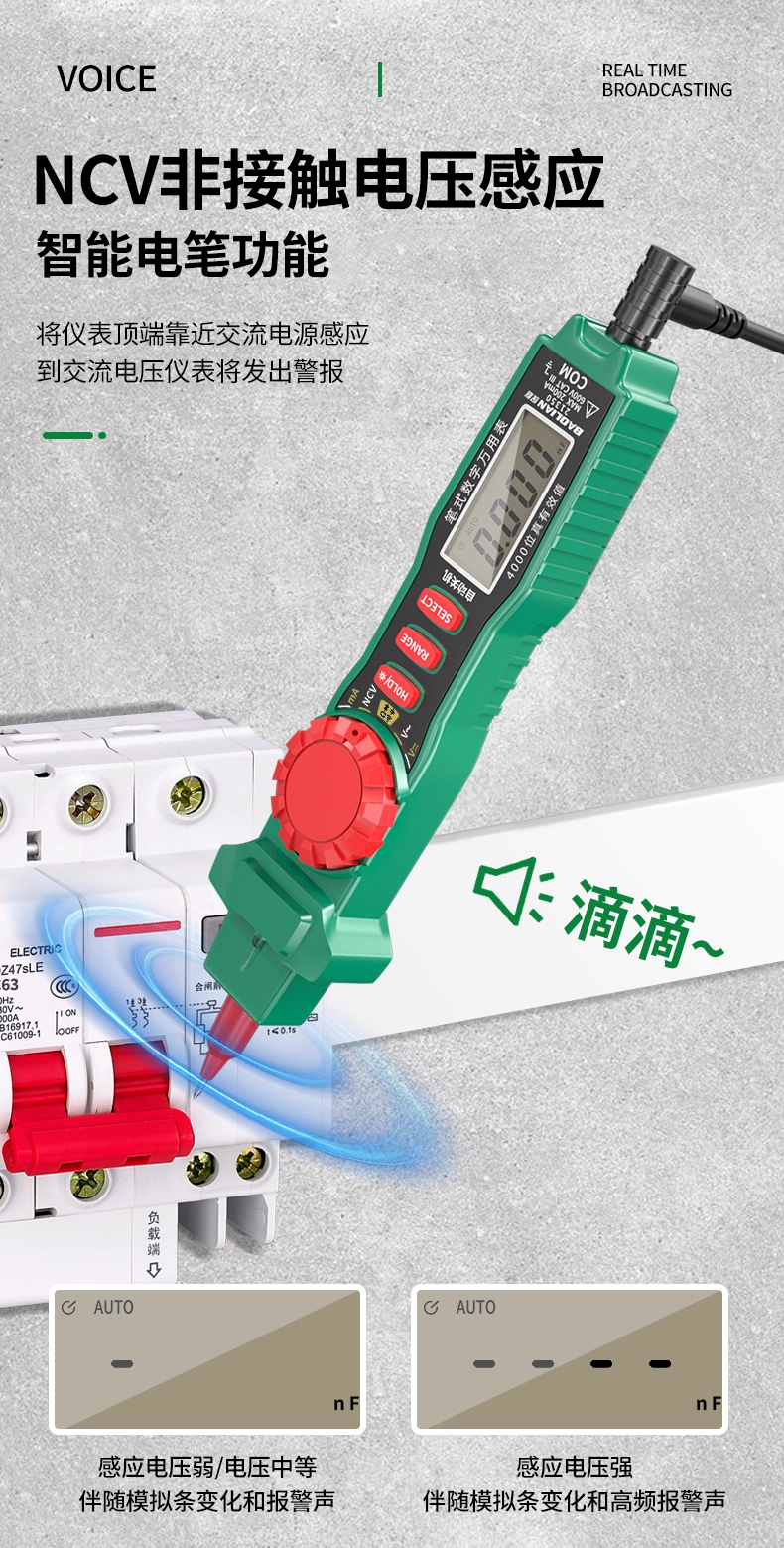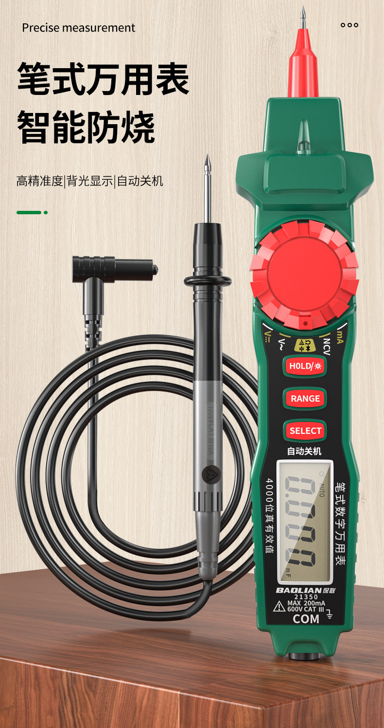 Baolian Pen-Type Multimeter with High Precision Digital Display, Intelligent Anti-Burn, Dual-Purpose, Multi-Functional Capacitance Measuring Multimeter