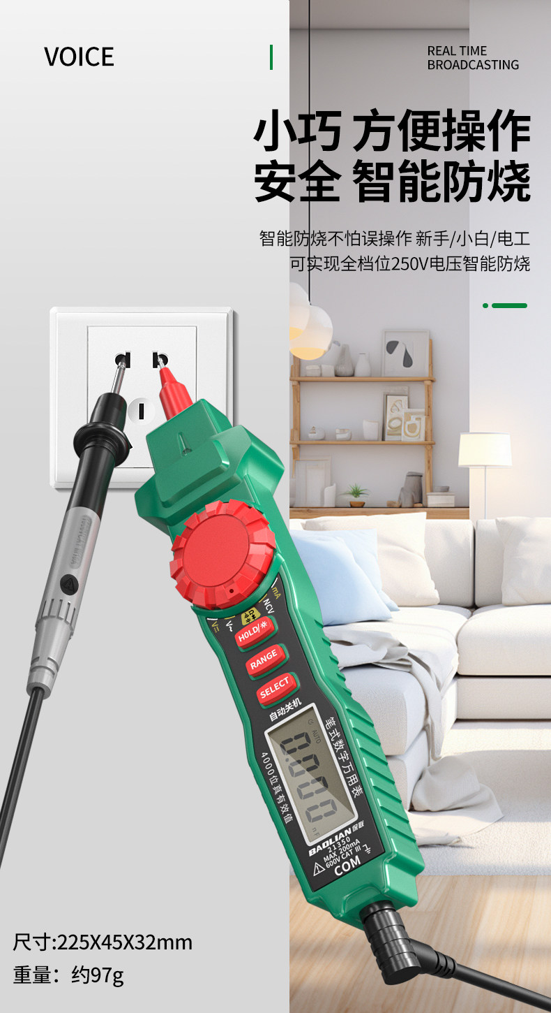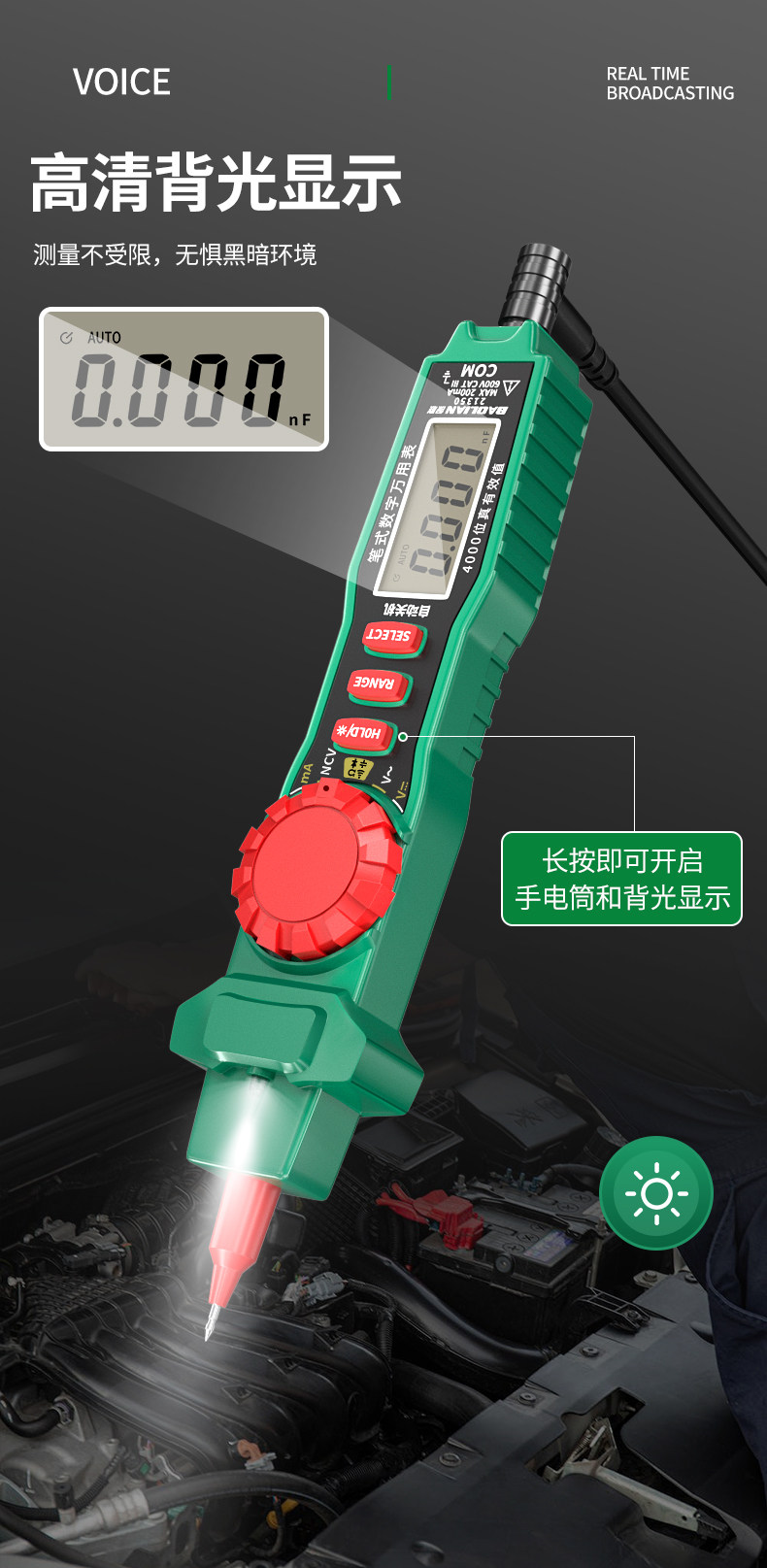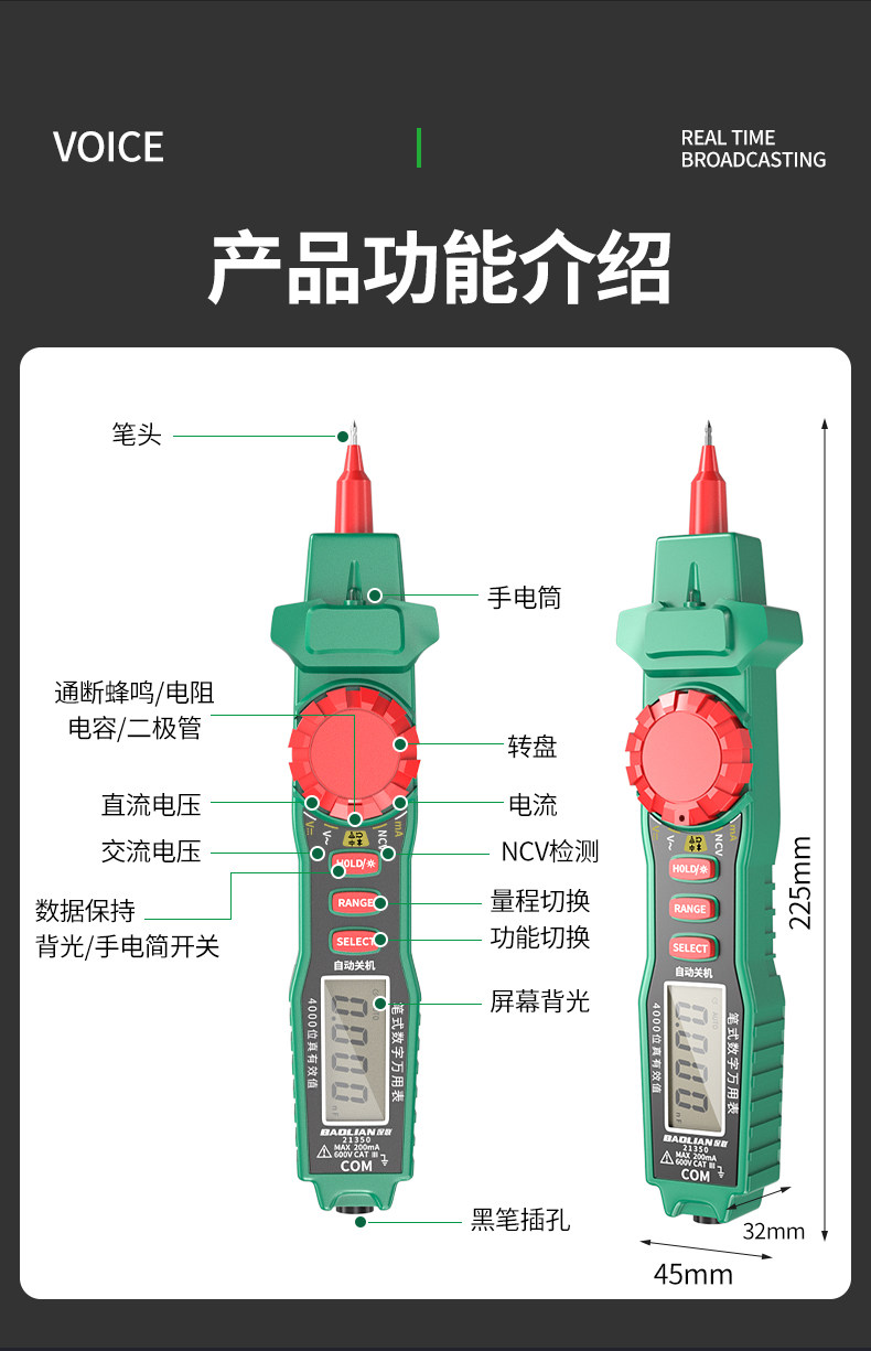 Baolian Pen-Type Multimeter with High Precision Digital Display, Intelligent Anti-Burn, Dual-Purpose, Multi-Functional Capacitance Measuring Multimeter