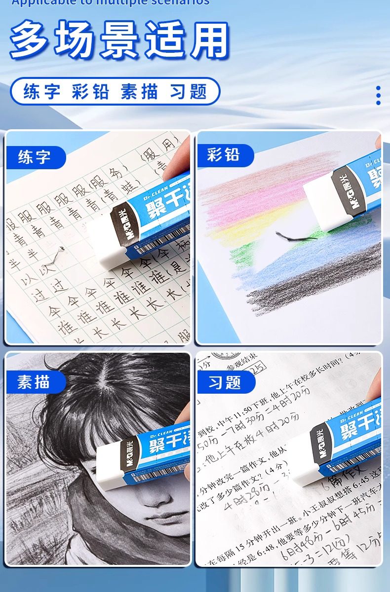Morning Light 2B Eraser with Low Debris, Ultra-Clean, Specially Designed for Elementary School Students, Leaves No Marks, Suitable for Kindergarten Exams, Art Sketching, Children's Eraser, Phthalate-Free, Debris-Free, Pencil Eraser, Stationery