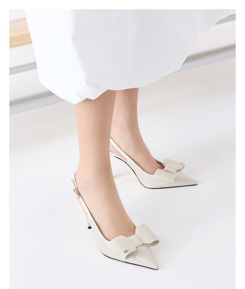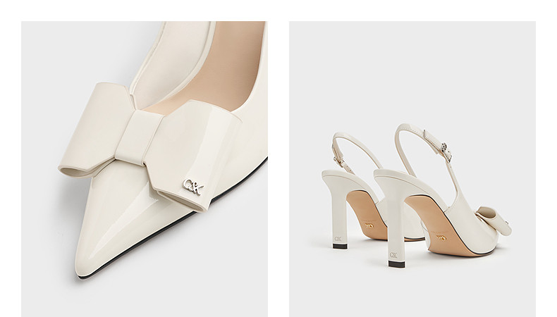 Charles&Keith25 Autumn New Model Sl1-60280488 Elegant Pointed Toe Bow High Heel Sandals Wedding Shoes