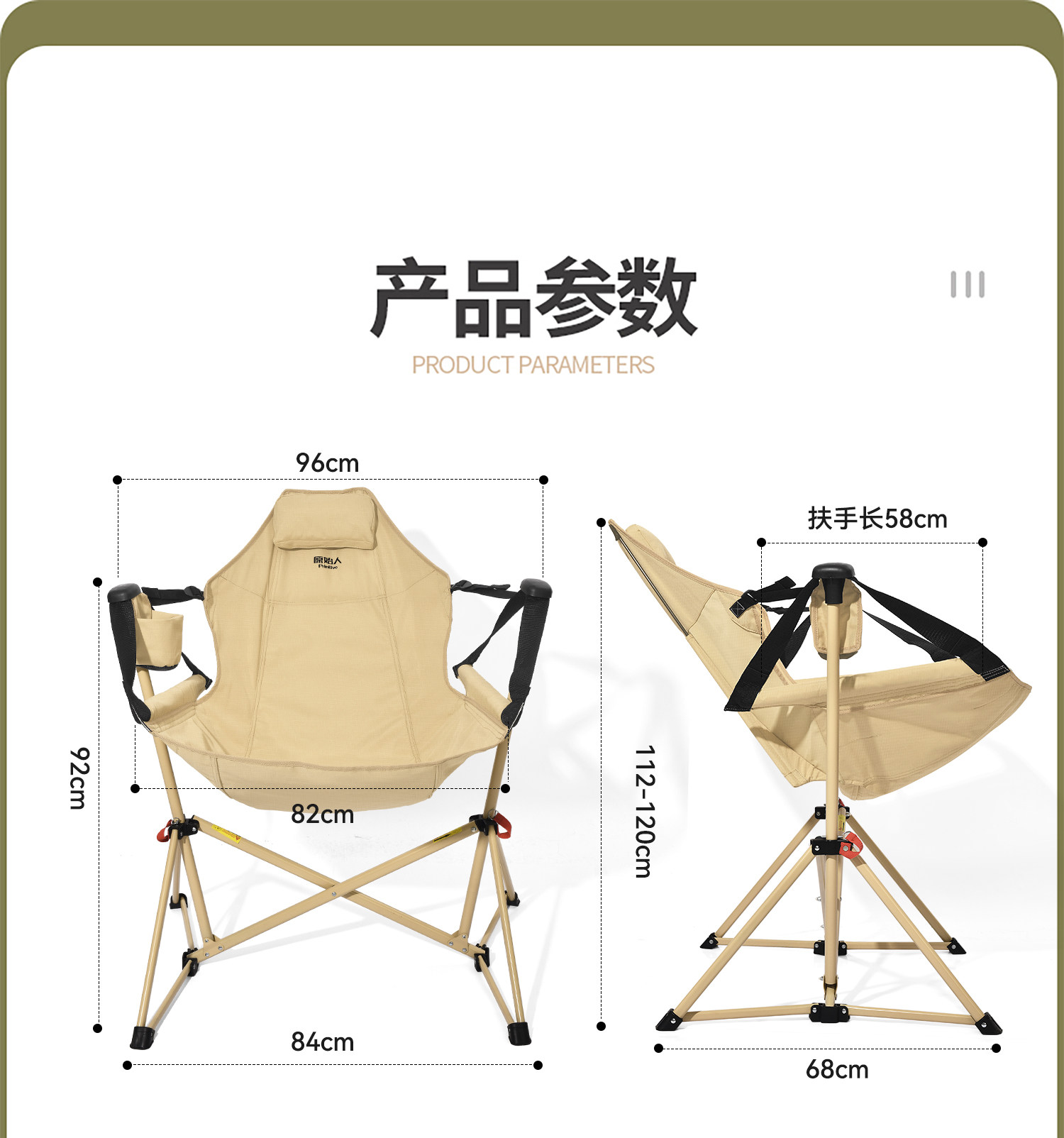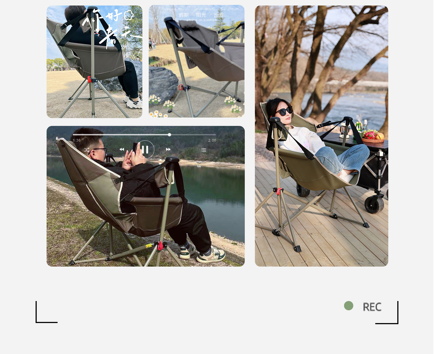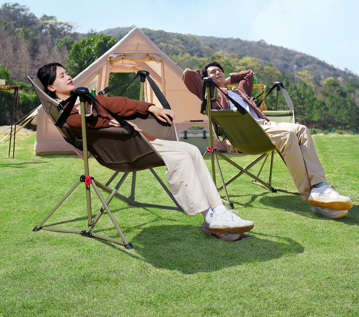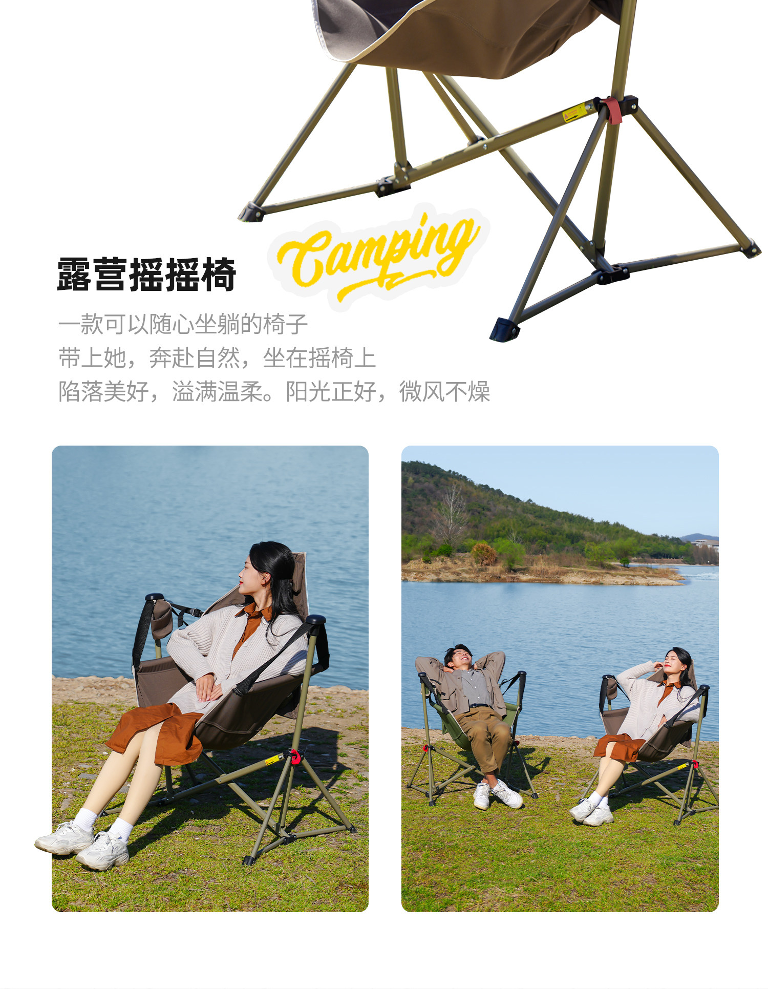 Primitive Outdoor Camping Rocking Chair, Folding Rocking Chair, Portable Table and Chair Set, Camping Complete Set, Picnic Recliner, Beach Chair