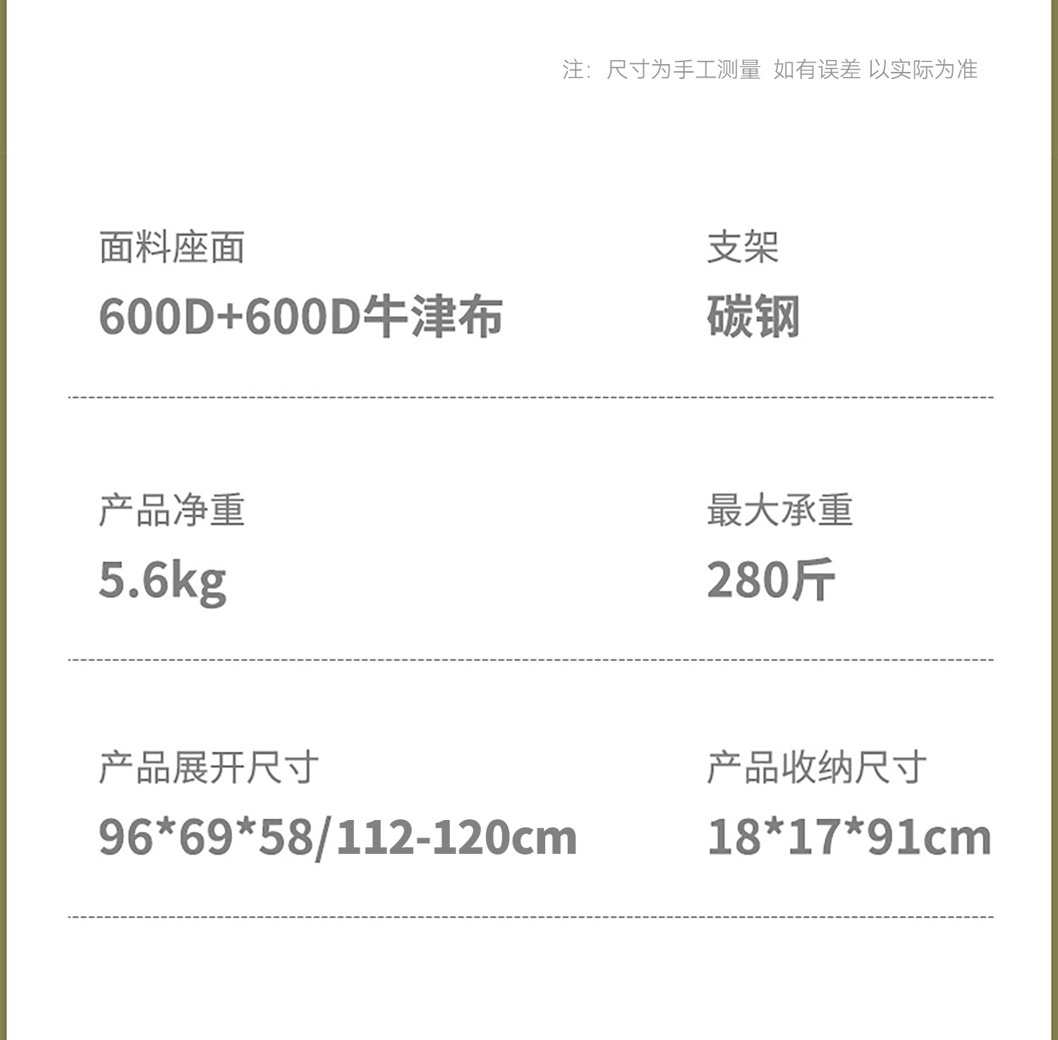 | Single Chair Weight | 5.6kg |