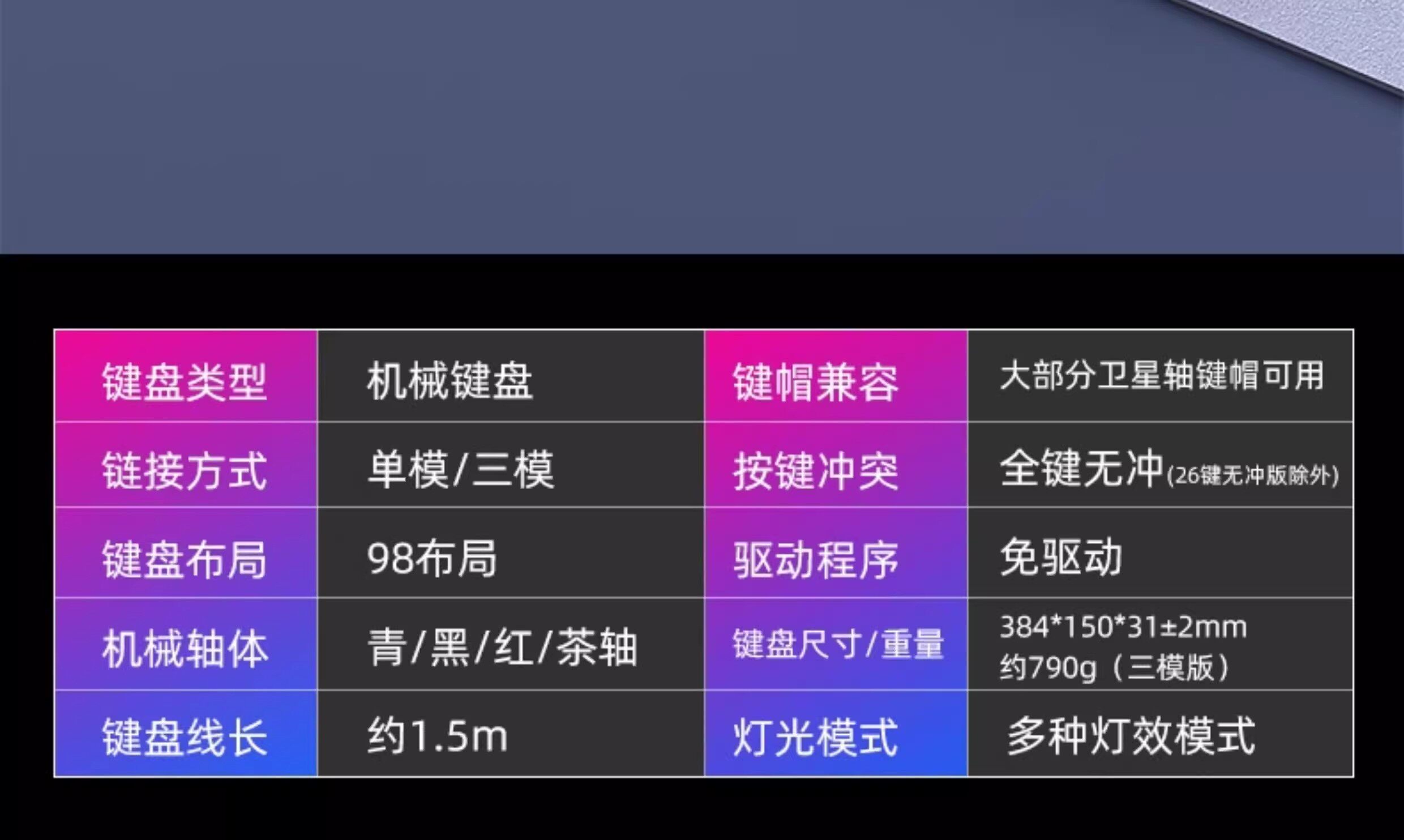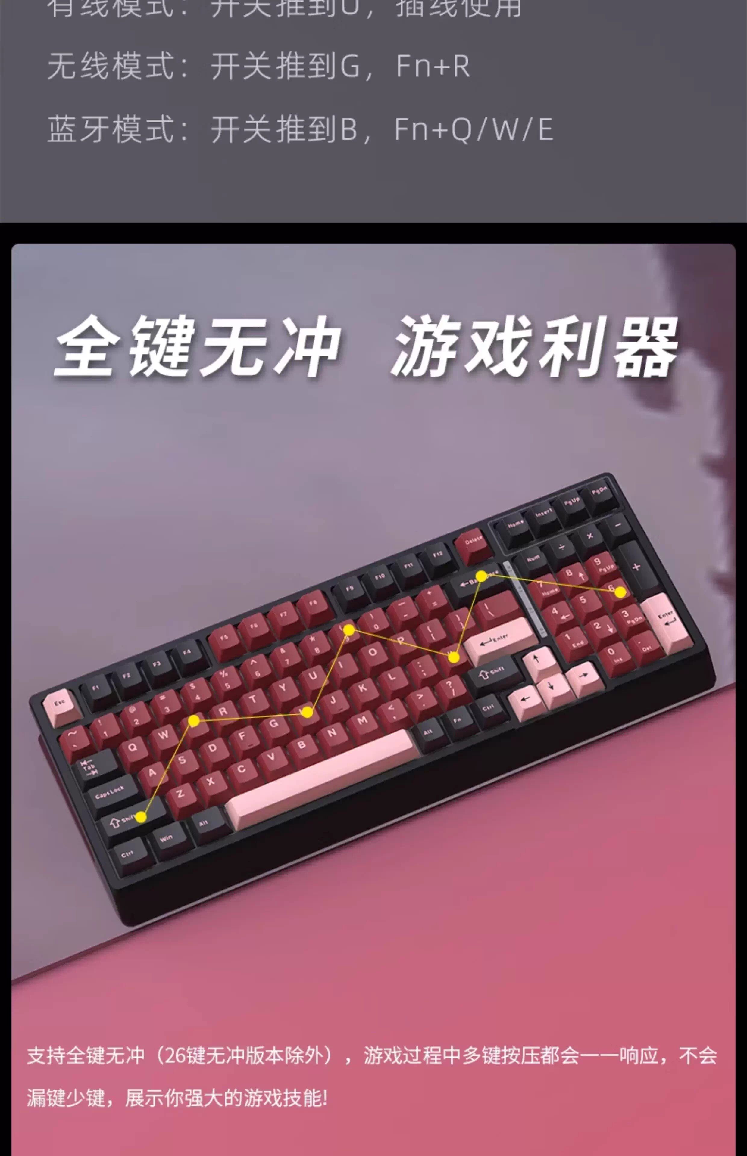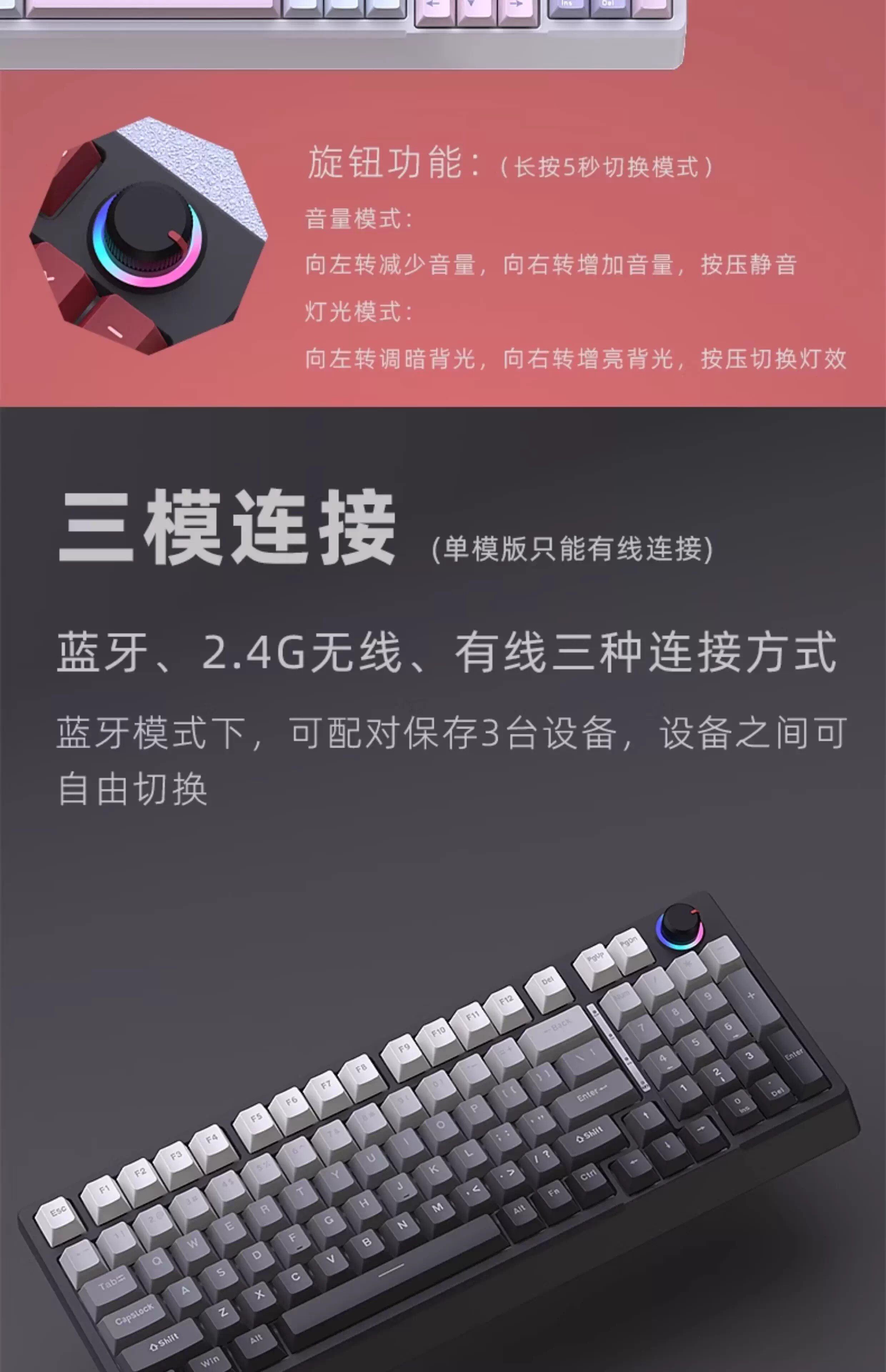 Wuying H98 Mechanical Keyboard Bluetooth Three-Mode 2.4g Wireless Wired Gaming E-Sports Home Business Typing Peripherals