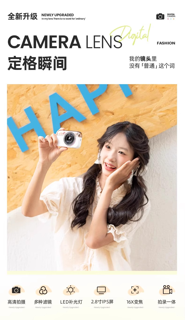 | Color Classification | [Limited Time Gift]Order Now and Get a Crayon Shin-Chan Mosquito Repellent Sticker as a Free Gift!!!!,[Add to Favorites + Add to Cart]Shipping Insurance Fee +1 Year ,[2025 Upgraded Version]Millionaire Influencer Recommended,"Pearl White" 9600W Pixel Ultra●Front and Rear Dual Cameras●4K Video●27 Kinds of Filters●Listen to Mp3 Songs●Can Be Transferred to Mobile Phone●Electronic Image Stabilization,"Rouge Powder" 96 Million Pixels Ultra●Front and Rear Dual Cameras●4K Video●27 Kinds of Filters●Listen to Mp3 Songs●Can Be Transferred to Mobile Phone●Electronic Image Stabilization,"Sky Blue" 96 Million Pixels Ultra●Front and Rear Dual Cameras●4K Video●27 Kinds of Filters●Listen to Mp3 Songs●Can Be Transferred to Mobile Phone●Electronic Image Stabilization,↓↓↓↓The Following Is the Gift Box Package↓↓↓↓,Gift Box Set "Pearl White" 9600W Pixel Ultra●Front and Rear Dual Cameras●4K Video●27 Kinds of Filters●Listen to Mp3 Songs●Can Be Transferred to Mobile Phone●Electronic Image Stabilization,Gift Box "Rouge Powder" 9600W Pixels Super●Front and Rear Dual Cameras●4K Video●27 Kinds of Filters●Listen to Mp3 Songs●Can Be Transferred to Mobile Phone●Electronic Image Stabilization,Gift Box "Sky Blue" 9600W Pixel Ultra●Front and Rear Dual Cameras●4K Video●27 Kinds of Filters●Listen to Mp3 Songs●Can Be Transferred to Mobile Phone●Electronic Image Stabilization |