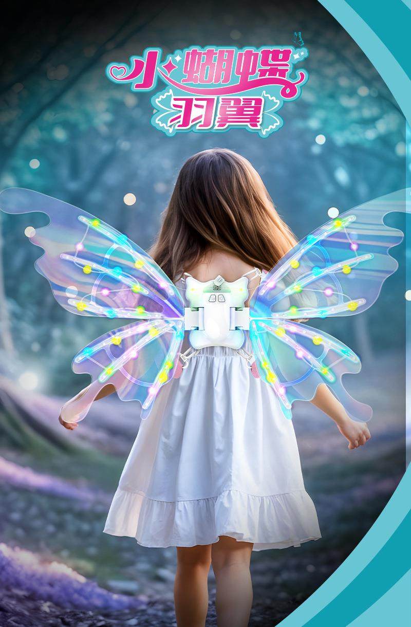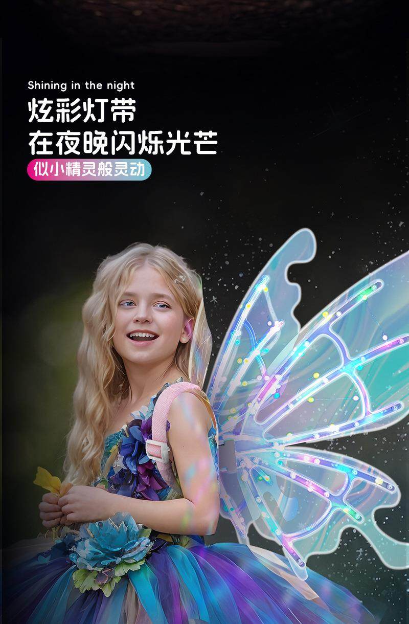 Children's Electric Light-Up Butterfly Wings Back Decoration Fluorescent Toy for Girls 2025 New Model Girls' Birthday Gift Fairy