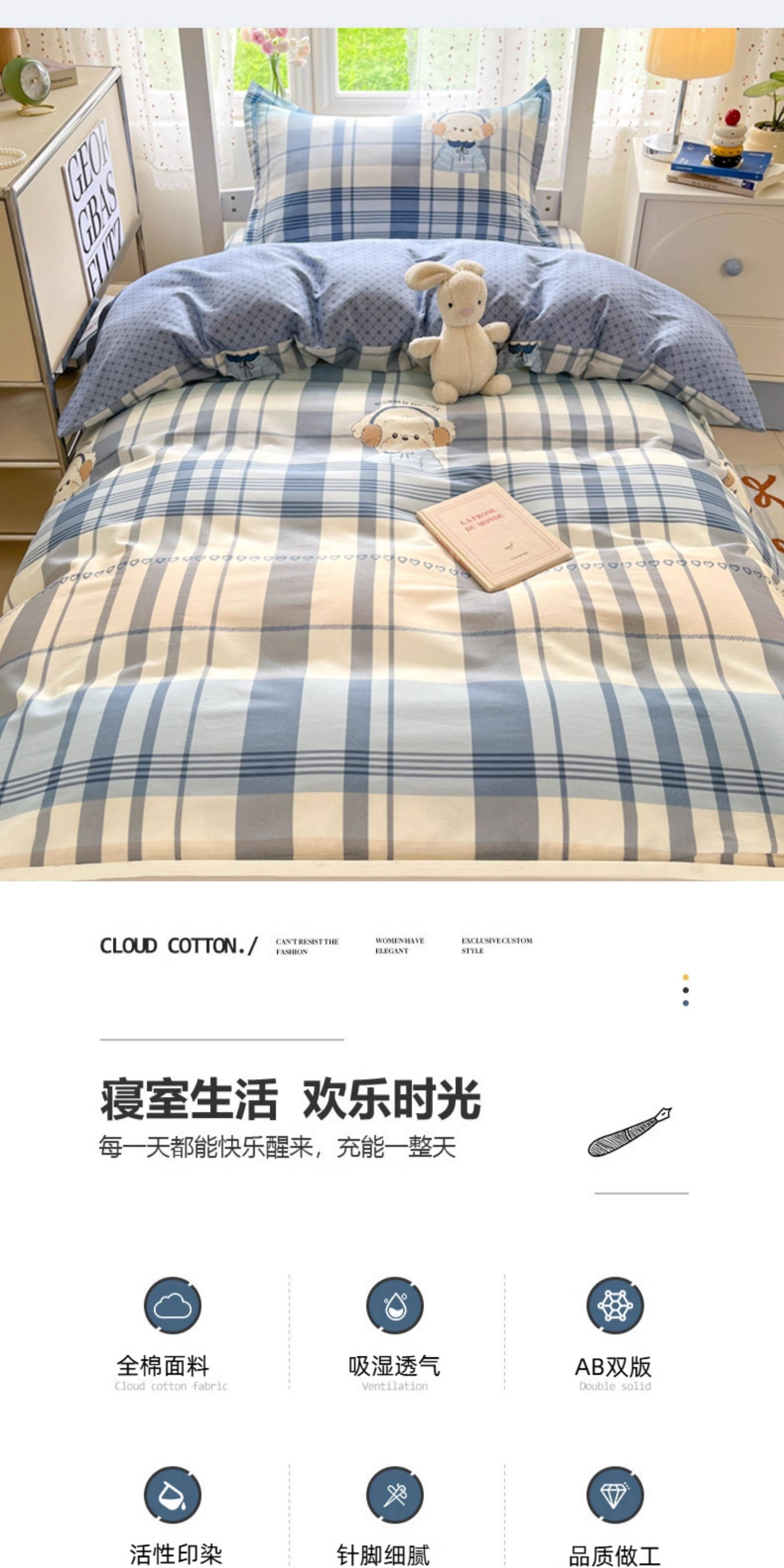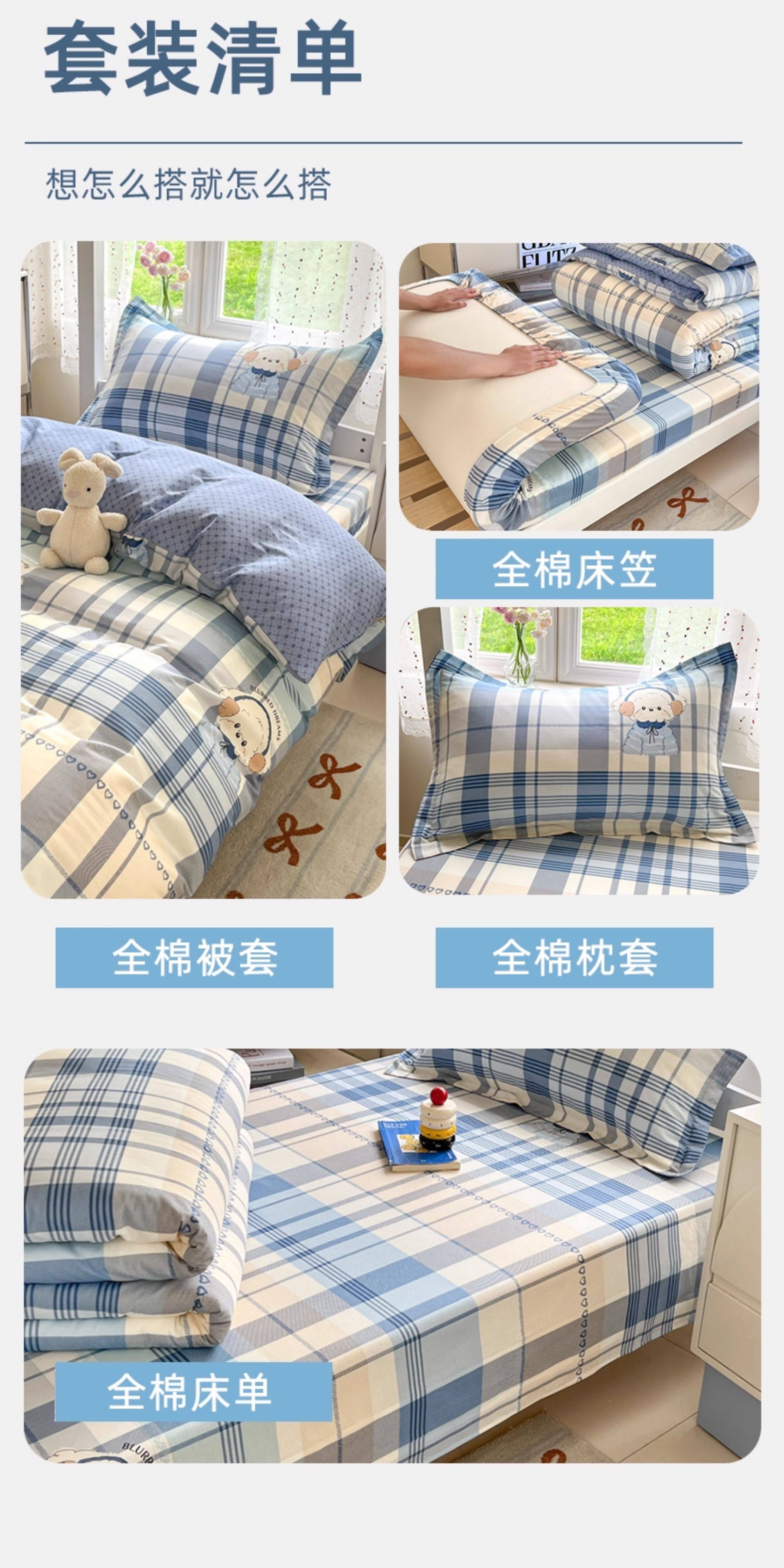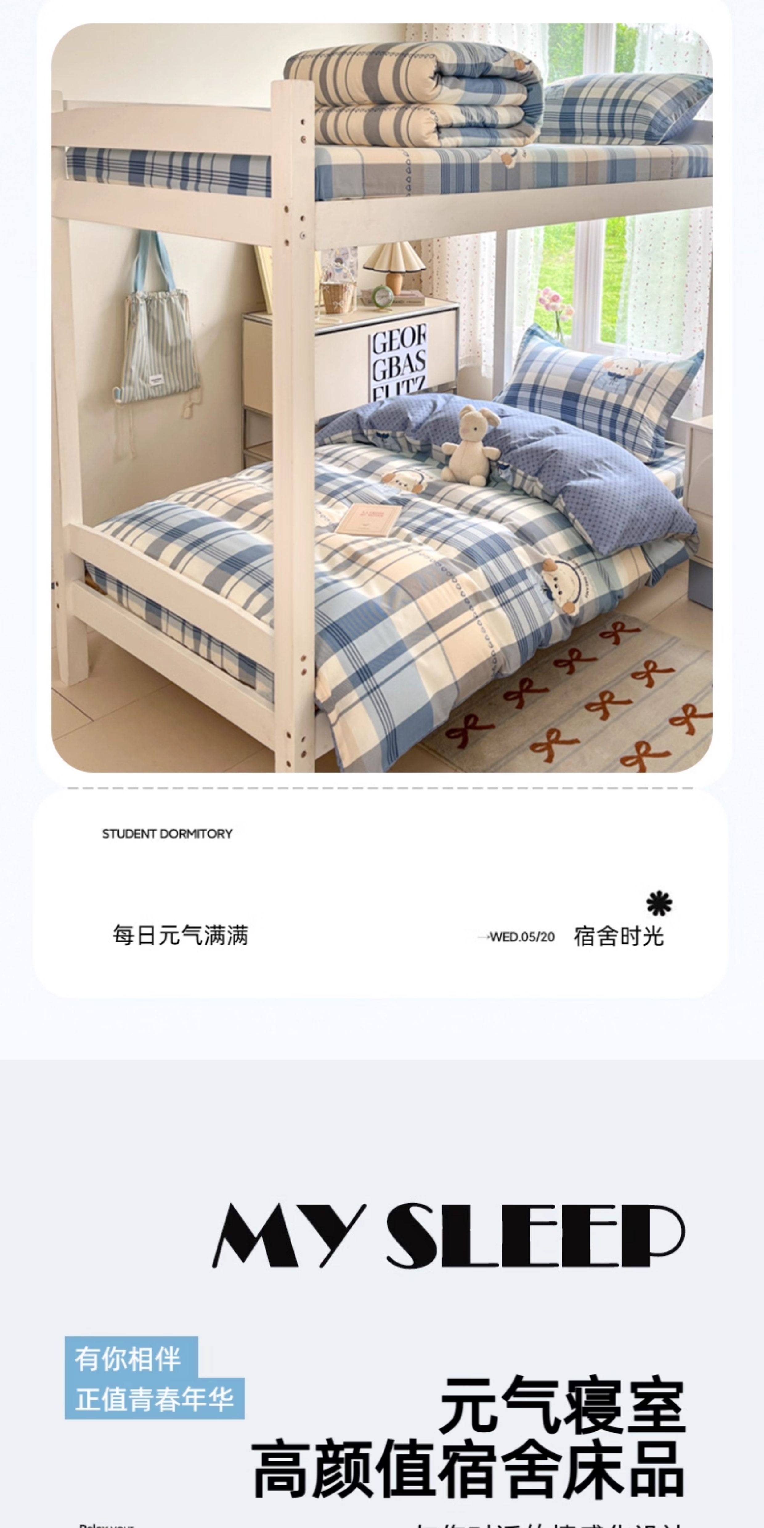 Pure Cotton College Dormitory Bed Three-Piece Set, Pure Cotton Duvet Cover, Bed Sheet, Bunk Bed Single Six-Piece Set, Mattress and Pillow
