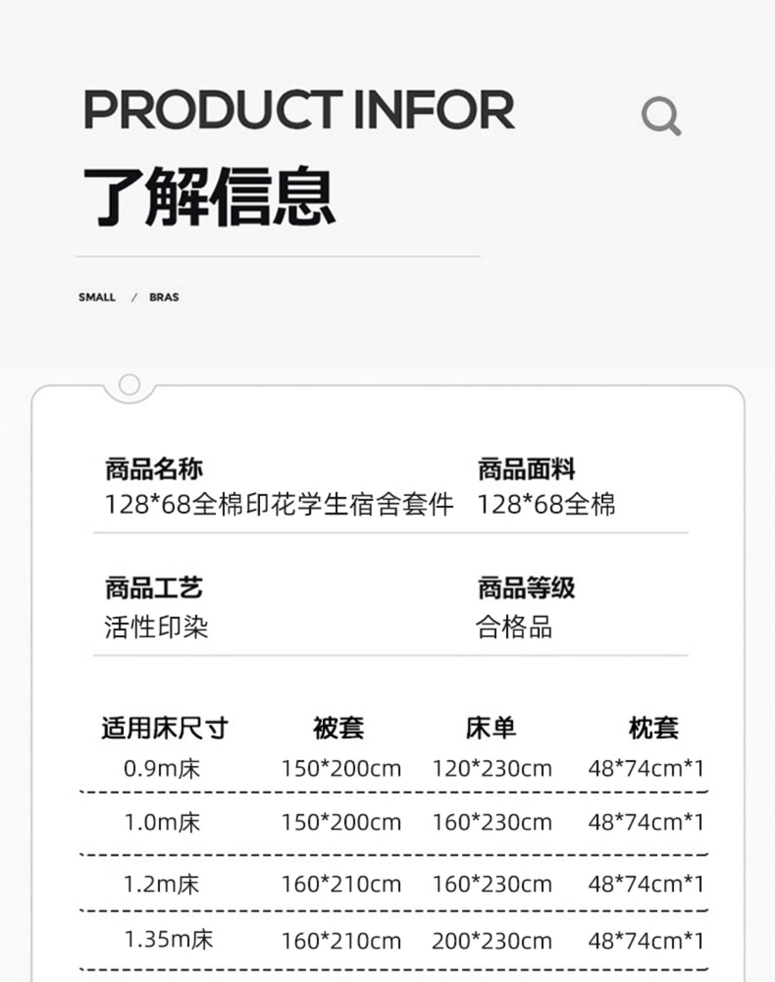 | Applicable Bed Size | 0.9m Bed [Three-Piece Bed Sheet Set] - Suitable for 150X200Cm Quilt Core,1.0m Bed [Three-Piece Bed Sheet Set] - Suitable for 150X200Cm Quilt Core,1.2m Bed [Three-Piece Bed Sheet Set] - Suitable for 160X210Cm Quilt Core,1.35m Bed [Three-Piece Bed Sheet Set] - Suitable for 160X210Cm Quilt Core,0.9*2.0m Bed [Three-Piece Fitted Sheet Set] - Suitable for 150X200Cm Quilt Core,1.2*2.0m Bed [Three-Piece Fitted Sheet Set] - Suitable for 150X200Cm Quilt Core,0.9m Six-Piece Bed Sheet Set [Three-Piece Set + about 1.5kg Quilt Core + Mattress + One Pillow Core],0.9m Six-Piece Bed Sheet Set [Three-Piece Set + about 2.5kg Quilt Core + Mattress + One Pillow Core],0.9m Six-Piece Fitted Sheet Set [Three-Piece Set + about 1.5kg Quilt Core + Mattress + One Pillow Core],0.9m Six-Piece Fitted Sheet Set [Three-Piece Set + about 2.5kg Quilt Core + Mattress + One Pillow Core] |