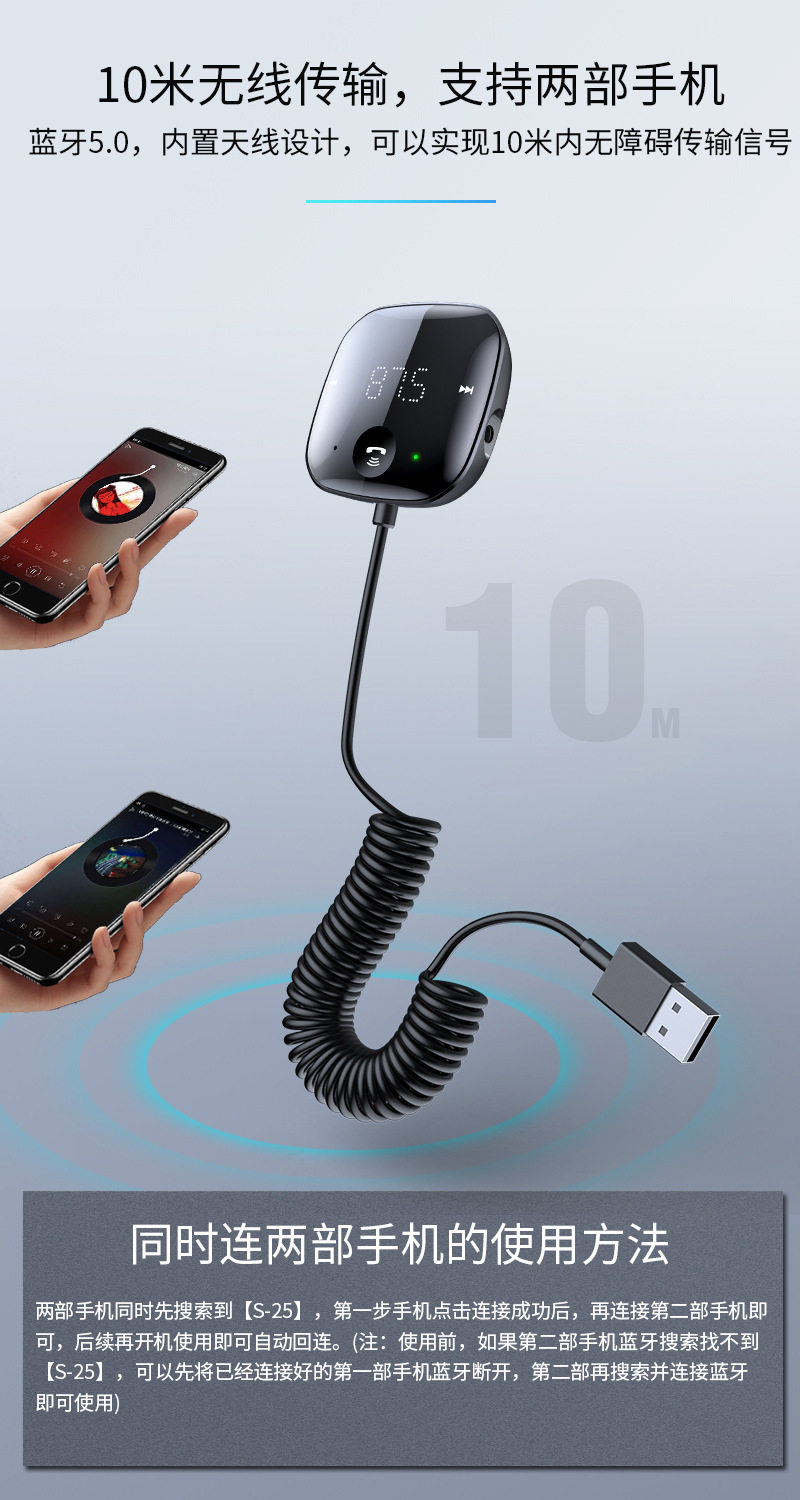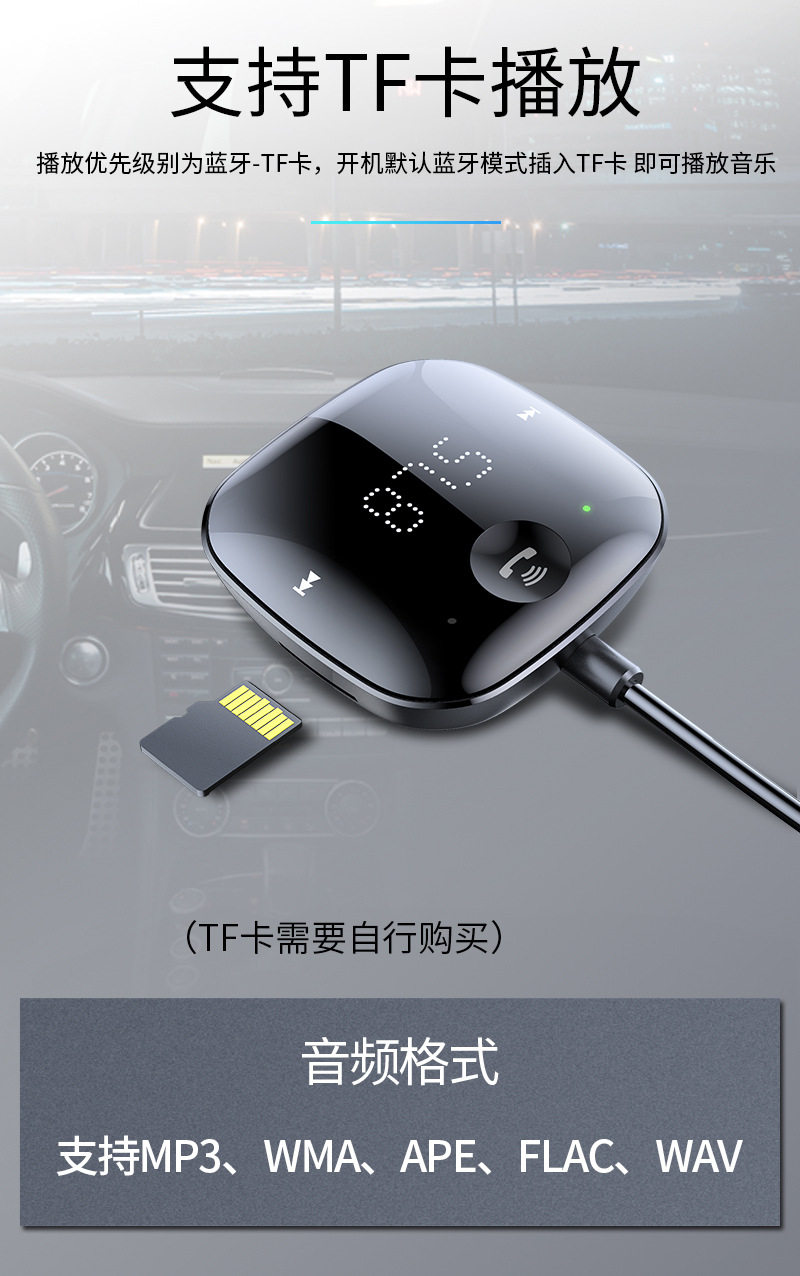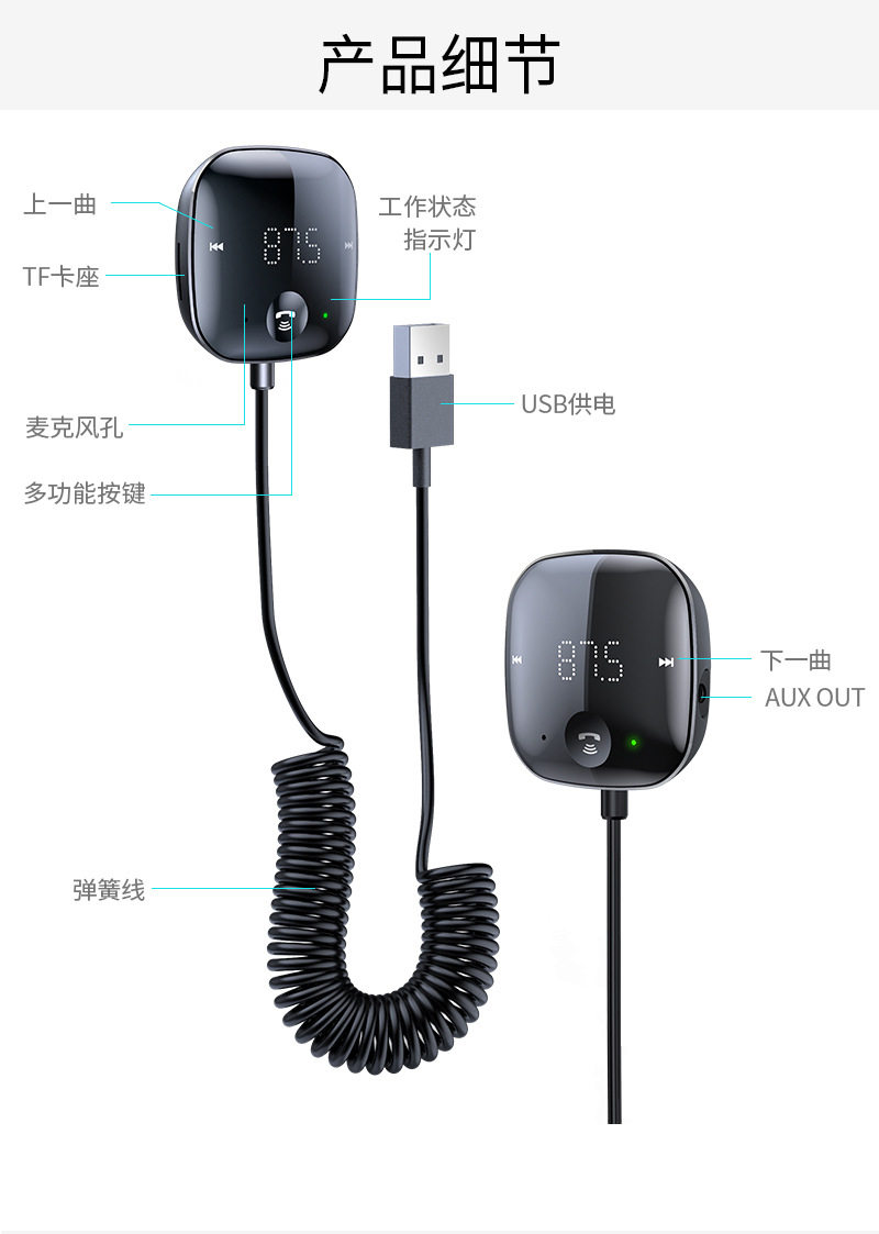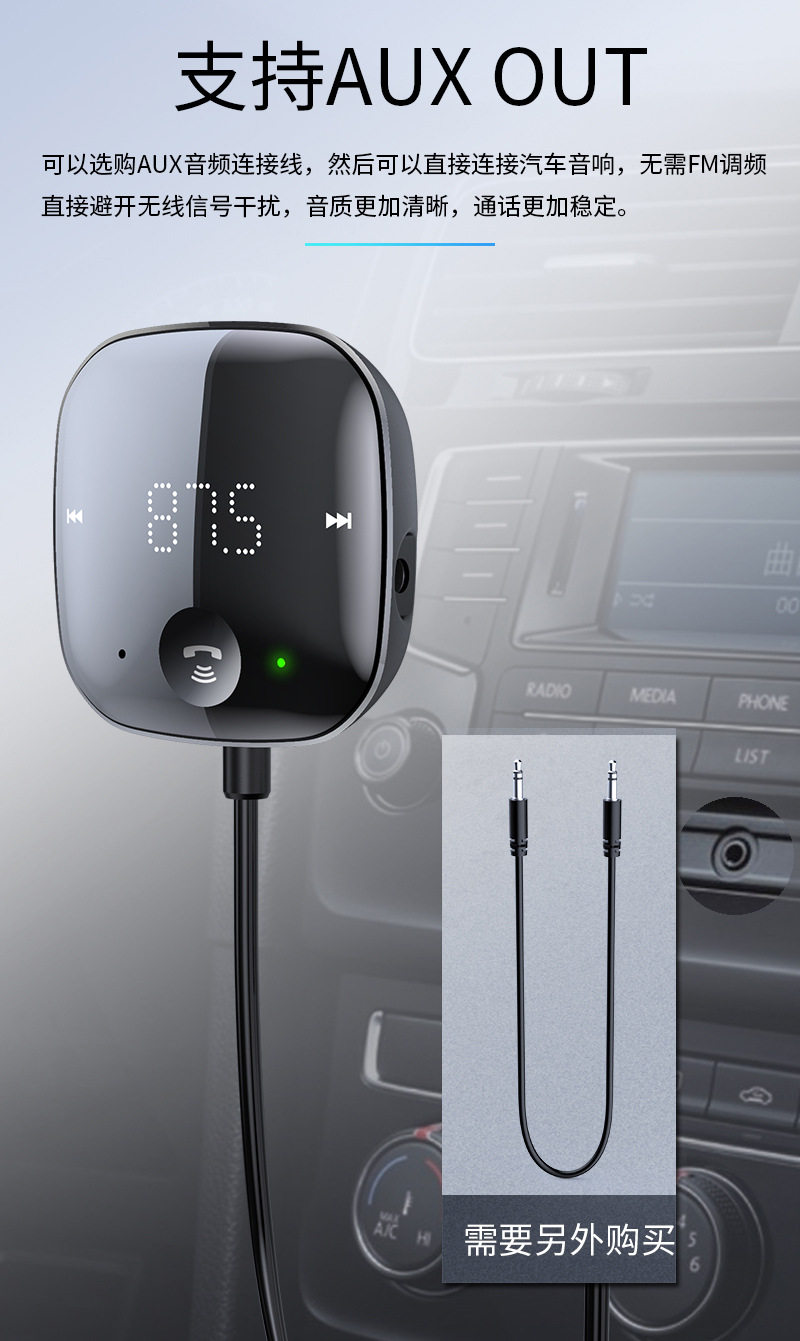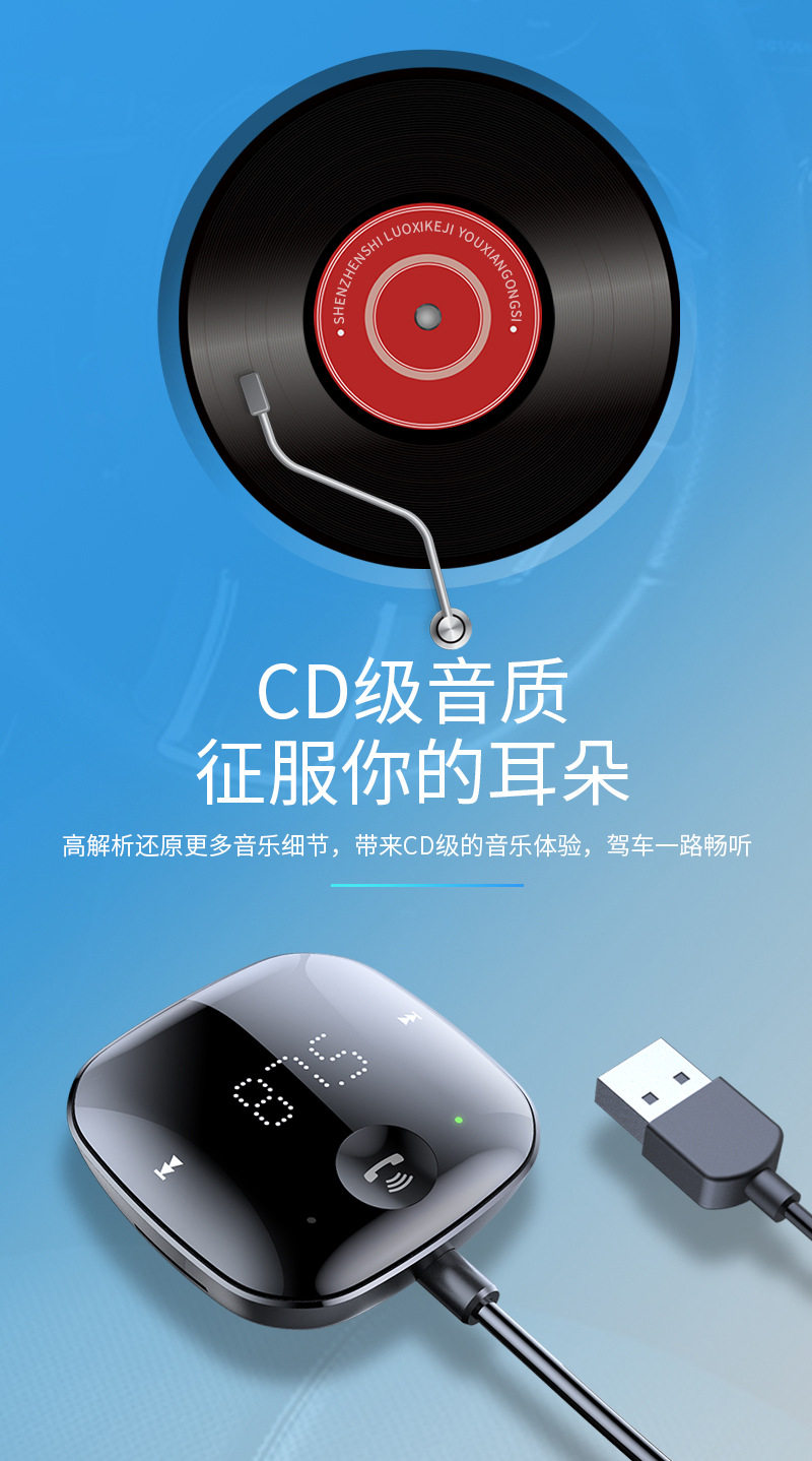 USB Connected Car Mp3 Player 5.0 Bluetooth Receiver Tf Card Music Car Audio Cable Fm Transmitter