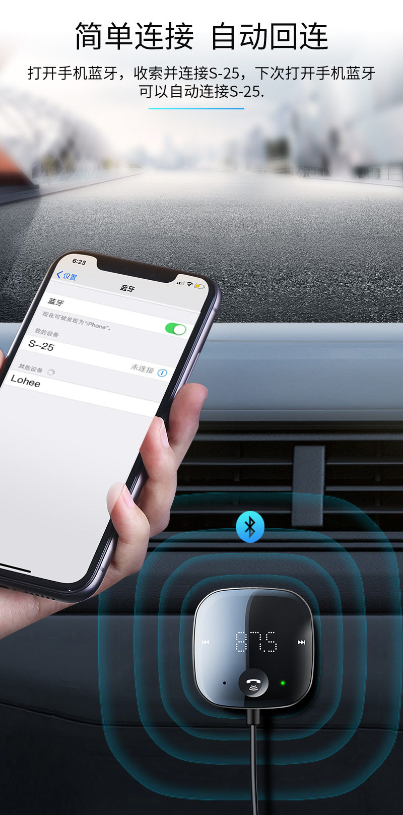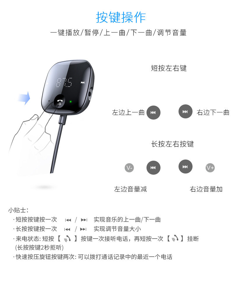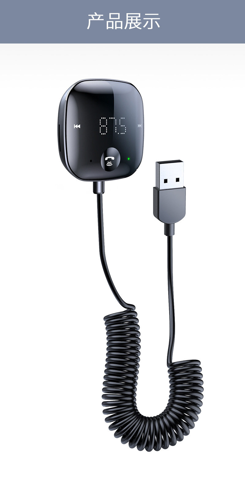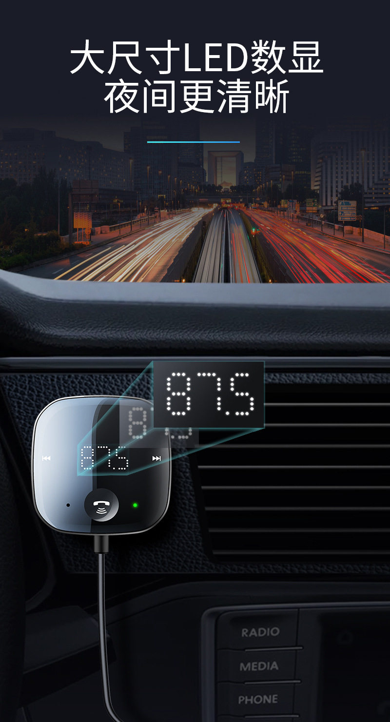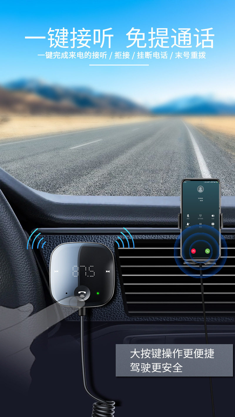 USB Connected Car Mp3 Player 5.0 Bluetooth Receiver Tf Card Music Car Audio Cable Fm Transmitter