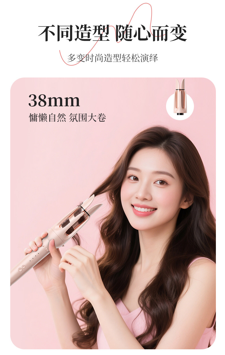 Fully Automatic Curling Iron 38mm Magic Tool for Large Curls, Negative Ions, Long-Lasting Styling, No Hair Damage, Egg Roll Three-In-One Straightening Comb