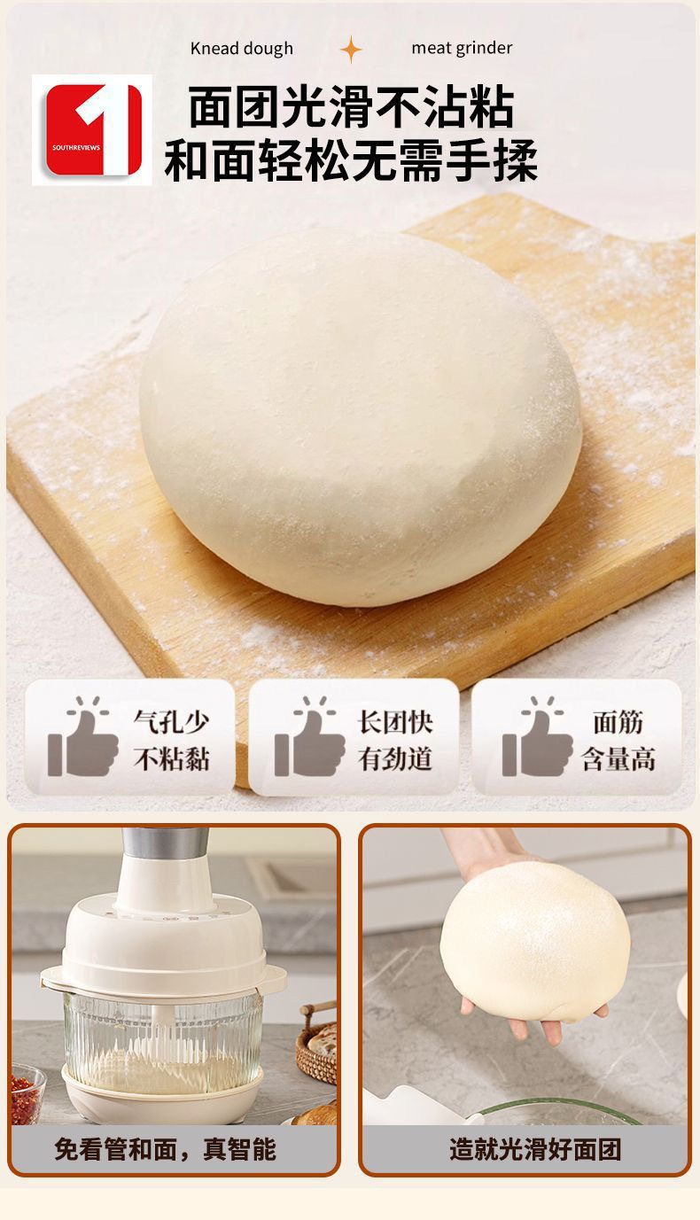 Suning Dough Mixer, Household Multi-Purpose Kneading Machine, Electric Food Supplement Mixer, Automatic Dough Kneading and Meat Grinding Machine 2872Z