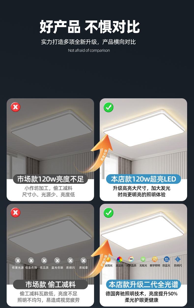 | Color Classification | Round 40cm Three-Tone Lighting 48W[Full Spectrum Eye Protection],Round 40cm Stepless Remote Control 48W[Full Spectrum Eye Protection],Round 40cm Offline Voice 48W[Full Spectrum Eye Protection],Round 40cm Tmall Elf 48W[Full Spectrum Eye Protection],Round 40cm Xiao Ai Classmate 48W[Full Spectrum Eye Protection],Round 50cm Three-Tone Lighting 72W[Full Spectrum Eye Protection],Round 50cm Stepless Remote Control 72W[Full Spectrum Eye Protection],Round 50cm Offline Voice 72W[Full Spectrum Eye Protection],Round 50cm Tmall Elf 72W[Full Spectrum Eye Protection],Round 50cm Xiao Ai Classmate 72W[Full Spectrum Eye Protection],Round 60cm Three-Tone Lighting 96W[Full Spectrum Eye Protection],Round 60cm Stepless Remote Control 96W[Full Spectrum Eye Protection],Round 60cm Offline Voice 96W[Full Spectrum Eye Protection],Round 60cm Tmall Elf 96W[Full Spectrum Eye Protection],Round 60cm Xiao Ai Classmate 96W[Full Spectrum Eye Protection],Round 80cm Three-Tone Lighting 192W[Full Spectrum Eye Protection],Round 80cm Stepless Remote Control 192W[Full Spectrum Eye Protection],Round 80cm Offline Voice 192W[Full Spectrum Eye Protection],Round 80cm Tmall Elf 192W[Full Spectrum Eye Protection],Round 80cm Xiao Ai Classmate 192W[Full Spectrum Eye Protection],Round 100cm Three-Tone Lighting 240W[Full Spectrum Eye Protection],Round 100cm Stepless Remote Control 240W[Full Spectrum Eye Protection],Circle 100cm Offline Voice 240W[Full Spectrum Eye Protection],Round 100cm Tmall Elf 240W[Full Spectrum Eye Protection],Round 100cm Xiao Ai Classmate 240W[Full Spectrum Eye Protection],Square 40X40Cm Three-Tone Lighting 72W[Full Spectrum Eye Protection],Square 40X40Cm Stepless Remote Control 72W[Full Spectrum Eye Protection],Square 40X40Cm Offline Voice 72W[Full Spectrum Eye Protection],Square 40X40Cm Tmall Elf 72W[Full Spectrum Eye Protection],Square 40X40Cm Xiao Ai Classmate 72W[Full Spectrum Eye Protection],Square 50X50Cm Three-Tone Lighting 96W[Full Spectrum Eye Protection],Square 50X50Cm Stepless Remote Control 96W[Full Spectrum Eye Protection],Square 50X50Cm Offline Voice 96W[Full Spectrum Eye Protection],Square 50X50Cm Tmall Elf 96W[Full Spectrum Eye Protection],Square 50X50Cm Xiao Ai 96W[Full Spectrum Eye Protection],Square 60X60Cm Three-Tone Lighting 120W[Full Spectrum Eye Protection],Square 60X60Cm Stepless Remote Control 120W[Full Spectrum Eye Protection],Square 60X60Cm Offline Voice 120W[Full Spectrum Eye Protection],Square 60X60Cm Tmall Elf 120W[Full Spectrum Eye Protection],Square 60X60Cm Xiao Ai Classmate 120W[Full Spectrum Eye Protection],60X40Cm Three-Tone Lighting 96W[Full Spectrum Eye Protection],60X40Cm Stepless Dimming Remote Control 96W[Full Spectrum Eye Protection],60X40Cm Offline Voice 96W[Full Spectrum Eye Protection],60X40Cm Long Tmall Elf 96W[Full Spectrum Eye Protection],Length 60X40Cm Xiao Ai 96W[Full Spectrum Eye Protection],90X60Cm Tri-Color Dimmable Led Panel Light - 192W[Full Spectrum Eye Protection],90X60Cm Stepless Dimming Remote Control 192W[Full Spectrum Eye Protection],90X60Cm Offline Voice 192W[Full Spectrum Eye Protection],90X60Cm Long Tmall Elf 192W[Full Spectrum Eye Protection],Length 90X60Cm Xiao Ai Classmate 192W[Full Spectrum Eye Protection],110X70Cm Tri-Color Dimmable 240W[Full Spectrum Eye Protection],110X70Cm Stepless Dimming Remote Control 240W[Full Spectrum Eye Protection],110X70Cm Offline Voice 240W[Full Spectrum Eye Protection],110X70Cm Long Tmall Elf 240W[Full Spectrum Eye Protection],Length 110X70Cm Xiao Ai Classmate 240W[Full Spectrum Eye Protection] |