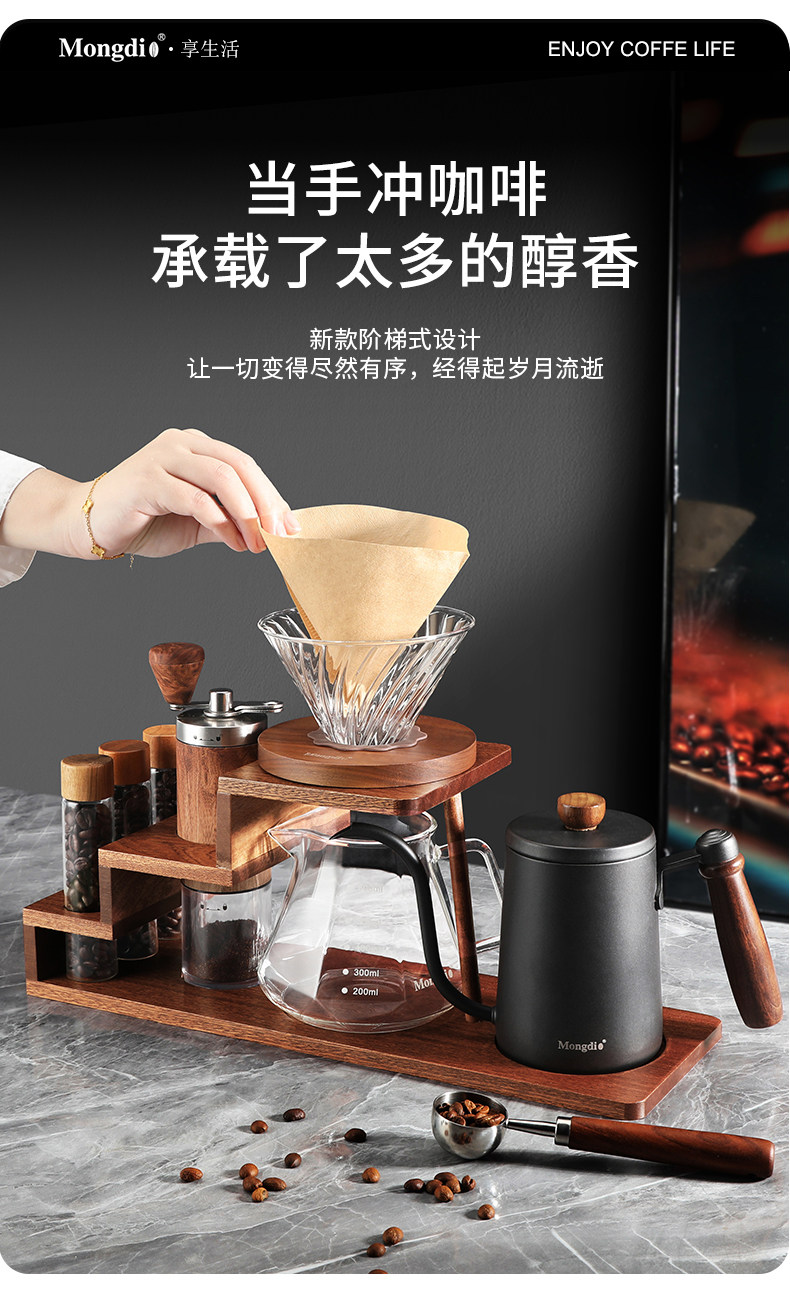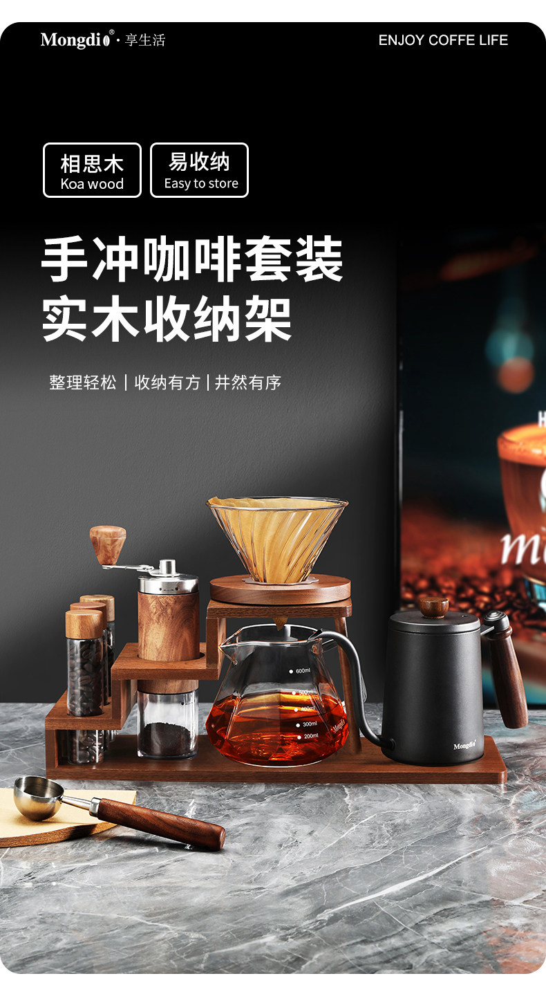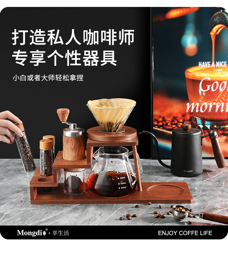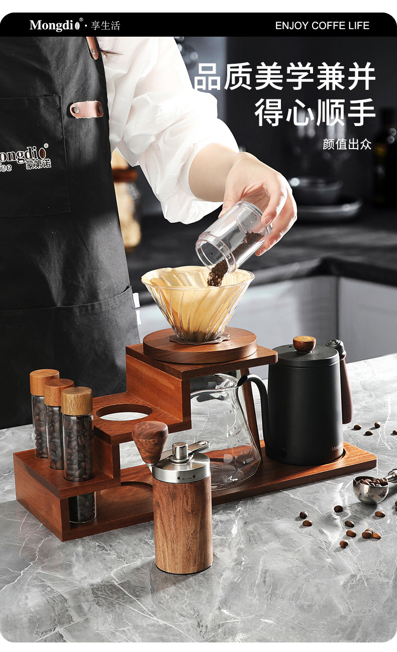 Mongdio Hand-Brewed Coffee Pot Set, Hand-Grind Coffee Machine, Hand-Cranked Storage Wooden Stand, Hand-Brewed Coffee Pot, Coffee Utensils