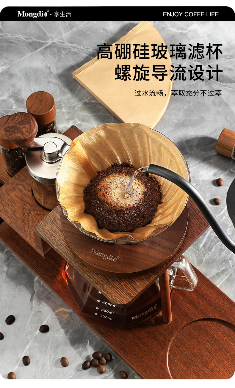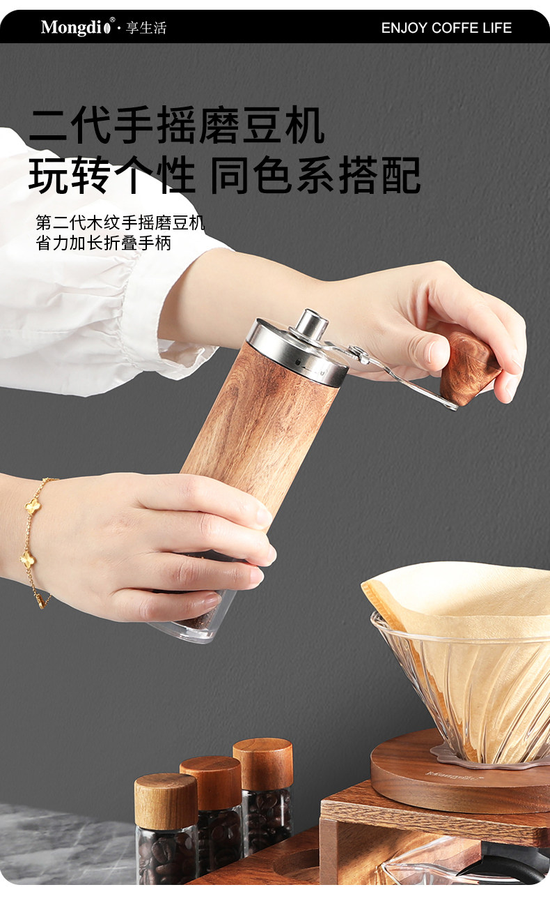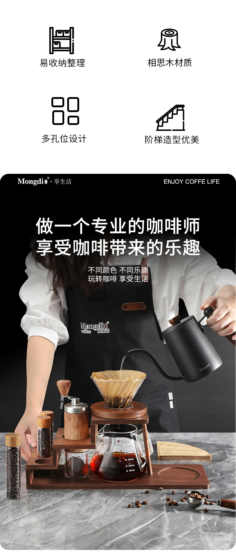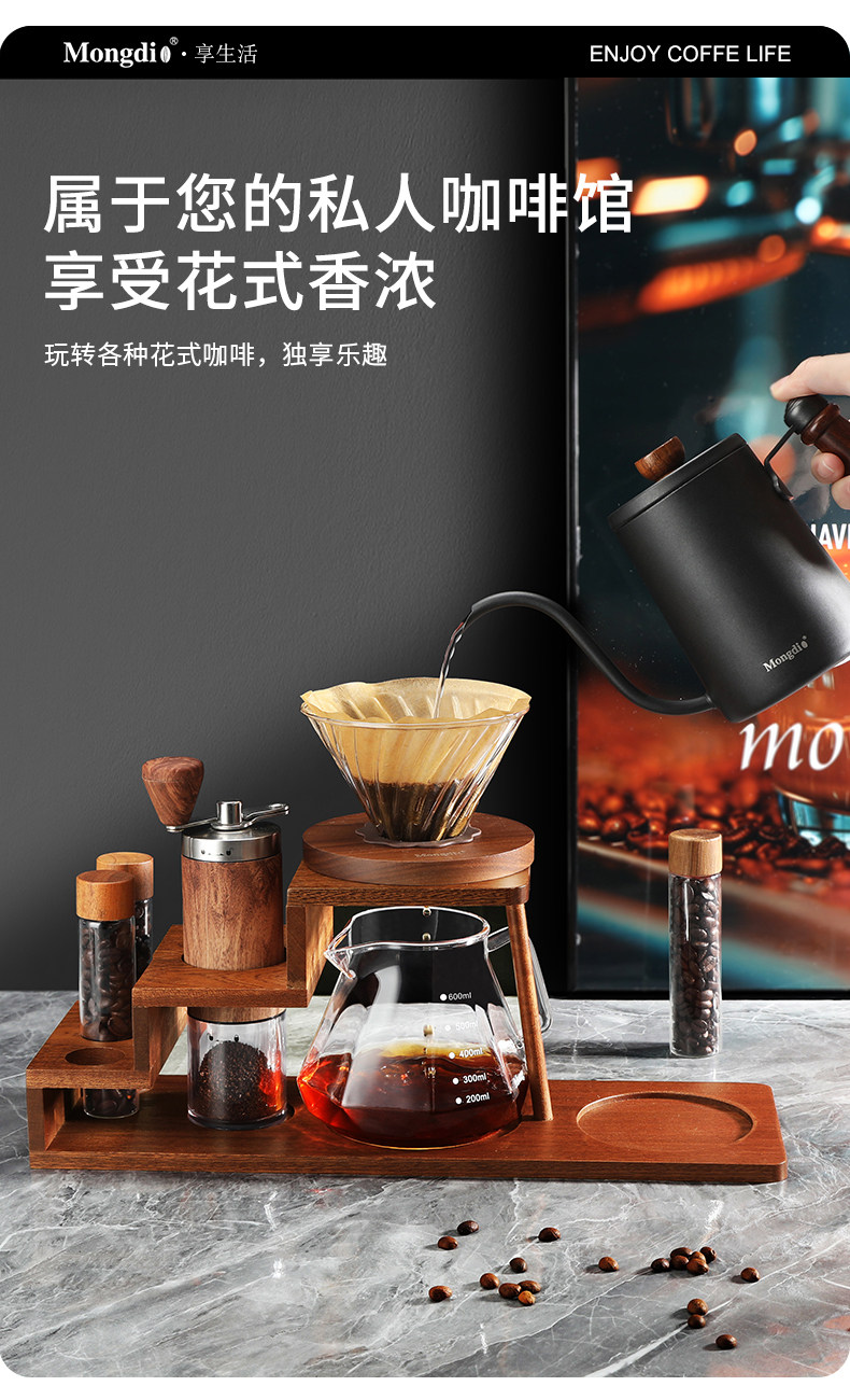 Mongdio Hand-Brewed Coffee Pot Set, Hand-Grind Coffee Machine, Hand-Cranked Storage Wooden Stand, Hand-Brewed Coffee Pot, Coffee Utensils