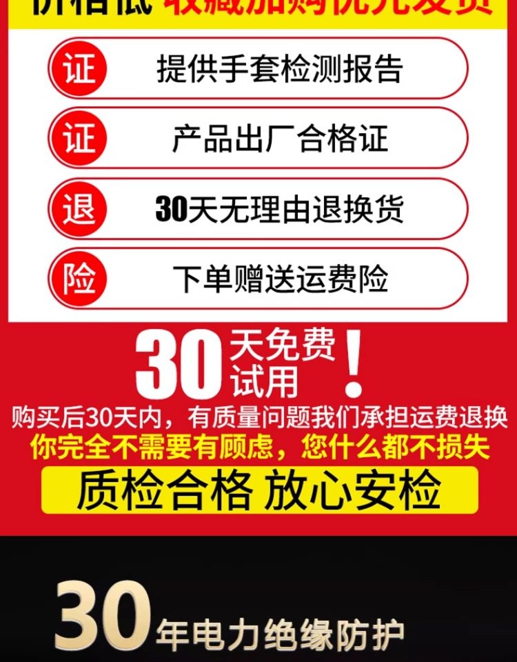 | Color Classification | Complete Documents, Free Invoicing, Latest Date, Fast Delivery,10Kv Palm-Sized Flexible Upgrade Rubber High-Voltage Insulated Gloves - Includes Sweat Absorbent Gloves - Inspection Passed,5Kv Flat-Top Rubber High-Voltage Insulated Gloves - Includes Sweat Absorbent Gloves - Inspection Passed,12Kv Palm-Sized Flexible Upgrade Rubber High-Voltage Insulated Gloves - Includes Sweat Absorbent Gloves - Inspection Passed,10Kv Palm-Type Flexible Upgrade + 10Kv Insulated Boots [Default Size 42, Please Specify Other Sizes in Order Notes],12Kv Palm-Type Flexible Upgrade + 20Kv Insulated Boots [Default Size 42, Please Specify Other Sizes in Order Notes],20Kv Palm-Sized, Flexible Upgrade High-Voltage Insulated Gloves. Includes Sweat Absorbent Gloves. Inspection Passed,5Kv Flat Plate Insulating Gloves + 6Kv Insulating Boots [Default Size 42, Please Note Others],12Kv Flat-Top Rubber High-Voltage Insulated Gloves, Includes Sweat Absorbent Gloves, Inspection Package Guaranteed,20Kv Palm-Type Flexible Upgrade + 20Kv Insulated Boots [Default Size 42, Please Specify Other Sizes in the Order Notes],35Kv Palm-Sized, Flexible Upgrade High-Voltage Insulated Gloves. Includes Sweat Absorbent Gloves. Inspection Passed,25Kv Palm-Sized, Flexible Upgrade High-Voltage Insulated Gloves. Includes Sweat Absorbent Gloves. Inspection Passed,35Kv Palm-Type Flexible Upgrade + 35Kv Insulated Boots [Default Size 42, Please Specify Other Sizes in Order Notes],10Kv Palm-Type Flexible Upgrade + 20Kv Insulated Boots [Default Size 42, Please Specify Other Sizes in the Order Notes],10Kv [10 Pairs] Upgraded Flexible & Reinforced High-Voltage Insulated Gloves - Includes Sweat Absorbent Gloves - Inspection Passed,10Kv [20 Pairs] Upgraded Flexible & Reinforced High-Voltage Insulated Gloves - Includes Sweat Absorbent Gloves - Inspection Passed,5Kv [20 Pairs] Rubber High-Voltage Insulating Gloves, Sweat-Absorbent Gloves Included, Inspection Package Included,12Kv [10 Pairs] Rubber High-Voltage Insulating Gloves, Sweat-Absorbent Gloves Included, Inspection Package Included,5Kv Flat Plate Insulating Gloves + 20Kv Insulating Boots [Default Size 42, Please Note Others],12Kv Flat Plate Insulating Gloves + 10Kv Insulating Boots [Default Size 42, Please Note Others],12Kv Flat Plate Insulating Gloves + 20Kv Insulating Boots [Default Size 42, Please Note Others],12Kv Palm-Type Flexible Upgrade + 10Kv Insulated Boots [Default Size 42, Please Specify Other Sizes in Order Notes],25Kv Palm-Type Flexible Upgrade + 25Kv Insulated Boots [Default Size 42, Please Specify Other Sizes in Order Notes],20Kv Palm-Type Flexible Upgrade + 25Kv Insulated Boots [Default Size 42, Please Specify Other Sizes in the Order Notes],25Kv Palm-Type Flexible Upgrade + 30Kv Insulated Boots [Default Size 42, Please Specify Other Sizes in Order Notes],35Kv Palm-Type Flexible Upgrade + 20Kv Insulated Boots [Default Size 42, Please Specify Other Sizes in Order Notes],35Kv Palm-Type Flexible Upgrade + 30Kv Insulated Boots [Default Size 42, Please Specify Other Sizes in Order Notes],5Kv [3 Pairs] Rubber High-Voltage Insulated Gloves - Includes Sweat Absorbent Gloves - Inspection Passed,10Kv [3 Pairs] Upgraded Flexible and Reinforced High Voltage Insulated Gloves - Includes Sweat Absorbent Gloves - Inspection Passed,12Kv [3 Pairs] Rubber High-Voltage Insulated Gloves - Includes Sweat Absorbent Gloves - Inspection Passed,20Kv [3 Pairs] Upgraded Flexible & Reinforced High-Voltage Insulated Gloves - Includes Sweat Absorbent Gloves - Inspection Passed,6Kv Insulated Boots - Default Size 42. Please Specify Other Sizes in the Order Notes,10Kv Insulated Boots - Default Size 42. Please Specify Other Sizes in the Order Notes,20Kv Insulated Boots - Default Size 42. Please Specify Other Sizes in the Order Notes,25Kv Insulated Boots - Default Size 42. Please Specify Other Sizes in the Order Notes,35Kv Insulated Boots - Default Size 42. Please Specify Other Sizes in the Order Notes,400V [Thick Flame Retardant Model] Double-Sided Insulation, Anti-Static, Independent Packaging,400V [Touch Screen Upgrade] Insulated and Anti-Shock, Individually Packaged,500V [Level 00 New Energy Dedicated] Anti-Electricity Insulator, Individually Packaged,[1000V High Voltage Waterproof Model] Double-Sided Insulation, Independent Packaging,[Waterproof and Flame Retardant] 1000V Double-Sided Insulation [1 Pair],Blue [High Voltage Resistance 10Kv] Insulated Safety Helmet,White [High Voltage Resistance 10Kv] Insulated Safety Helmet,Red [High Voltage Resistance 10Kv] Insulated Safety Helmet,Yellow [High Voltage Resistance 10Kv] Insulated Safety Helmet,1 Kv Insulating Clothing [with Test Report] [Guaranteed to Pass Testing],1Kv Insulated Clothing (with 12Kv Insulated Gloves + 20Kv Insulated Boots) [Includes Test Report] [Guaranteed to Pass Testing],2 Kv Insulating Clothing [with Test Report] [Test Package Passed],2Kv Insulated Clothing (with 12Kv Insulated Gloves + 20Kv Insulated Boots) [Includes Test Report] [Guaranteed to Pass Testing],3 Kv Insulating Clothing [with Test Report] [Test Package Included],3Kv Insulated Clothing (with 12Kv Insulated Gloves + 20Kv Insulated Boots) [Includes Test Report] [Guaranteed to Pass Testing],5Kv Insulated Clothing [with Test Report] [Guaranteed to Pass Testing],5Kv Insulated Clothing (with 12Kv Insulated Gloves + 20Kv Insulated Boots) [Includes Test Report] [Guaranteed to Pass Testing],7Kv Insulated Clothing [with Test Report] [Guaranteed to Pass Testing],7Kv Insulated Clothing (with 12Kv Insulated Gloves + 20Kv Insulated Boots) [Includes Test Report] [Guaranteed to Pass Testing],10Kv Insulated Clothing [with Test Report] [Guaranteed to Pass Testing],10Kv Insulated Clothing Set (Includes 12Kv Insulated Gloves + 20Kv Insulated Boots) [with Test Report] [Guaranteed to Pass Testing],12Kv Insulated Clothing [with Test Report] [Guaranteed to Pass Testing],12Kv Insulated Clothing Set (Includes 12Kv Insulated Gloves + 20Kv Insulated Boots) [with Test Report] [Passes All T