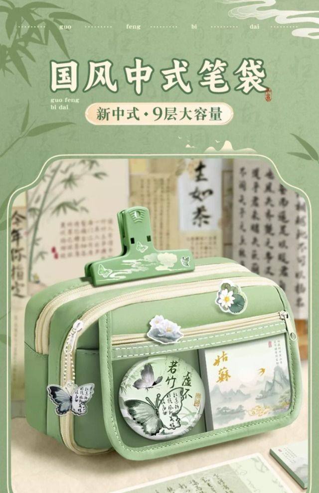 Flip-Top Antique-Style Large-Capacity Pencil Case, Simple and Multi-Functional Student Pencil Case, Versatile and Unisex, Chinese-Style Stationery Box