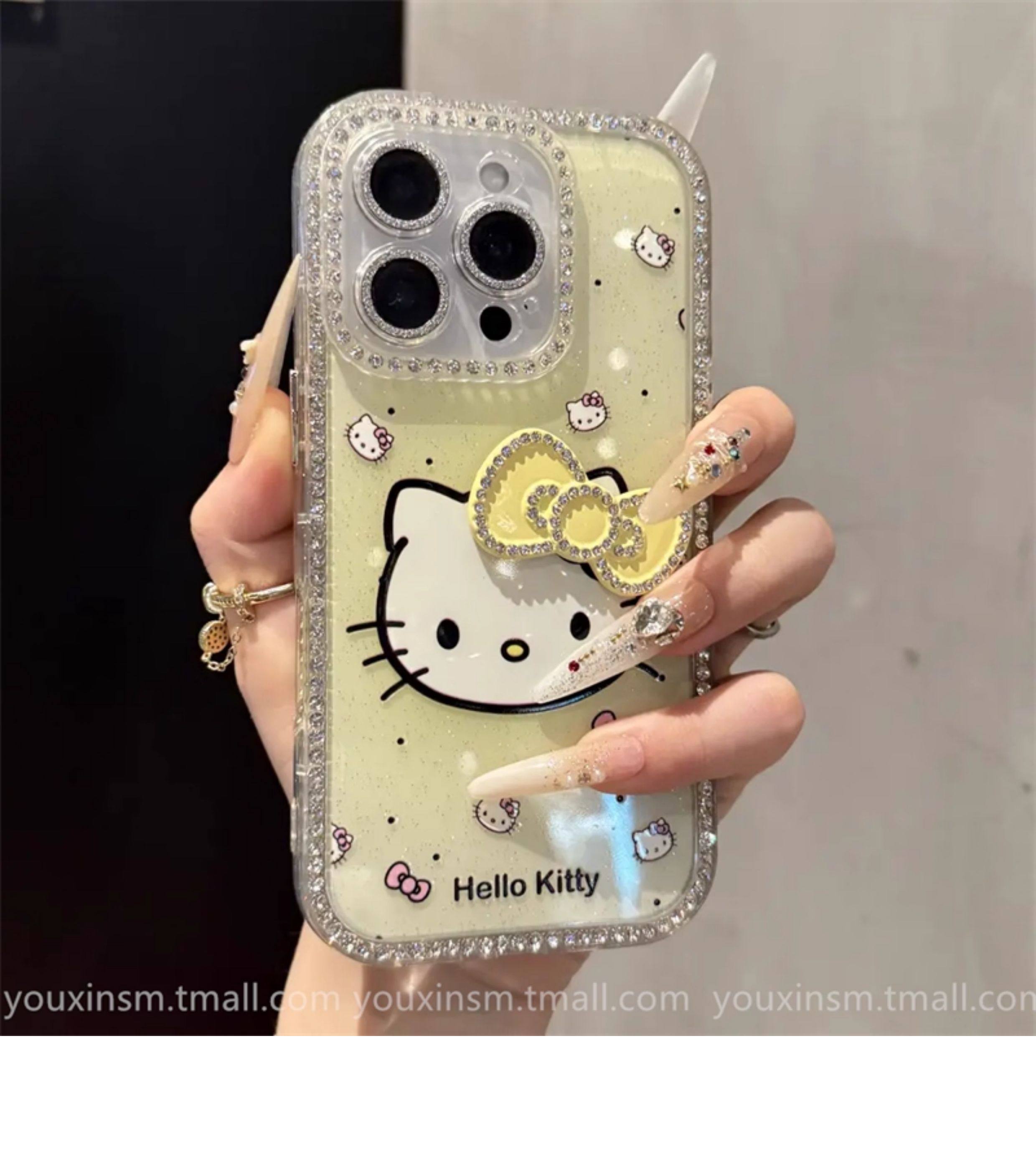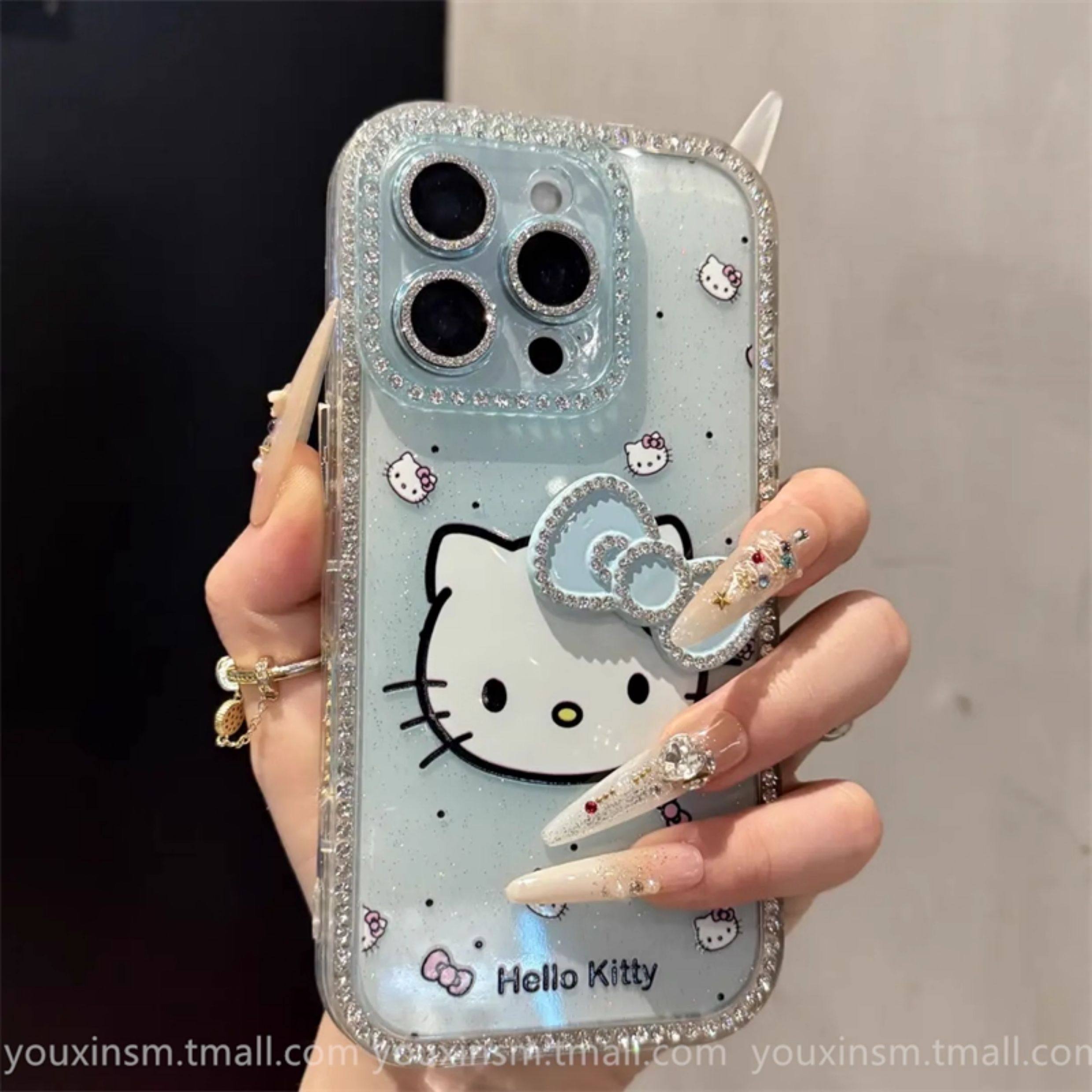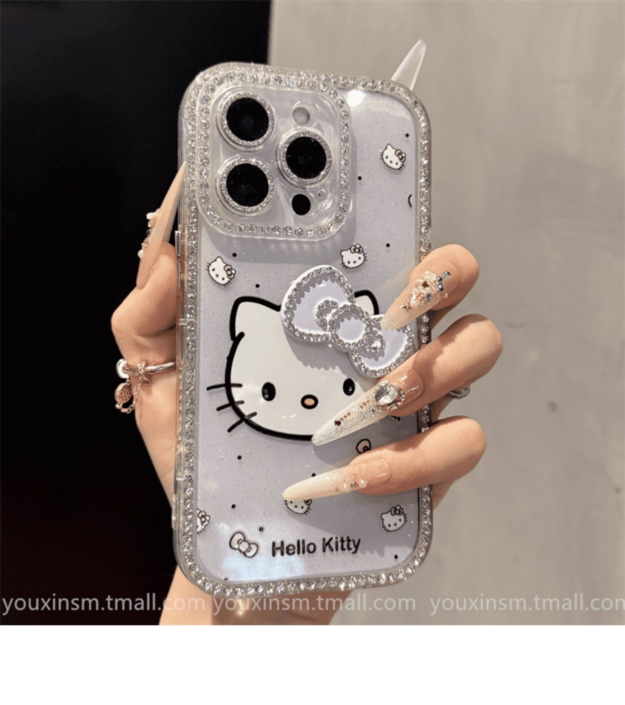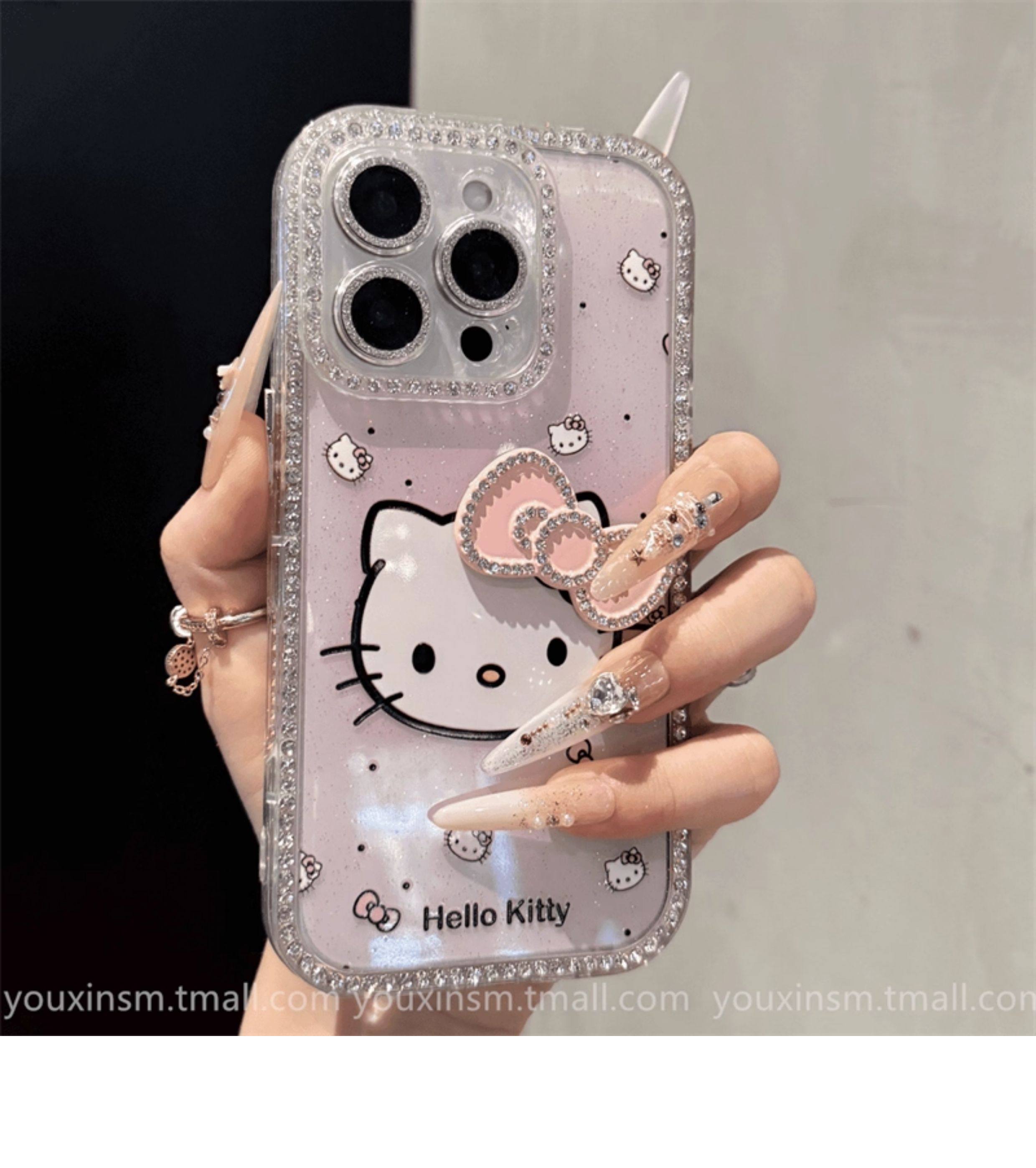 ins High-Looking Gradient Kt Cat Diamond-Encrusted Suitable for iPhone 16 Promax Apple 15 Mobile Phone Case 14 New Style 16 Super Good-Looking 12 Classy 13 Female 2025 Internet Celebrity Hot Model Pro Anti-Fall Promax