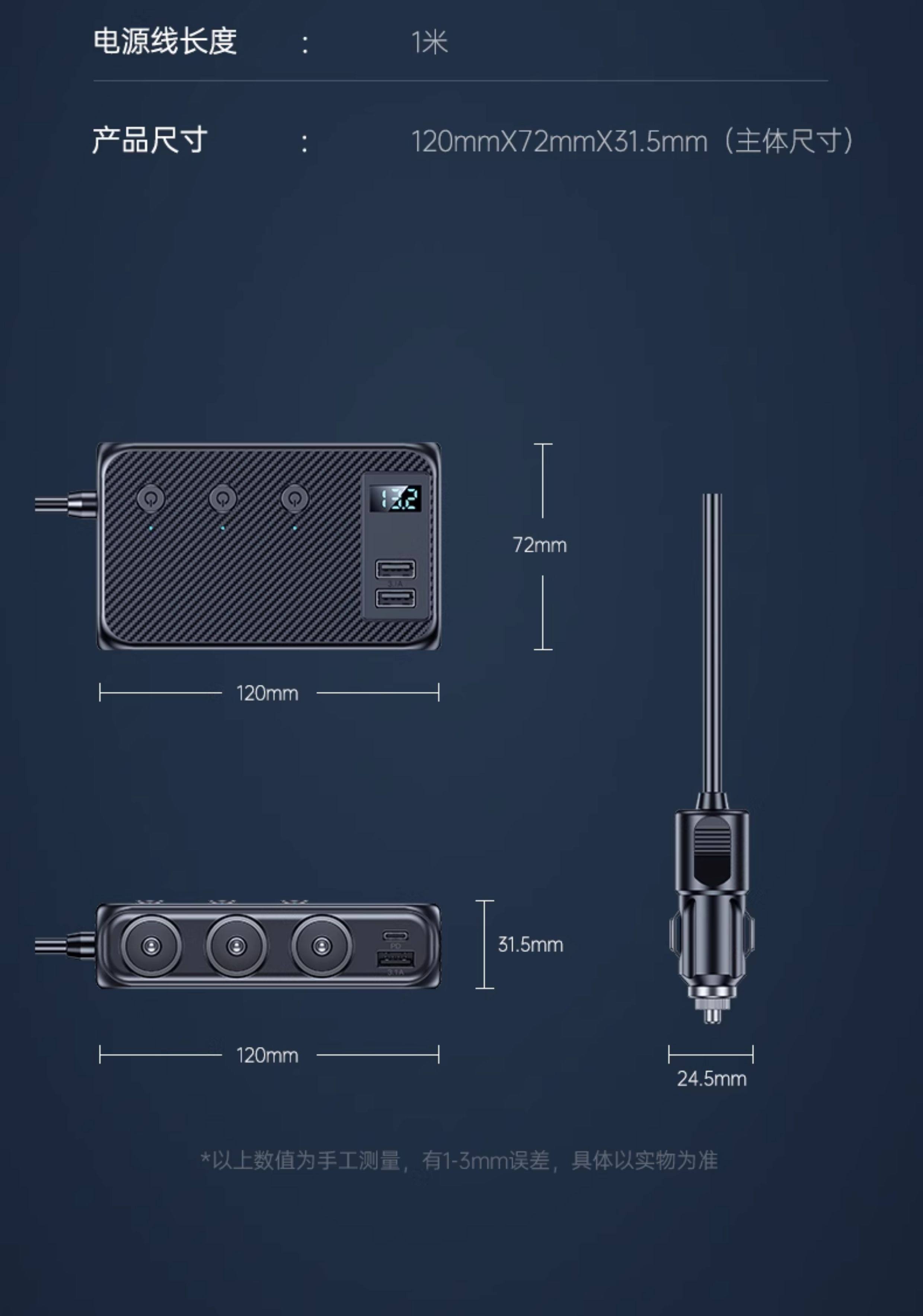 | Color Classification | Luxury Model 127W (Max) * 1m Lines,Upgraded Model 128W (Max)*0.7m Lines,Flagship Model 171W (Max) * 1m Lines,Cigarette Lighter Model 200W (Max) Supports Seat Cushion and Refrigerator,High Configuration 226W (Max) * 1m Lines,Top-Of-The-Line 228W (Max) * 1m Cable,Standard Model[Three-Port Expansion] |