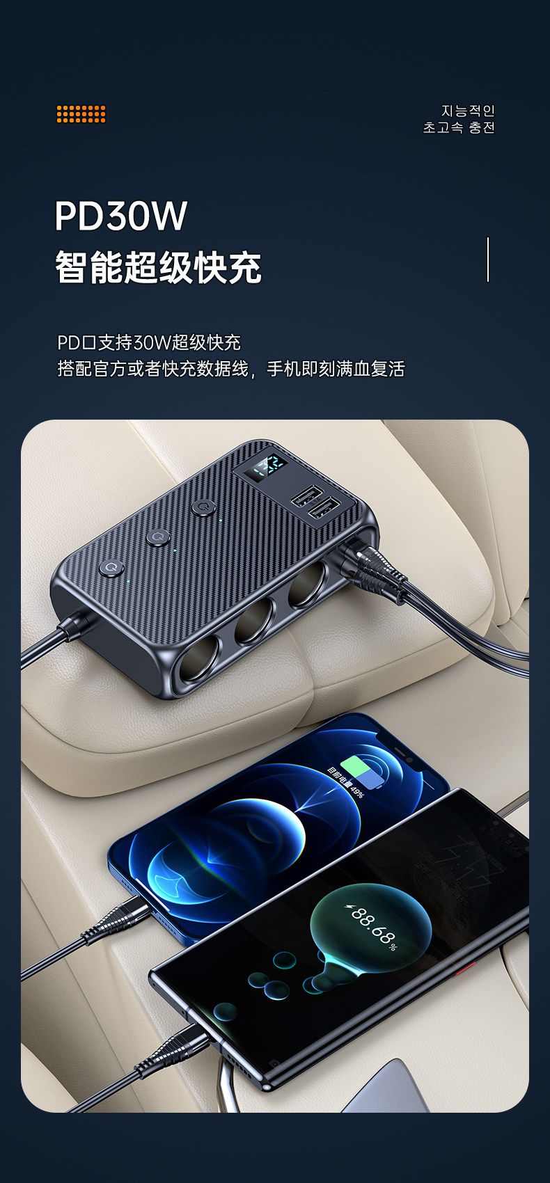 Car Cigarette Lighter Car Charger Adapter Pd Super Fast Charging Multifunctional Car Socket High-Power Car Charger
