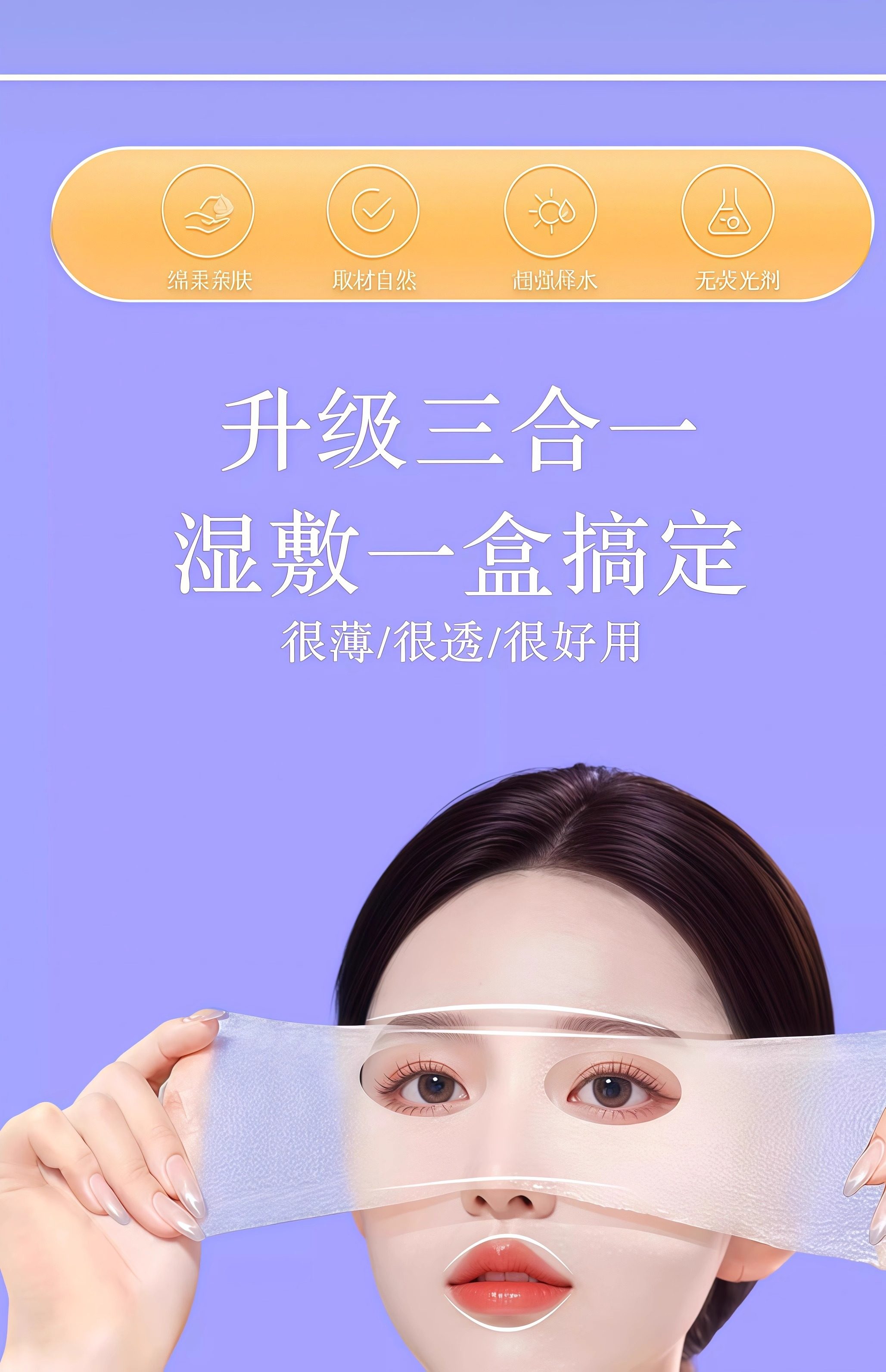 Open-Ended Wet Compress Cotton, Stretchable for Eye Application, Double-Hole for Face Application, Three-In-One Mouth and Nose Open-Hole Mask Paper, Hydrating Makeup Cotton, Thin