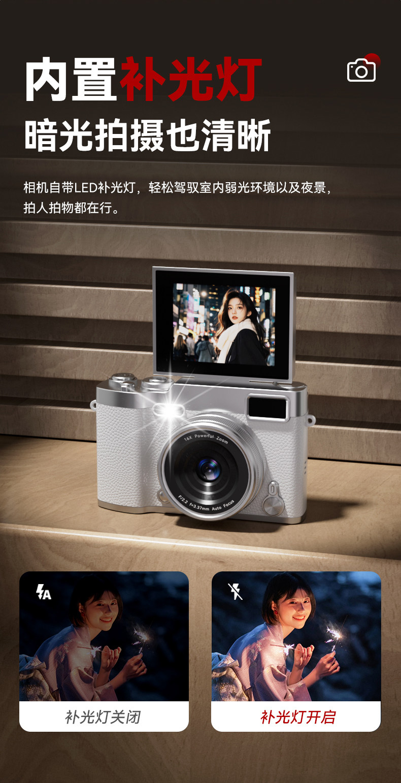 5000W High-Definition Pixel Ccd Digital Camera with Dual Front and Rear Cameras for Selfies, Suitable for Campus Students, Retro Compact Camera