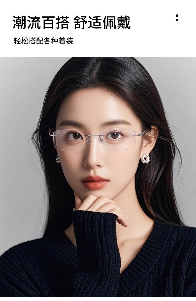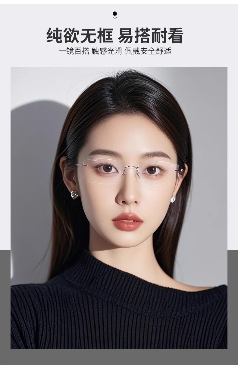 Ultra-Light Pure Titanium Rimless Myopia Glasses for Women, Customizable Prescription, Blue Light Blocking, Cool and Frameless Design with a High-End Feel