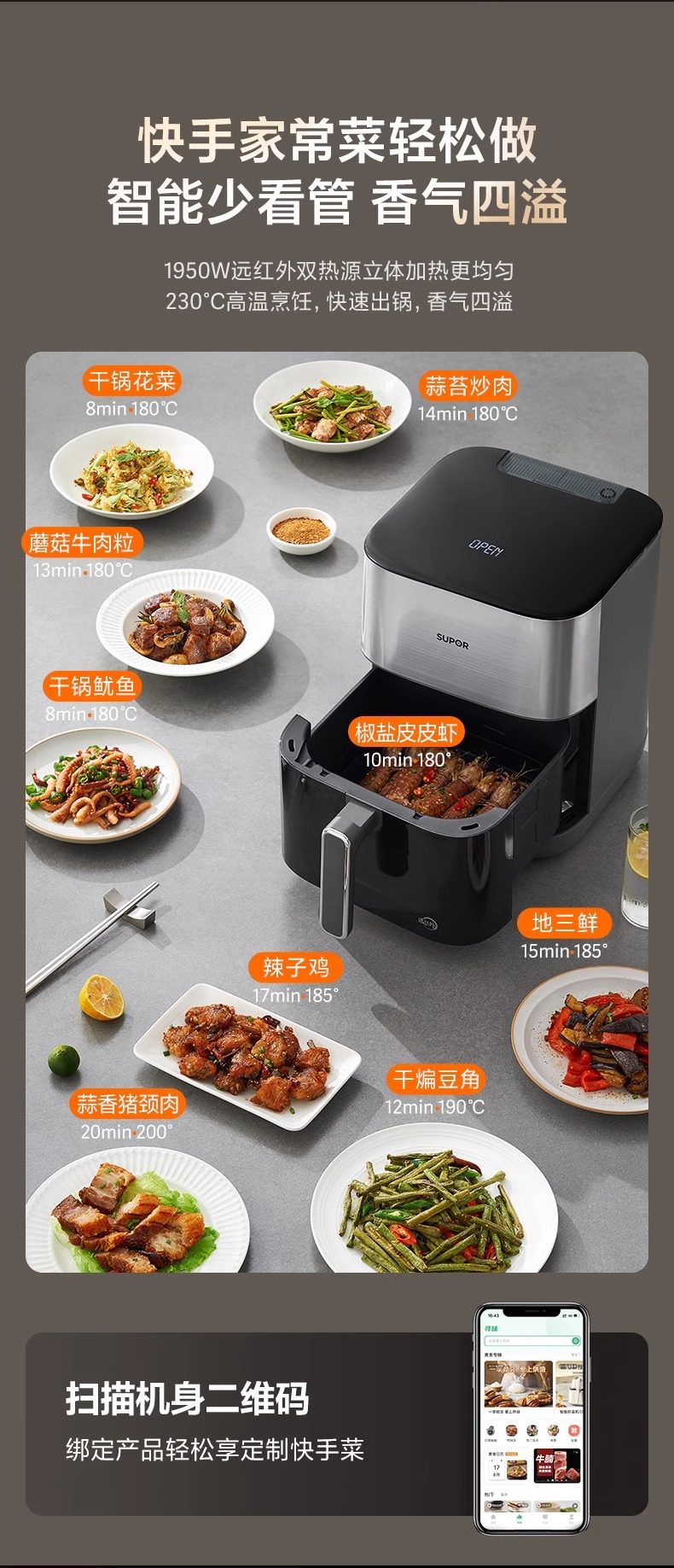 Supor Air Fryer for Home Use, New Model, Large Capacity, Far-Infrared, Visual, No-Turning Electric Oven, Multifunctional New Product