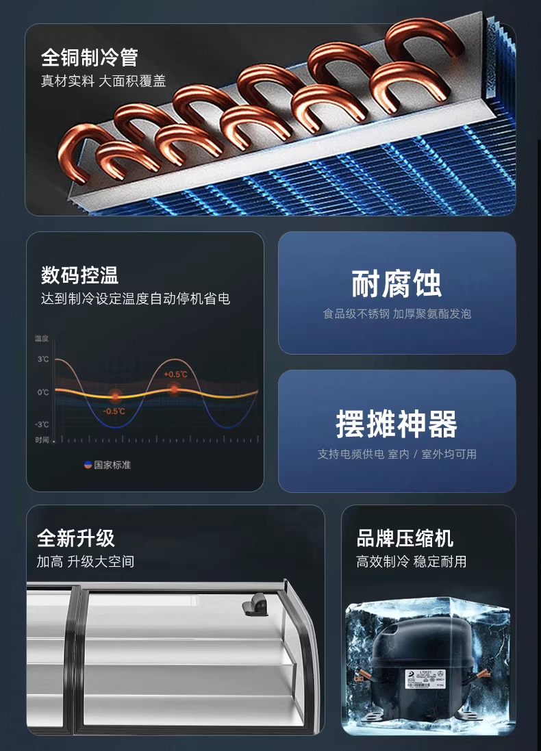 Desktop Three-Wheel Cart Mobile Stall Freezer Refrigerated Three-Layer Display Cabinet Night Market Commercial Fresh-Keeping Fried Skewers Fruit