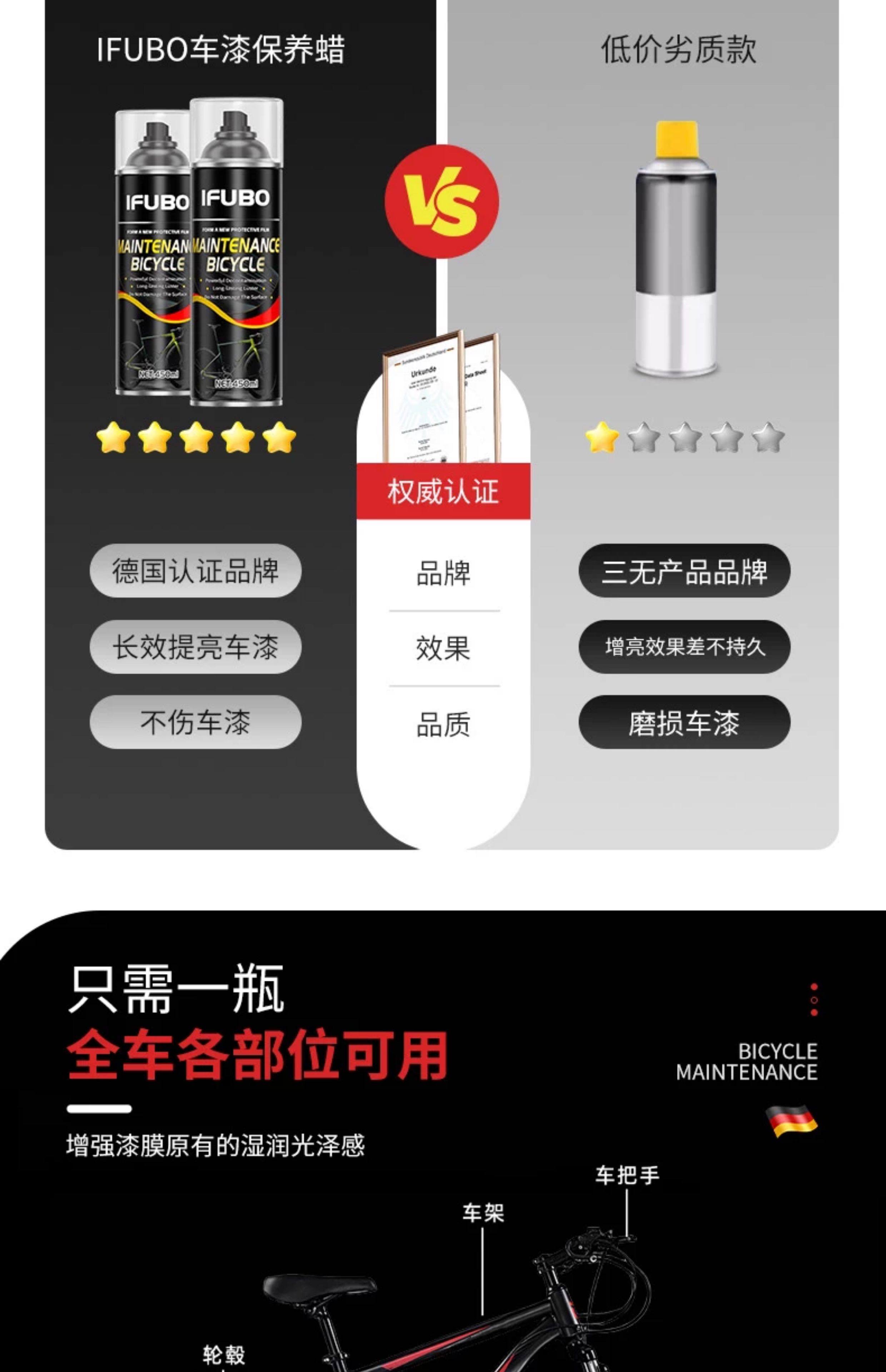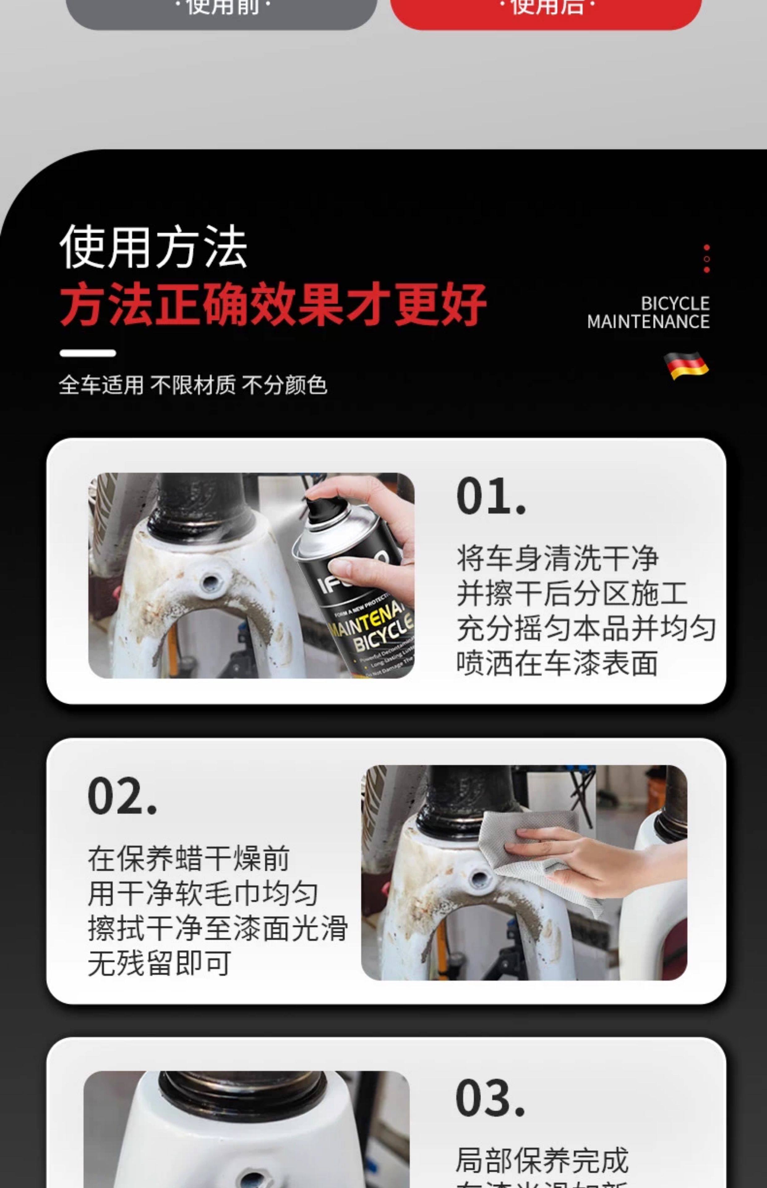 Bicycle Polish Wax for Stain Removal, Dust Prevention, Polishing, Cleaning, Paint Maintenance, Spray Wax for Road Bikes and Bicycles