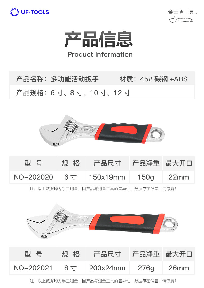| Color Classification | [Professional Model·Super Hard]6inch Adjustable Wrench·Non-Slip Rubber Handle,[Professional Model·Super Hard]8inch Adjustable Wrench·Non-Slip Rubber Handle,[Professional Model·Super Hard]10inch Adjustable Wrench·Non-Slip Rubber Handle,[Professional Model·Super Hard]12inch Adjustable Wrench·Non-Slip Rubber Handle |