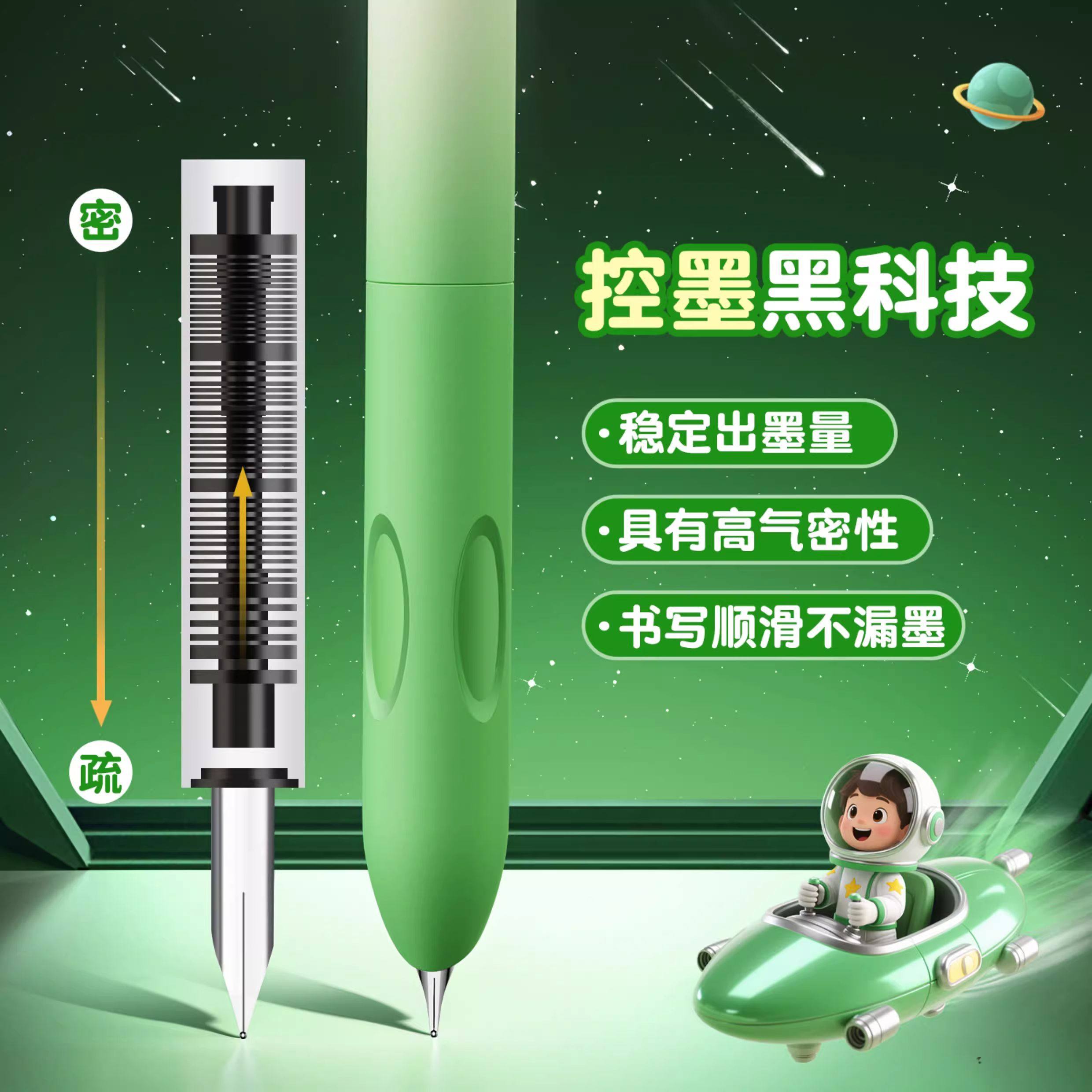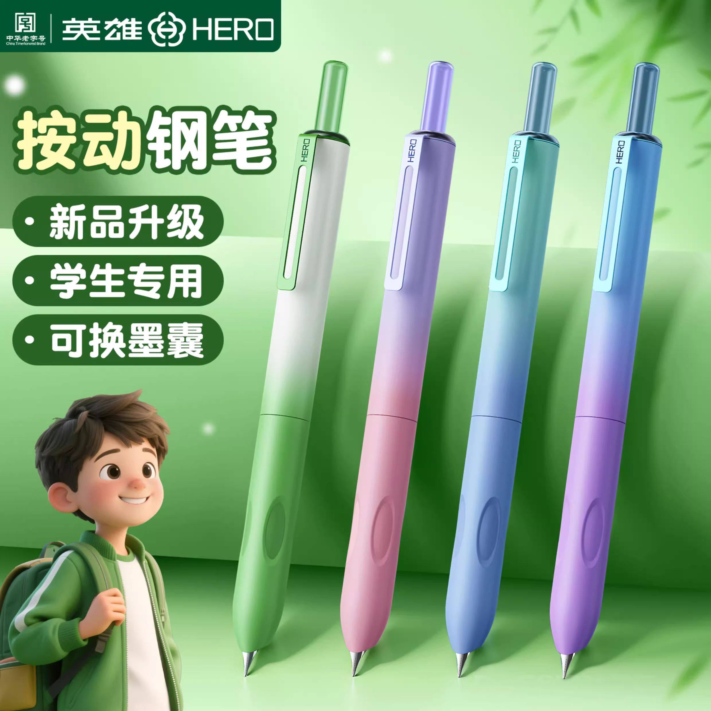 Hero Brand Retractable Fountain Pen for Third-Grade Elementary School Students, Special for Practicing Calligraphy, with Replaceable Ink Cartridges, Space-Themed, for Children, Beginners, Boys and Girls, High Aesthetic Appeal, Dark Nib, Fourth-Grade Fountain Pen, Official Genuine Product