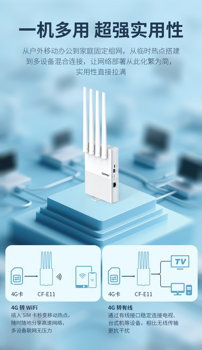 Comfast 4g Sim Card Router Wifi6 Wireless Router Home Portable Wifi Can Insert Sim Card Full Network Wireless Network Whole House Wifi Coverage Cf-E11