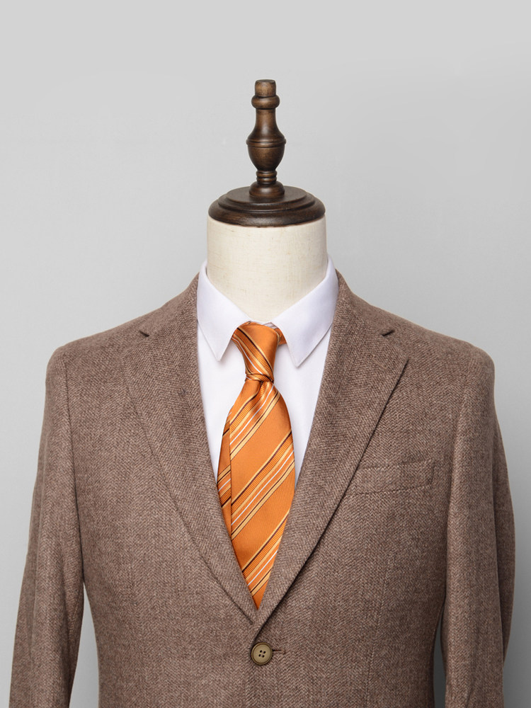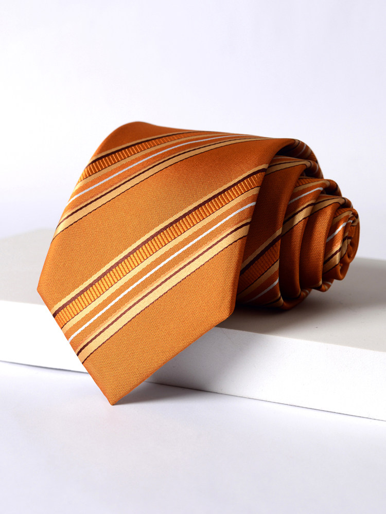Orange Striped Tie for Men, Formal Business Shirt Accessory, Orange-Brown, Artistic, Casual, British Style, 8cm Hand-Tied