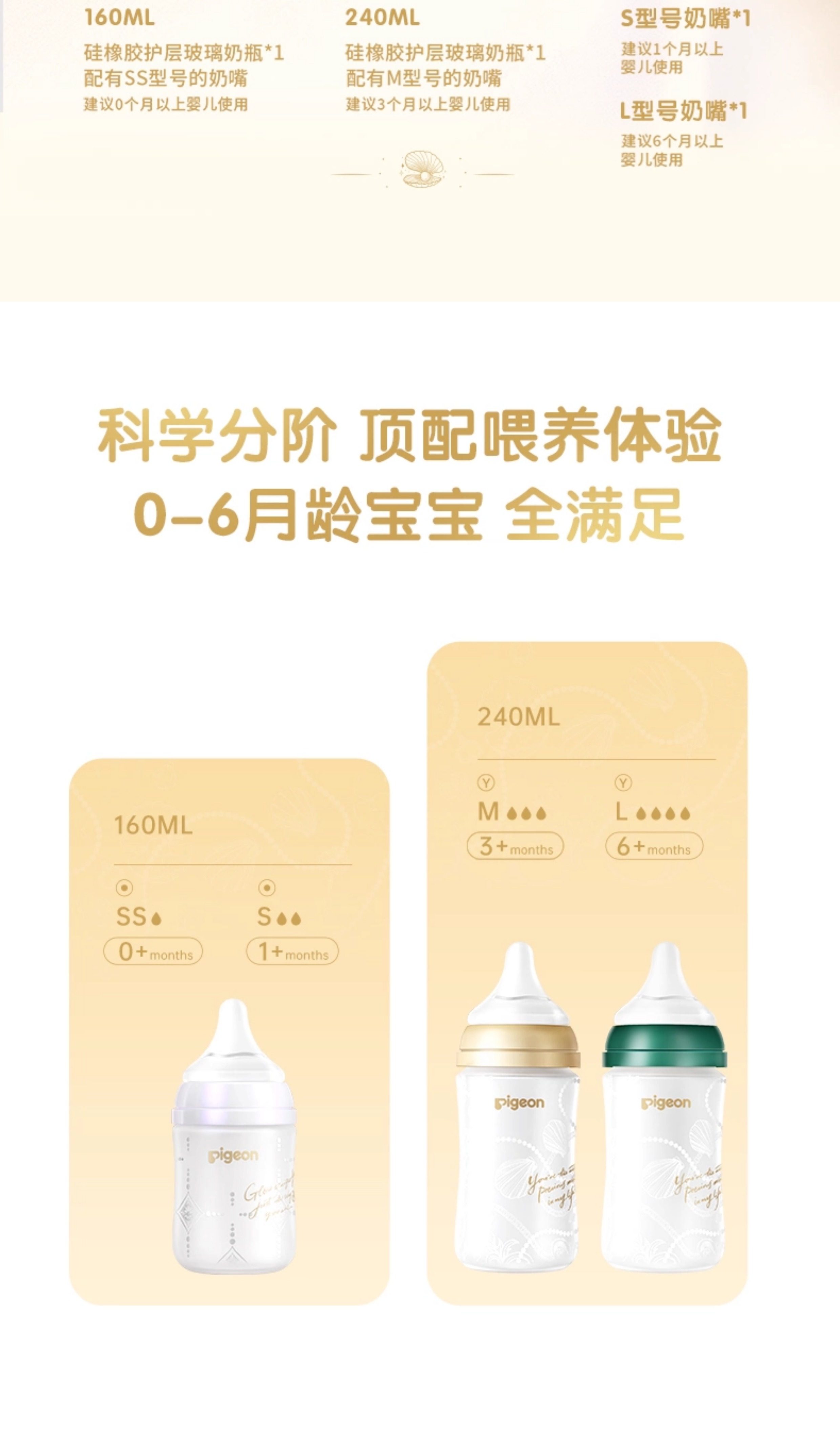 Pigeon Shining Newborn Pearl Baby Bottle Gift Set 0-6 Months Baby Silicone Rubber Protective Layer Glass Baby Bottle Set