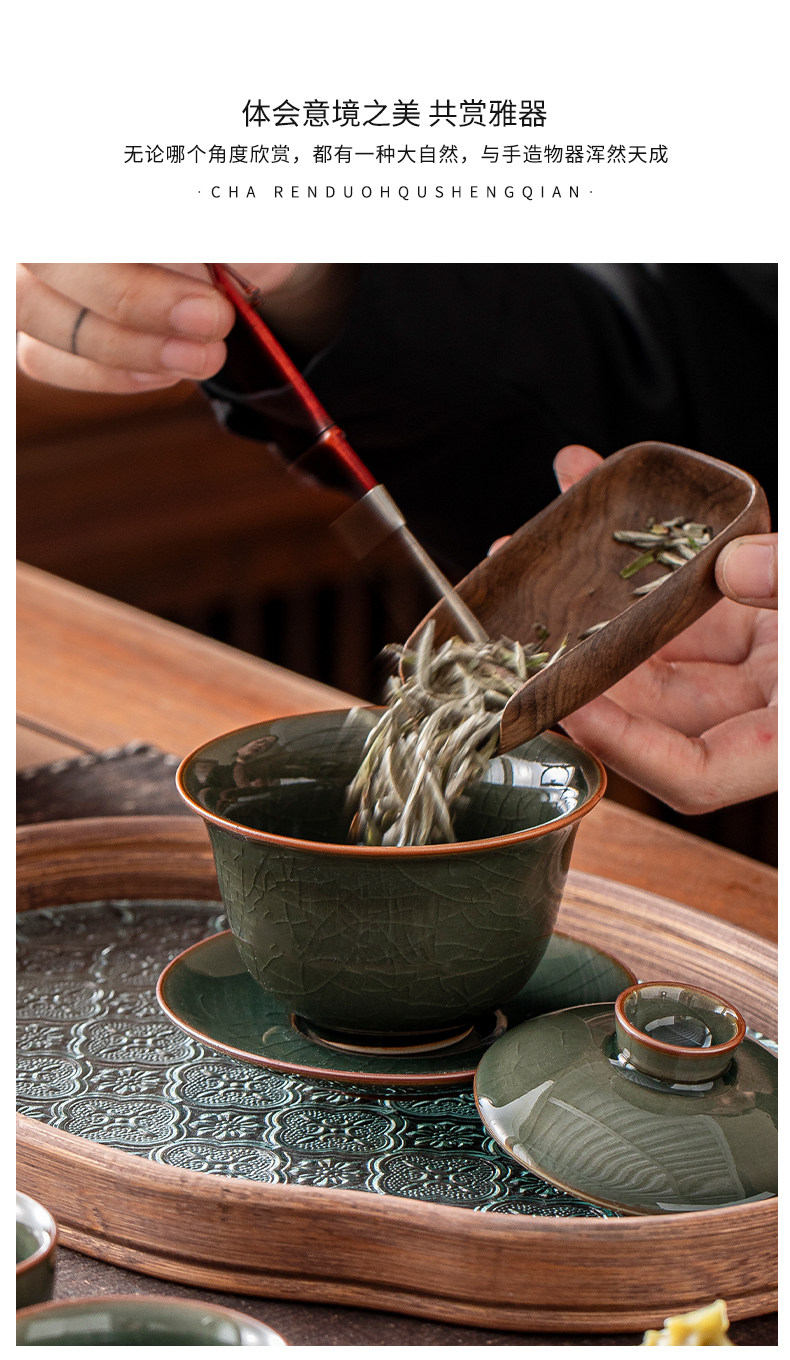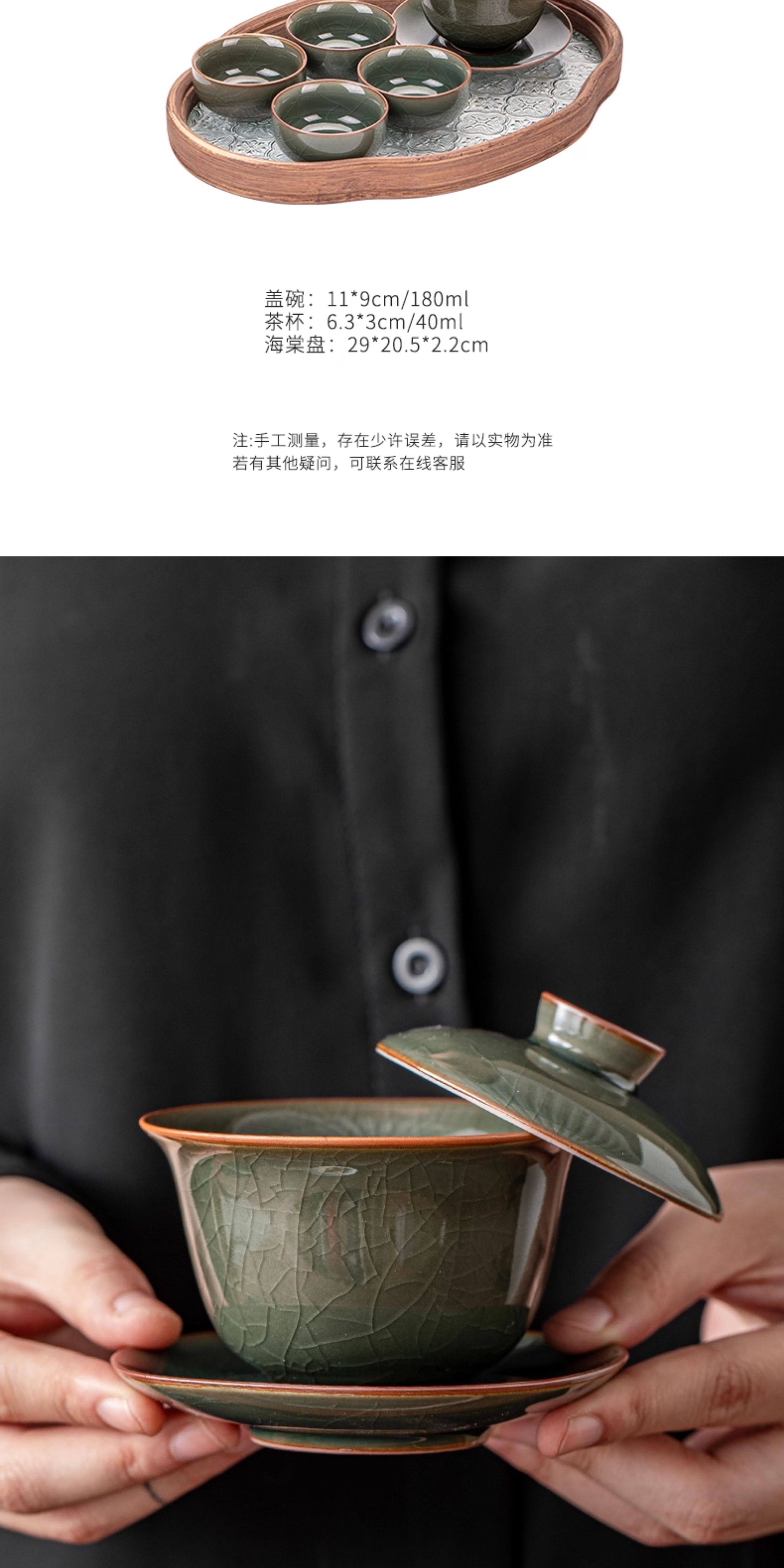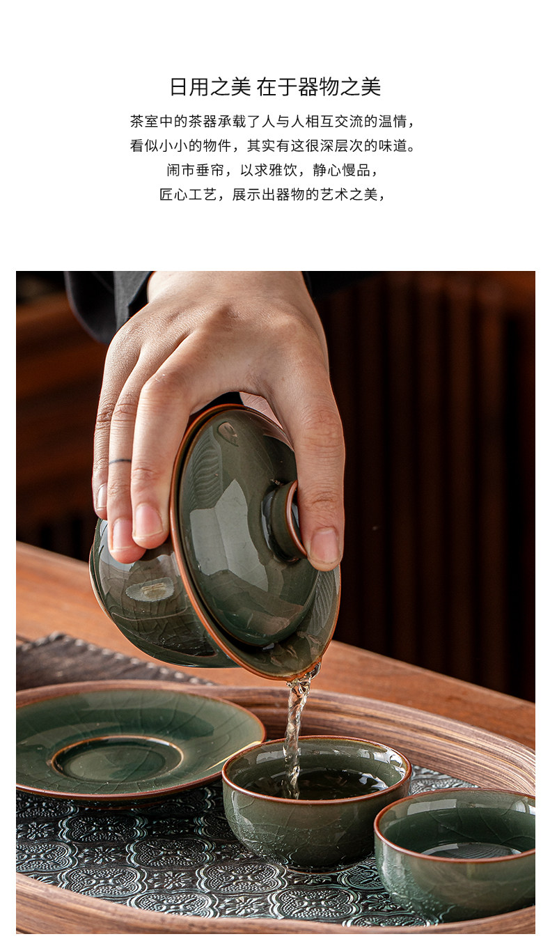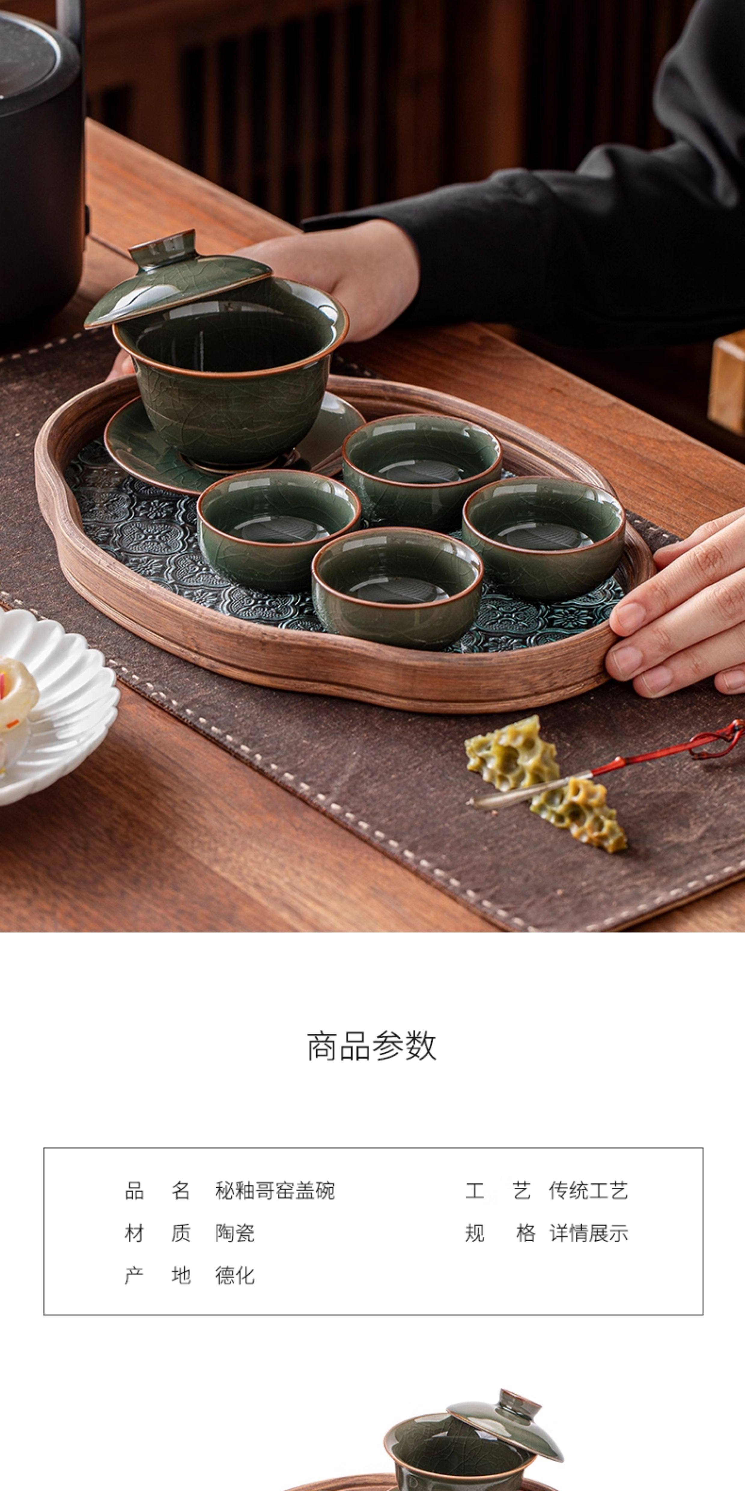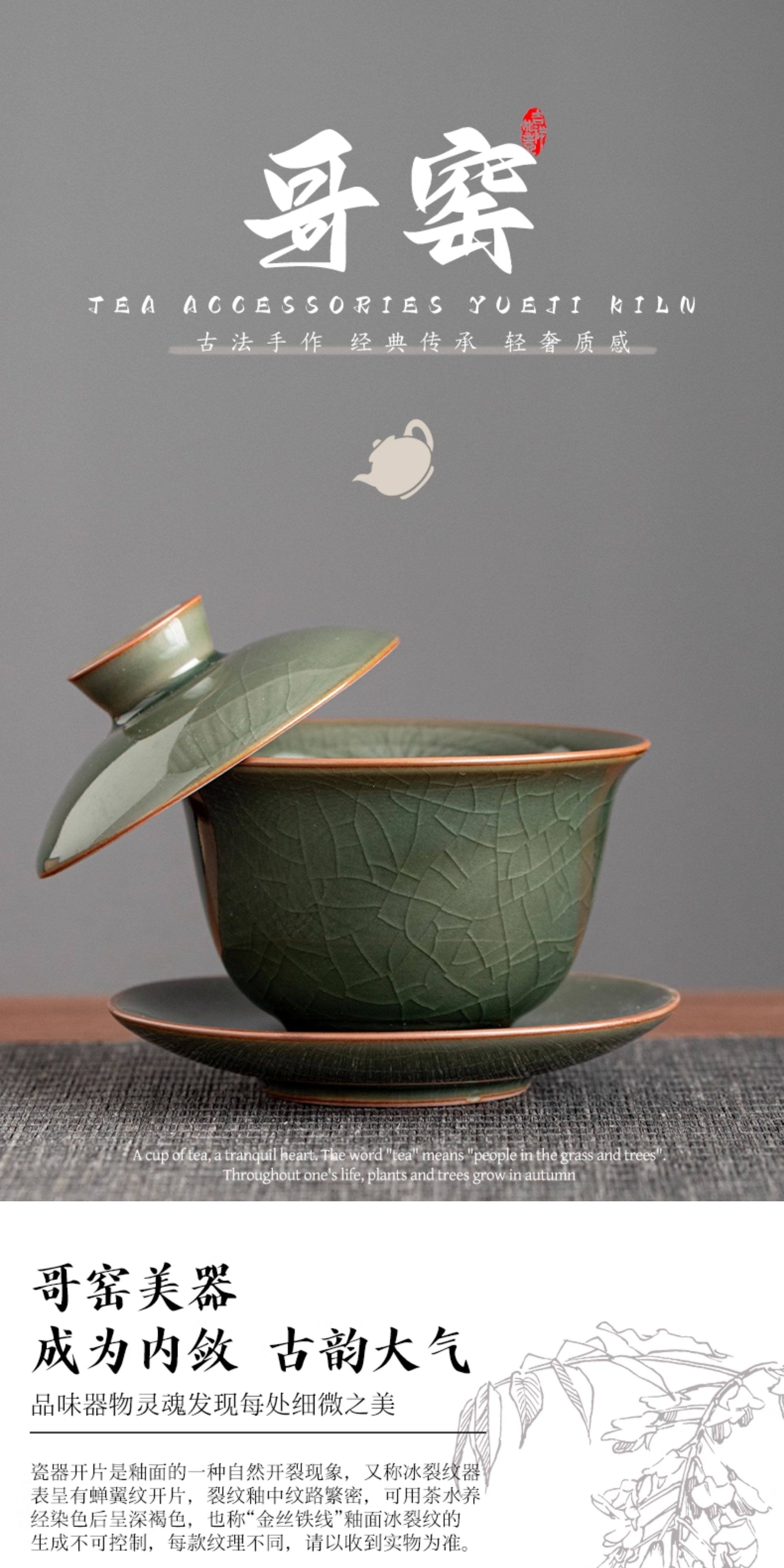 Ge Kiln Ice Crack Three-Piece Covered Bowl, High-End Ice Crack Large Household Tea Bowl with Lid, Non-Hot Tea Cup, Kung Fu Tea Set