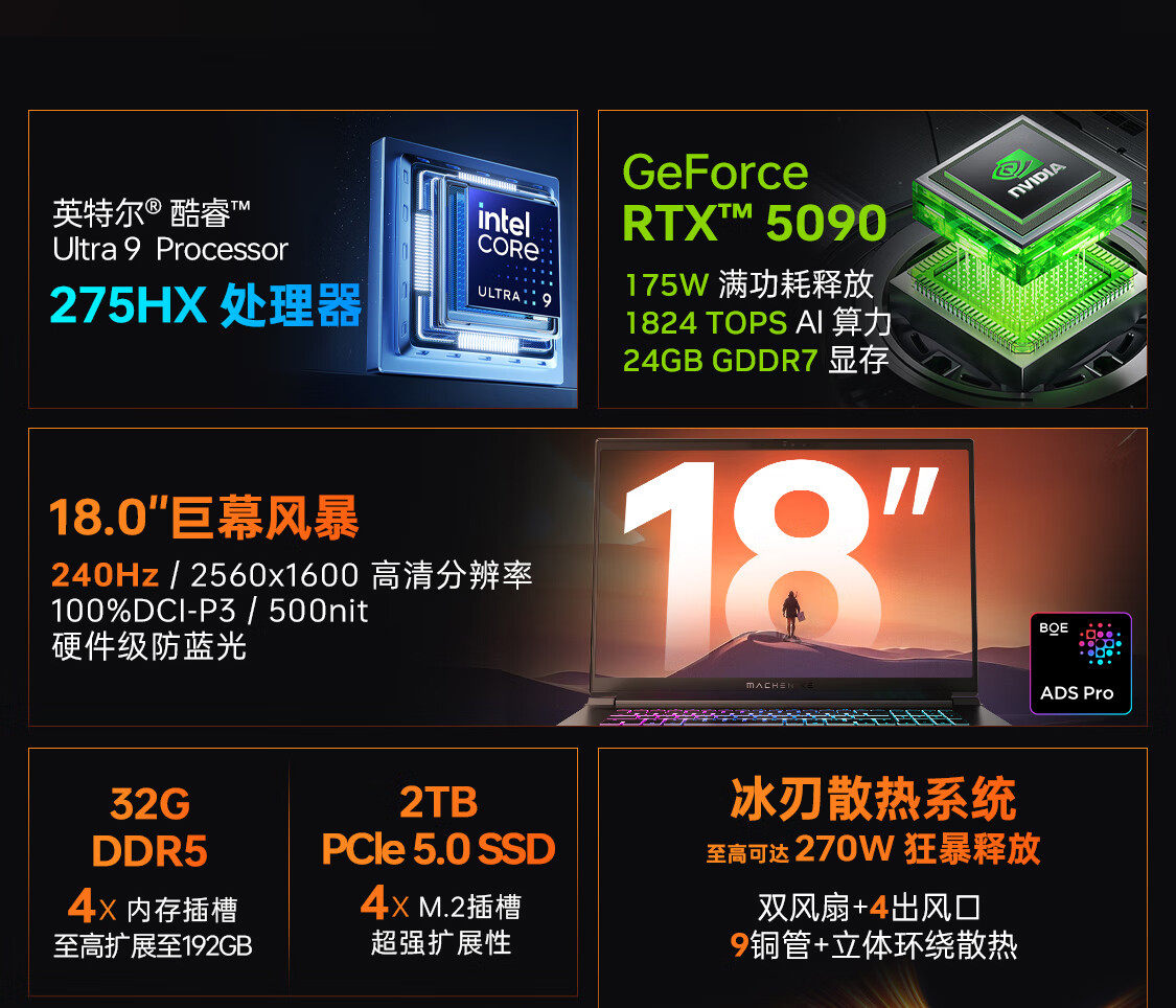 | Color Classification | Shuguang 18Pro: Ultra9-275Hx/5090/2.5K240Hz/ 18inch,Shuguang 18Pro: Ultra9-275Hx/5080/2.5K240Hz/ 18inch |