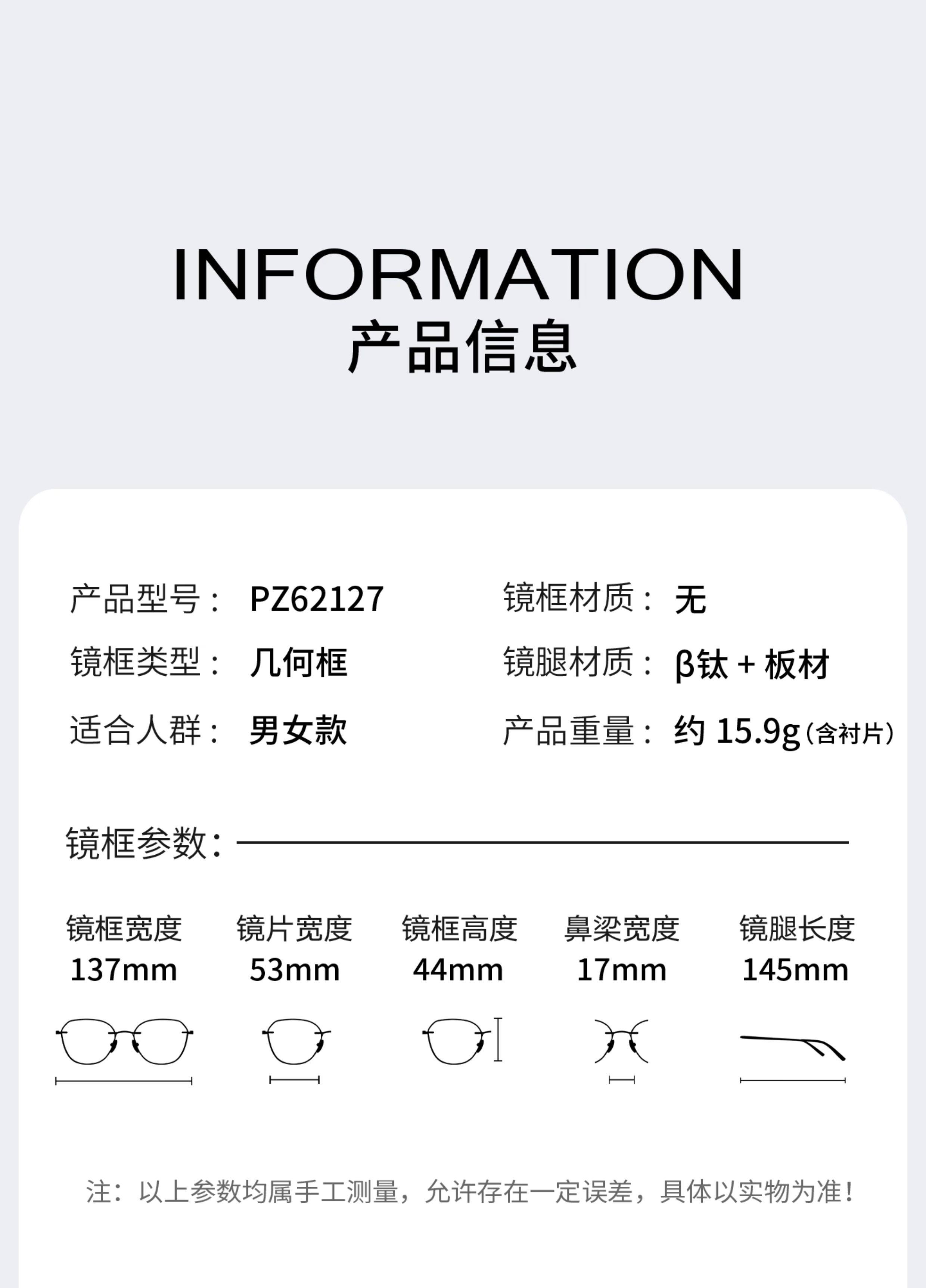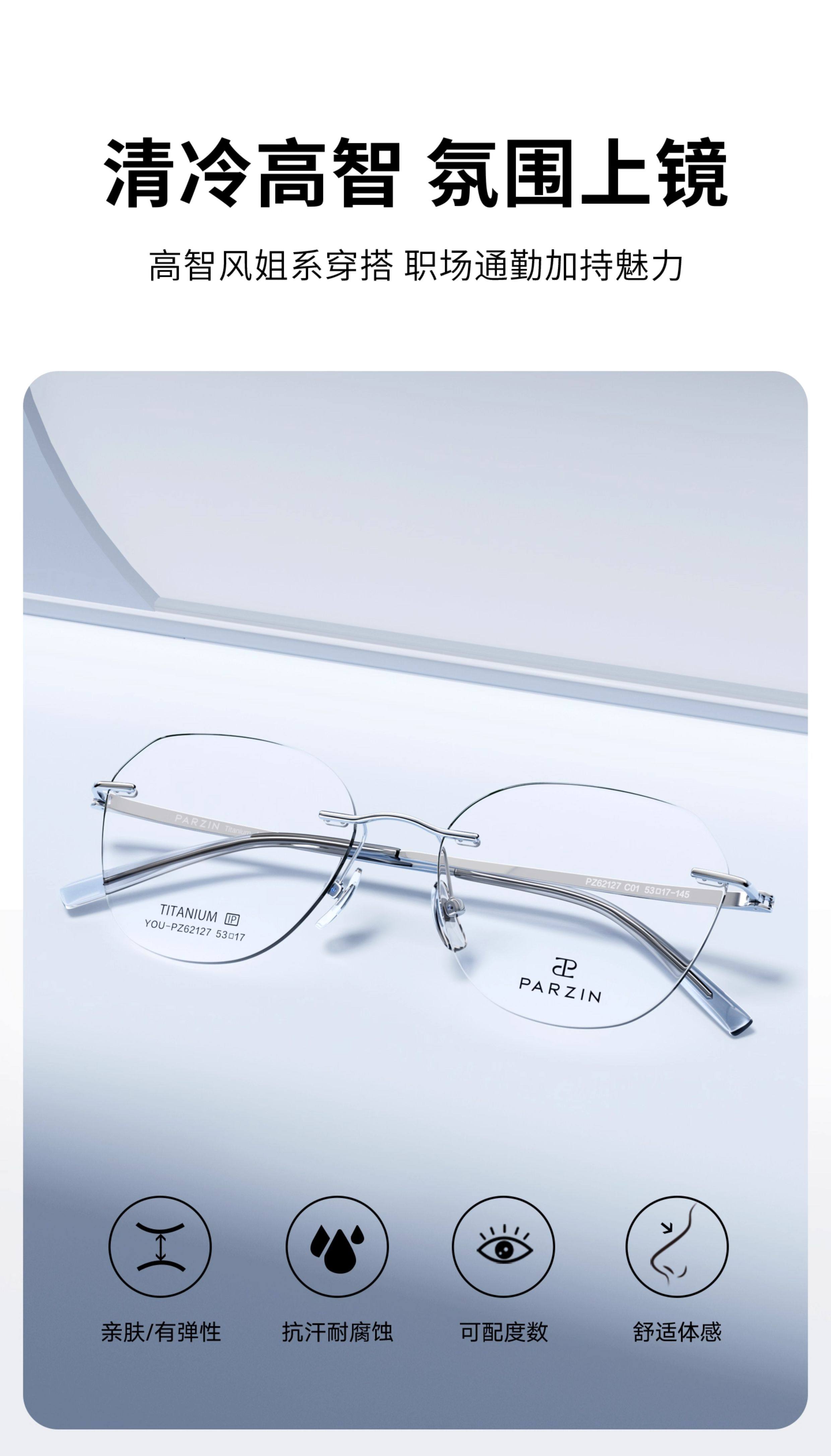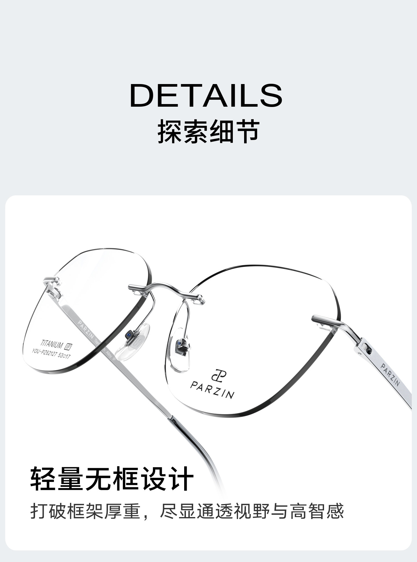Parson Rimless Glasses for Men and Women, Lightweight, Comfortable, High-Sensitivity, Can Be Fitted with Prescription Lenses, Blue Light Blocking, Myopia Frame Pz62127