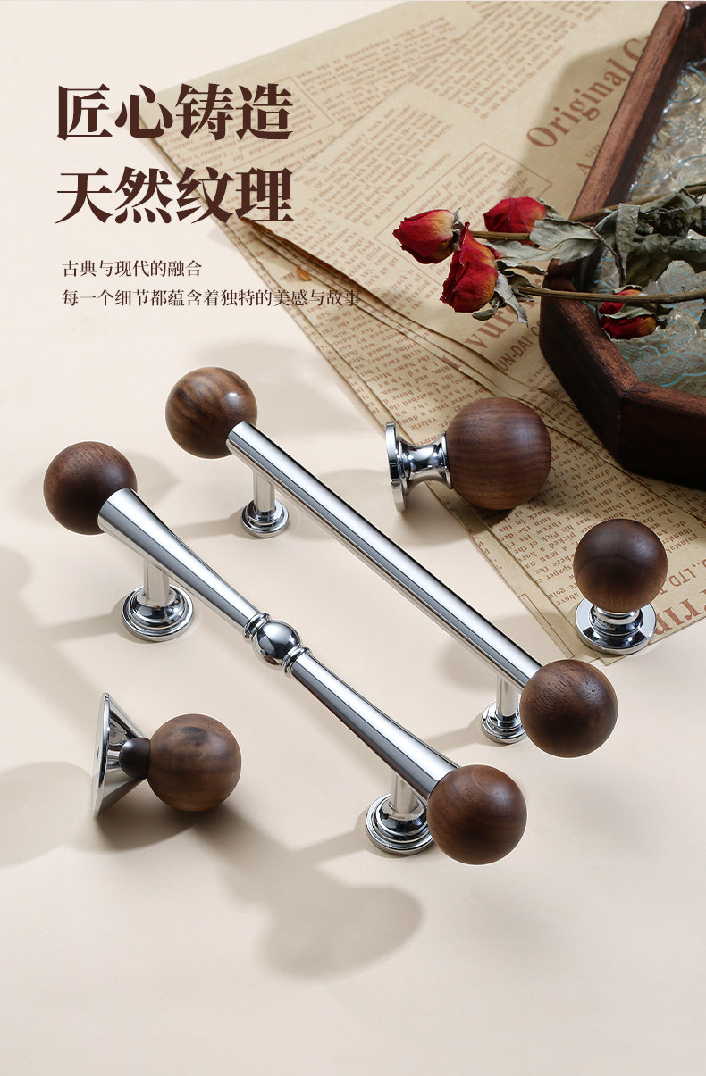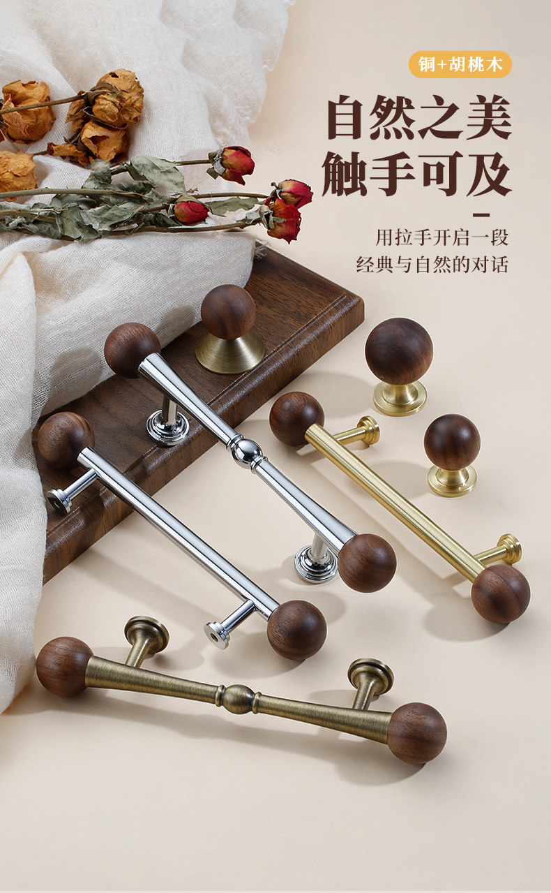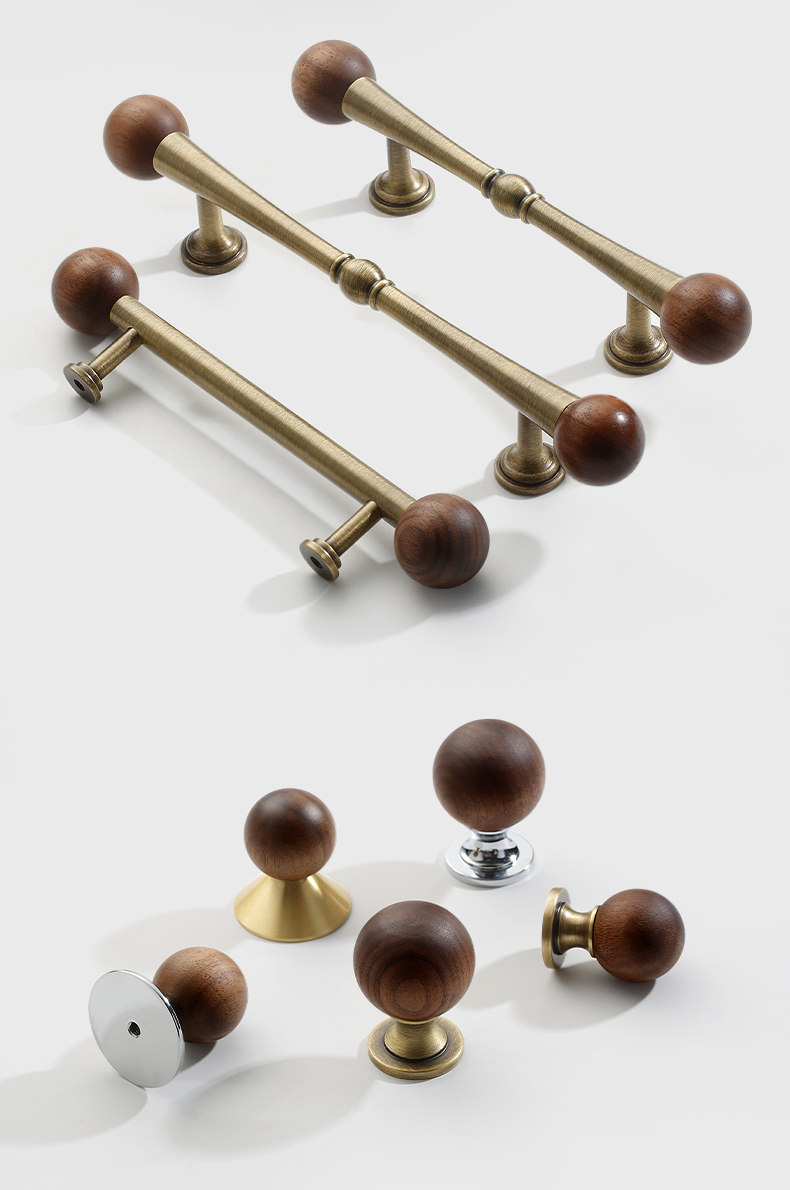 French-Style Vintage Cabinet Door Drawer Brass Handle Walnut Round Ball Antique Silver Cabinet Wardrobe Handle
